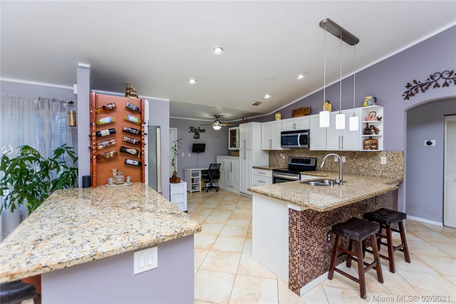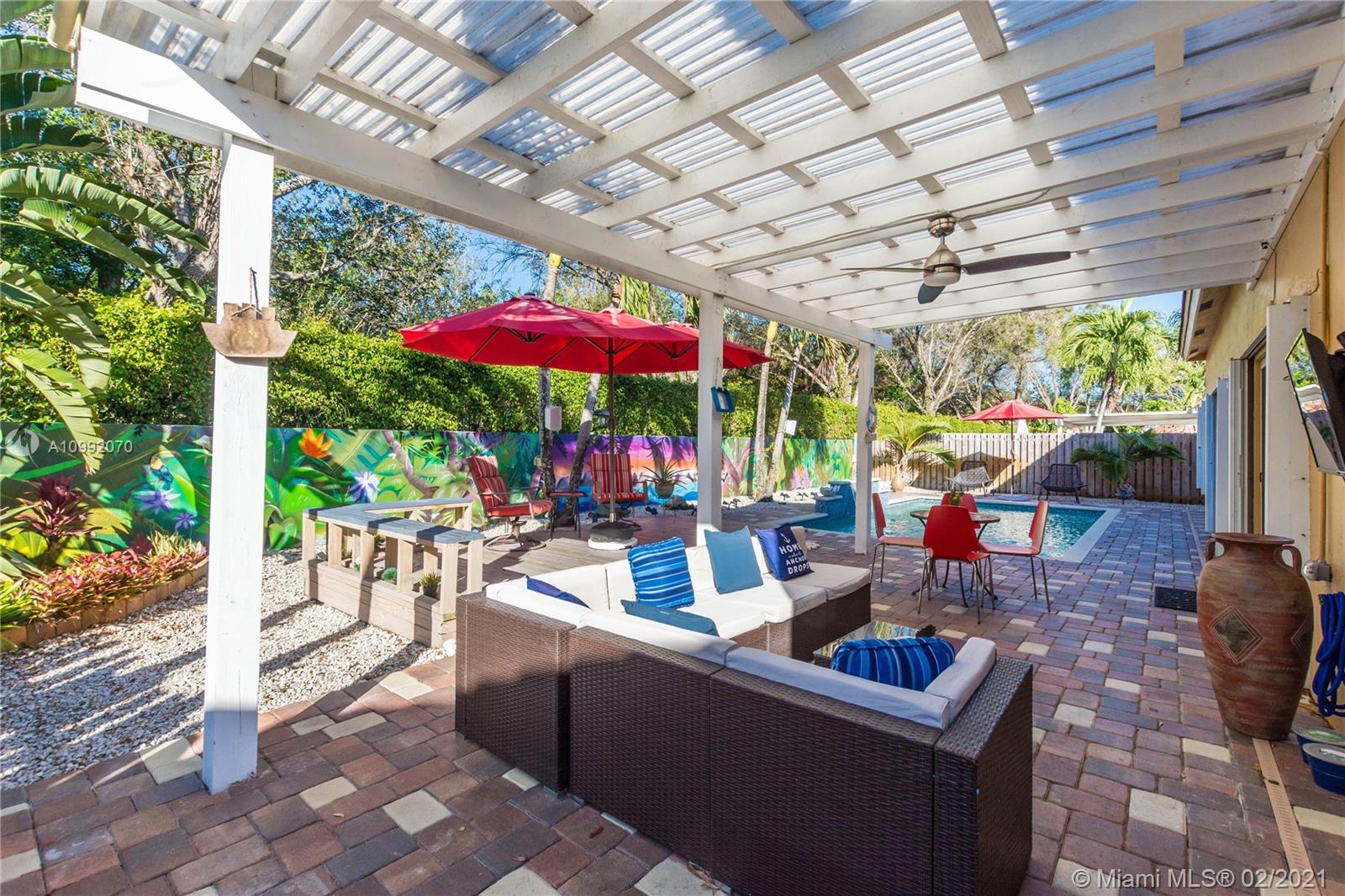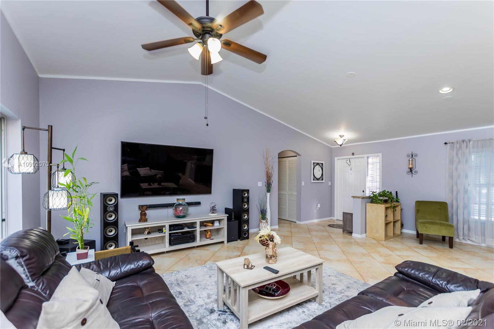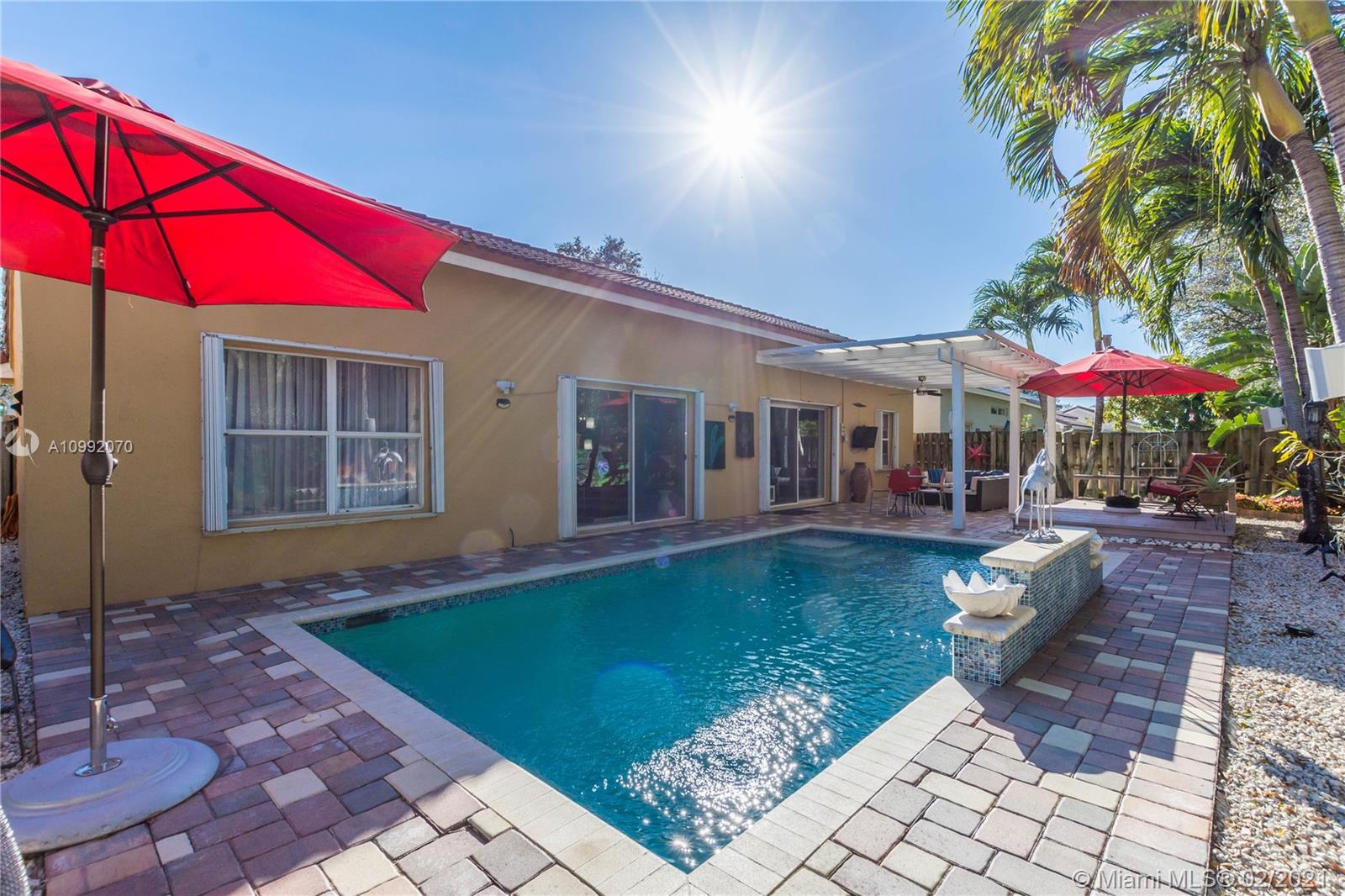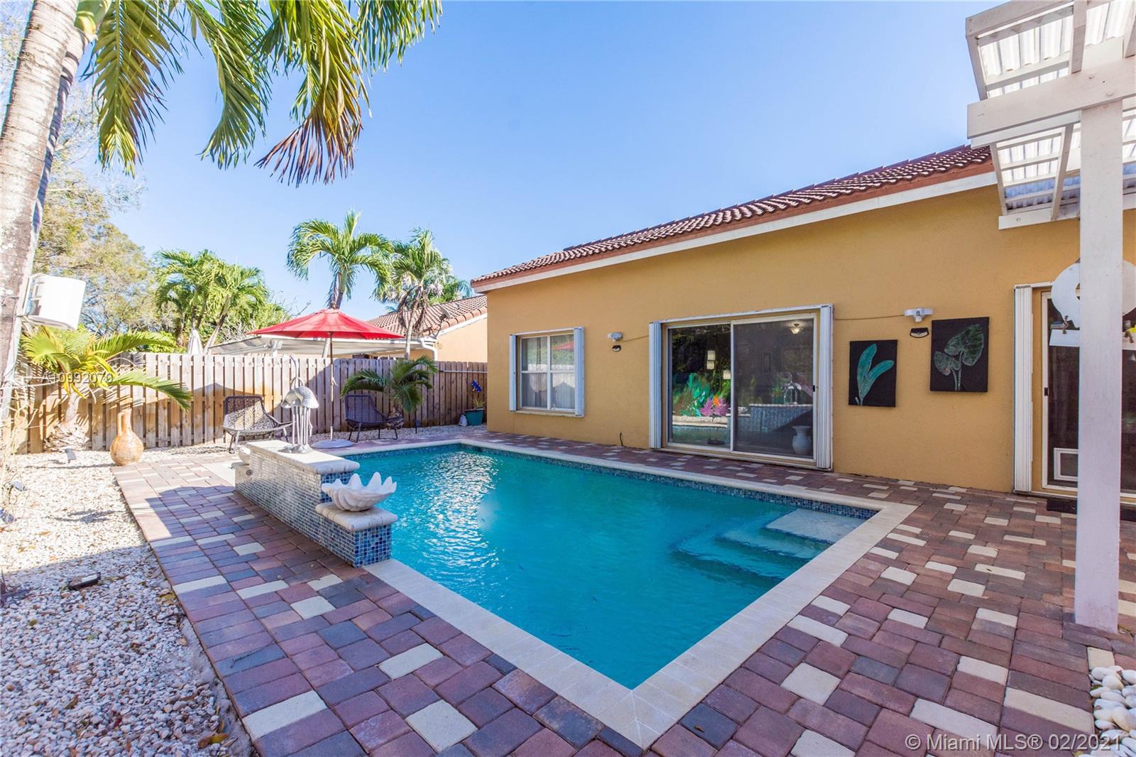 Beautiful 3 bed, 2 bath, 2 car garage in the tree lined Trilogy neighborhood in Miramar, This well kept home has a new pool 2020 and Solar Panels to make it the most energy efficient home in the area. Current FPL bill runs an average of $79 per month to power everything. Features vaulted ceilings and neutral tile throughout the home with a modern kitchen with wood cabinets, granite countertops & stainless steel appliances. The master suite has a newly renovated bathroom - an ultimate spa experience complete with a full body shower & glass door shower. The backyard is the ultimate entertaining oasis featuring a waterfall with the pool, a deck, and sitting area. The scene is further enhanced by a hand painted mural by artist Le’creep that completes the look with artistic sophistication.