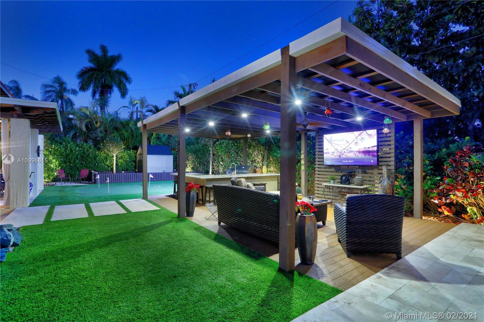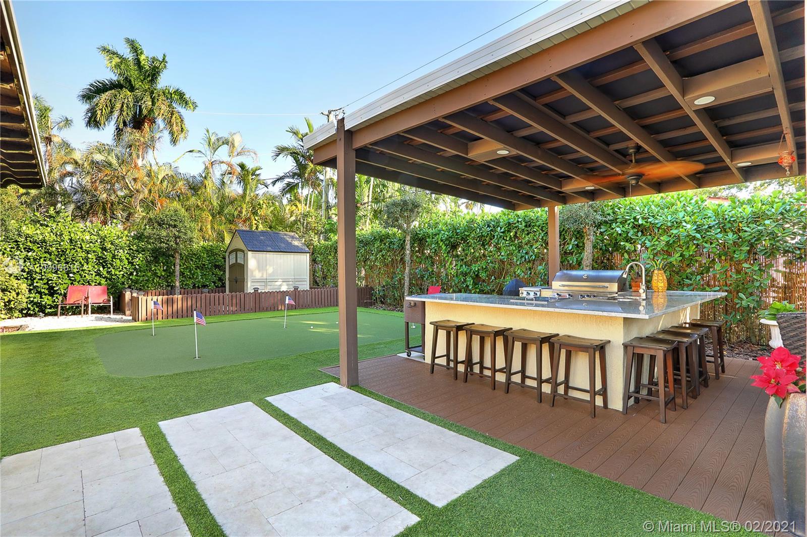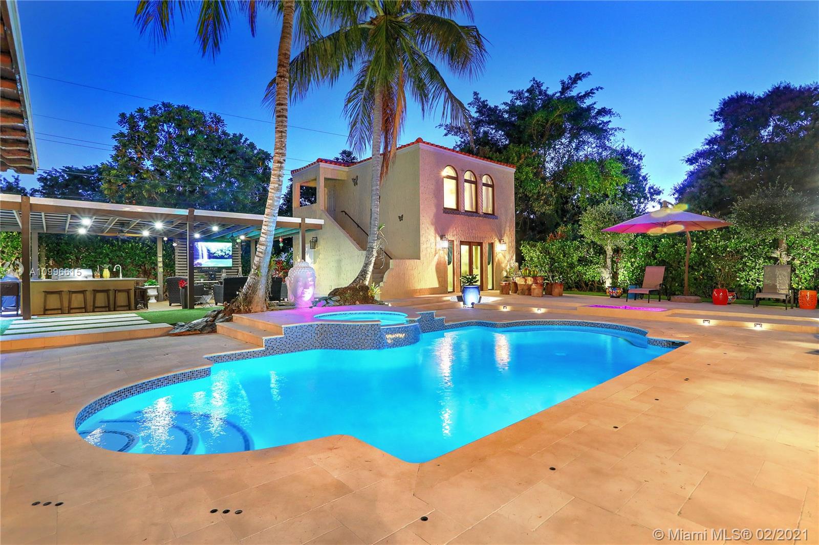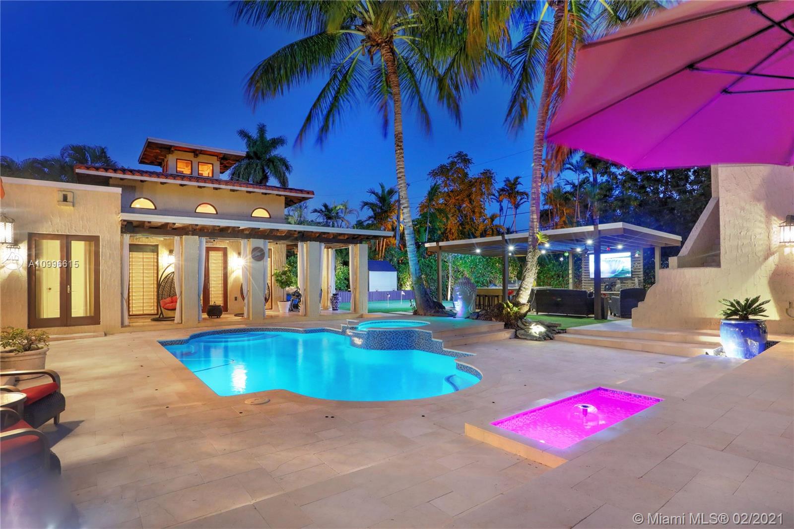 Astonishing Old Spanish 4/4.5 main house, detached guest 1/1 & game room w/ 1 bath. The home features gorgeous high ceiling foyer, Desert Bloom marble floors from Dubai, impact windows and Turkish tumbled limestone fireplace. Stunning gourmet kitchen with Turkish stone counters, Sub-Zero, Miele and Wolf appliances. Large master has separate sitting area, Carrara Gold marble bath/spa & custom closets. Moroccan door handles w/ matching hinges. Fully equipped outdoor summer kitchen w/ Bull appliances, granite countertop, synthetic wood decking, and aluminum roof pergola all built in 2018. The pool & Jacuzzi area is spectacular, outdoor flooring has new pavers & artificial grass throughout. There is also a putting green area. This is a wonderful family home perfect for entertaining.