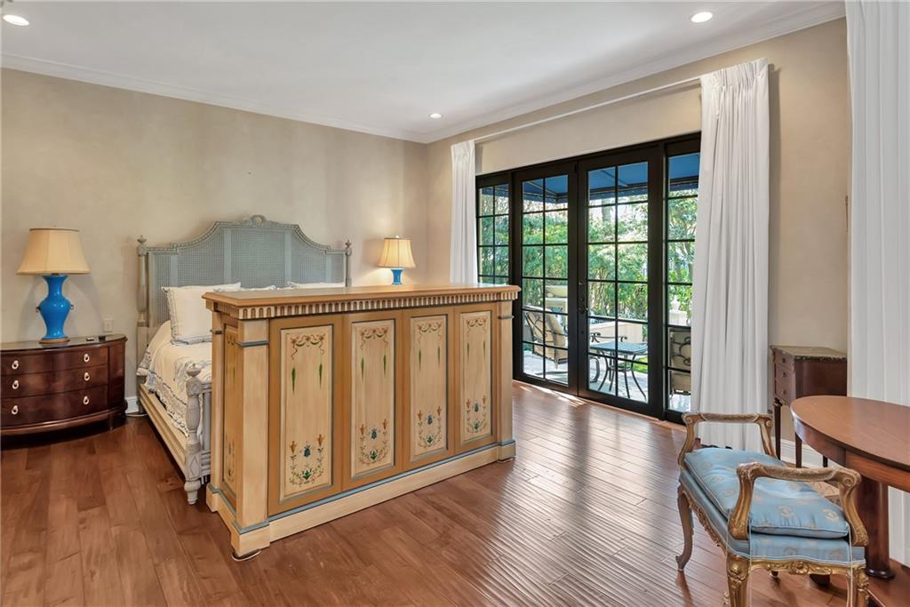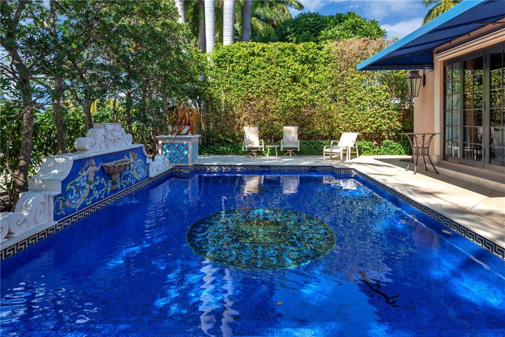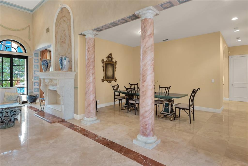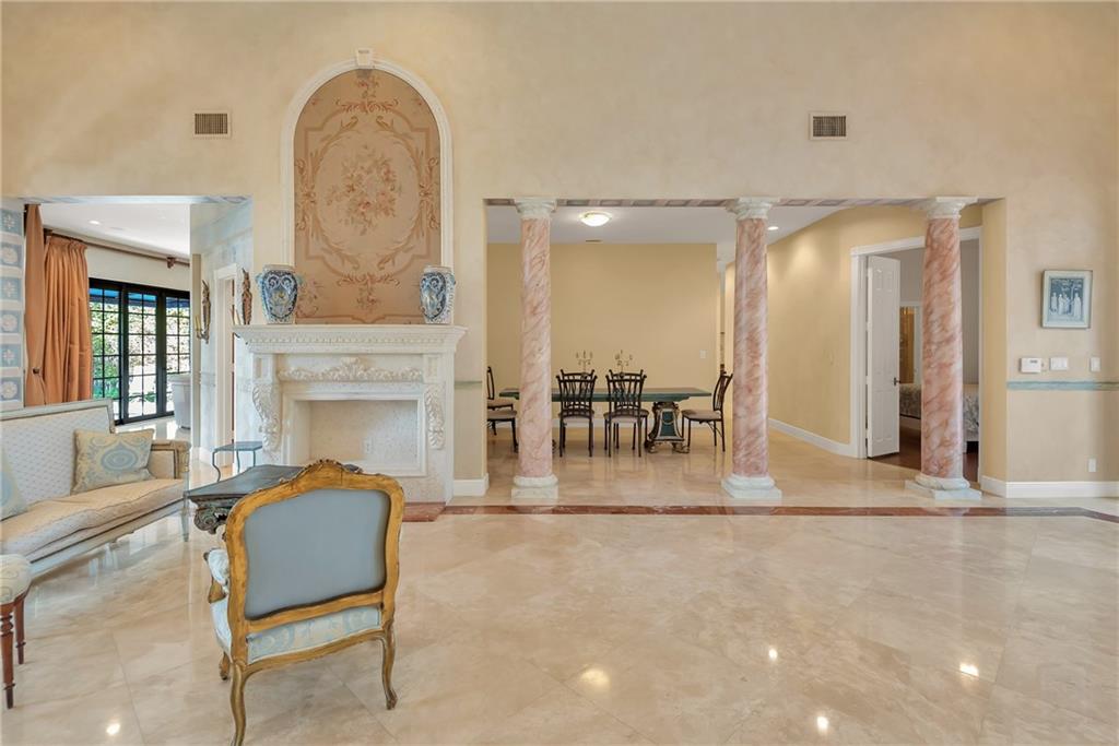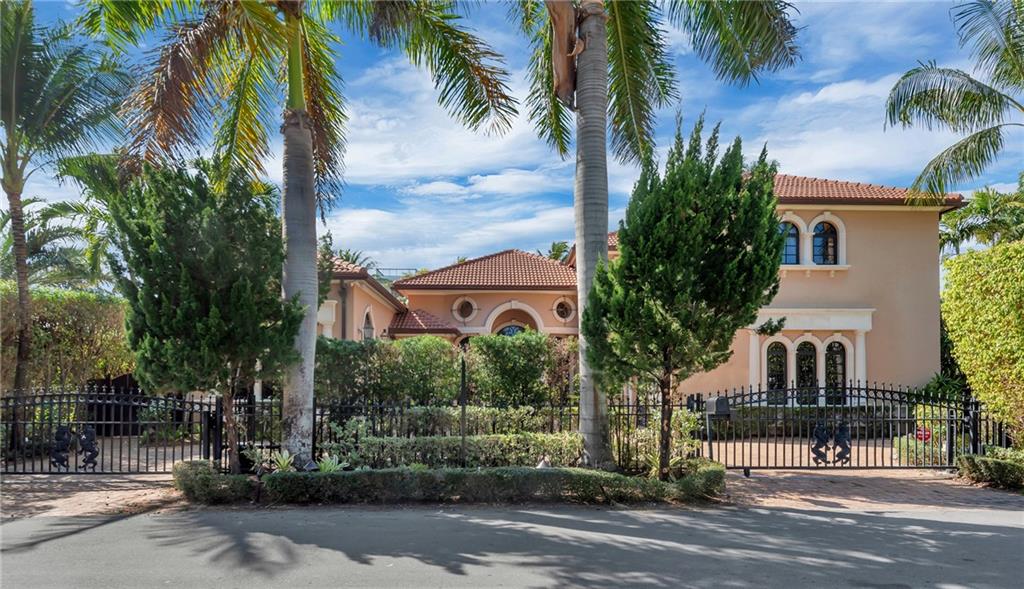 Elegant Mediterranean waterfront estate. E-Gated property features volume ceilings and architectural detail, with a light filled, warm ambiance. Marble and wood floors, granite countertops, chef's kitchen with Subzero Refrigerator and Wolfe gas range open to family room, beautiful Main Suite on 1st floor with expansive walk in closet and bath, separate entrance for Guest/In-Law Suite or Maids Quarters, UG propane tank, Gas Generator, 7 beds per County Records, one bed converted into large laundry/maids workplace, one bed used as Guest Suite's sitting area. Furniture negotiable.