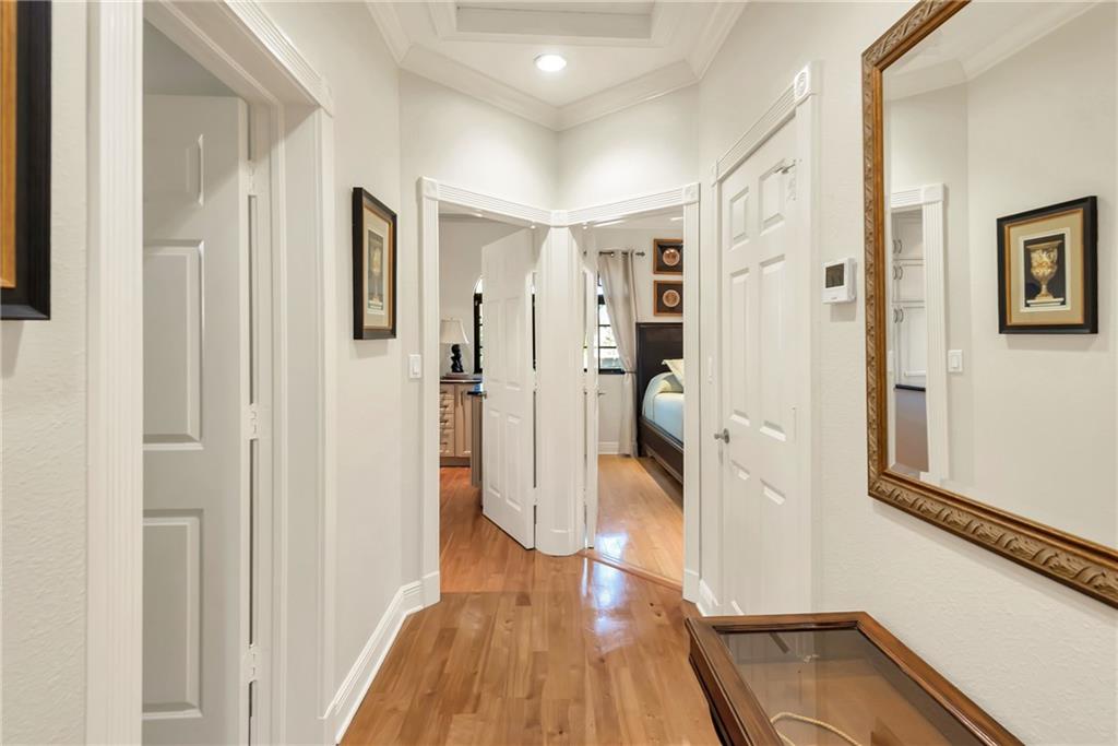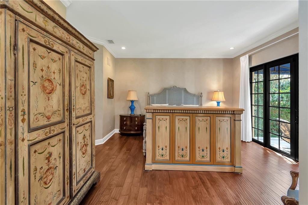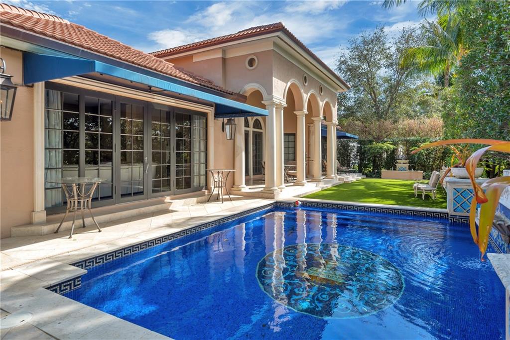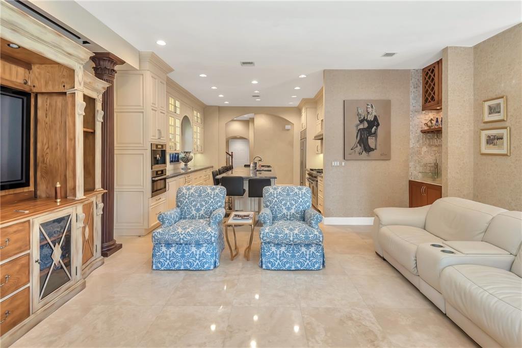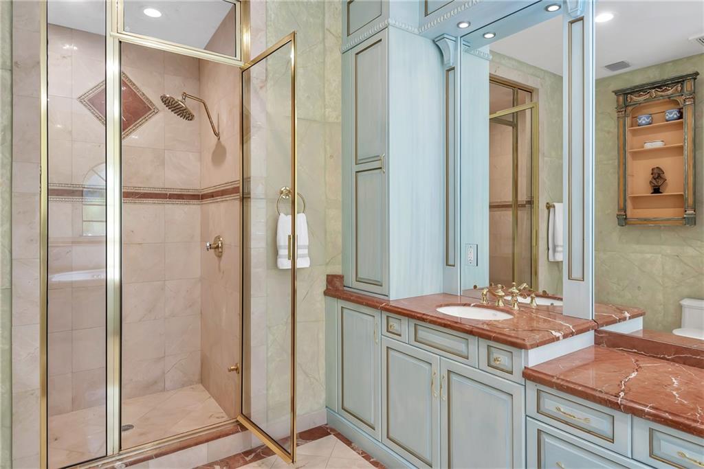 Elegant Mediterranean waterfront estate. E-Gated property features volume ceilings and architectural detail, with a light filled, warm ambiance. Marble and wood floors, granite countertops, chef's kitchen with Subzero Refrigerator and Wolfe gas range open to family room, beautiful Main Suite on 1st floor with expansive walk in closet and bath, separate entrance for Guest/In-Law Suite or Maids Quarters, UG propane tank, Gas Generator, 7 beds per County Records, one bed converted into large laundry/maids workplace, one bed used as Guest Suite's sitting area. Furniture negotiable.