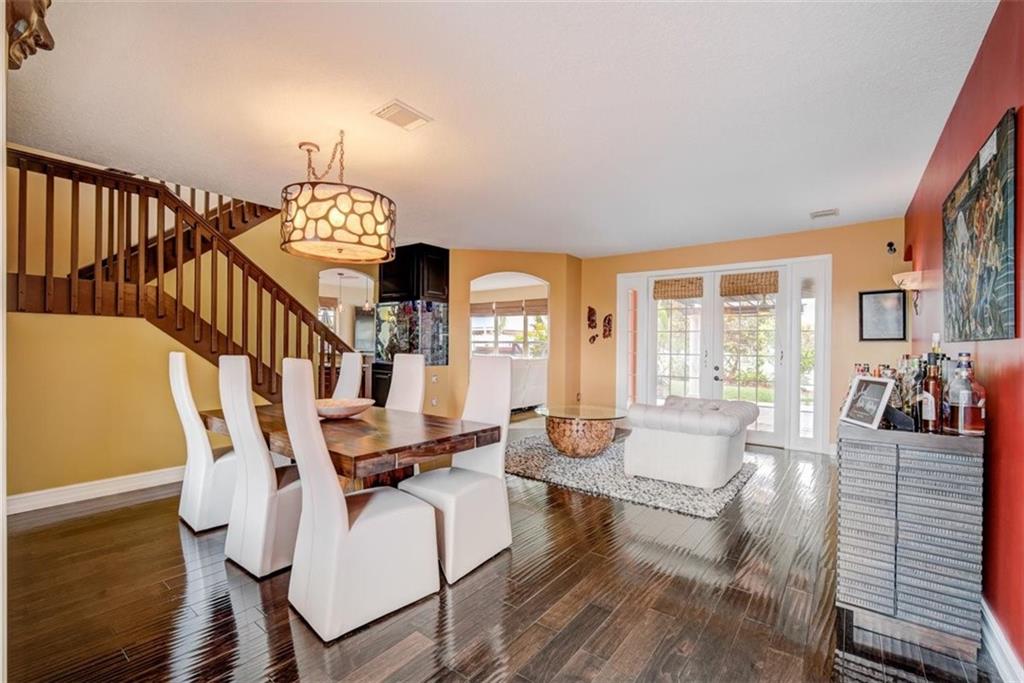 FANTASTIC HOME ON A CUL-de-SAC LOCATION. EXCELLENT CONDITION & OPEN FLOOR PLAN WITH 4BED/3BATH/2CAR GARAGE (ONE BED/BATH ON FIRST FLOOR). A GORGEOUS 300 GALLON AQUARIUM IS THE CENTER PIECE OF THE LIVING AREAS. BEAUTIFUL & TOP QUALITY ALDER KNOTTY WOOD KITCHEN W/EXOTIC JURASSIC GREEN GRANITE COUNTERS & HIGH-END S-STEEL APPLIANCES. 2YRS OLD A/C, ACCORDION SHUTTERS, FRENCH DOORS, WOOD & POLISHED ACID STAIN CONCRETE FLOORS, LED LIGHTING, PARTIALLY RENOVATED BATHROOMS AND DECORATOR’S TOUCHES. LARGE AND FENCED WATERFRONT LOT AND EXTENDED COVERED PATIO AREA WITH A SUMMER KITCHEN TO ENJOY THE WATER VIEWS IN COMFORT. AMAIZING HOME WITH A LOT OF CHARACTER!