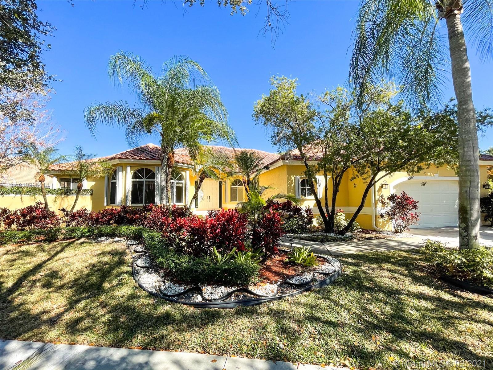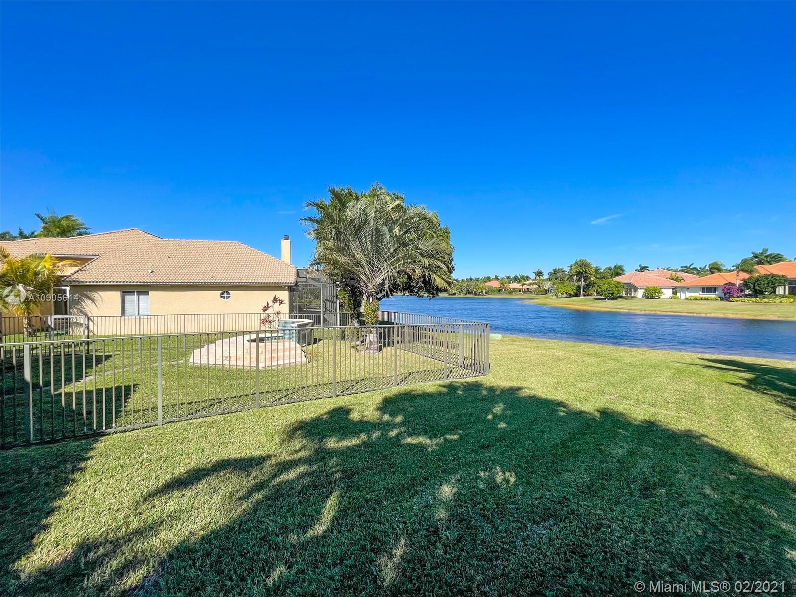 Beautiful house in the exclusive gated golf community of Weston Hills Country Club. This 1 story home features: newer roof 2018!! 4 bedrooms, 4.5 bathrooms plus large office, split floor plan, spacious master suite; every bedroom has its own bathroom plus a guest bathroom, large screened patio with relaxing lake view, Jacuzzi, fenced back yard and accordion shutters. Just painted inside and outside. Plenty of outdoor space, perfect for entertainment or relax in your private backyard and enjoy the spectacular lake view. Downtown is only minutes away from this lovely home. Excellent schools make this a great family home in a city designed for family living.