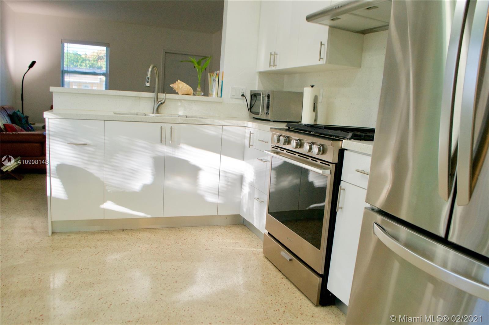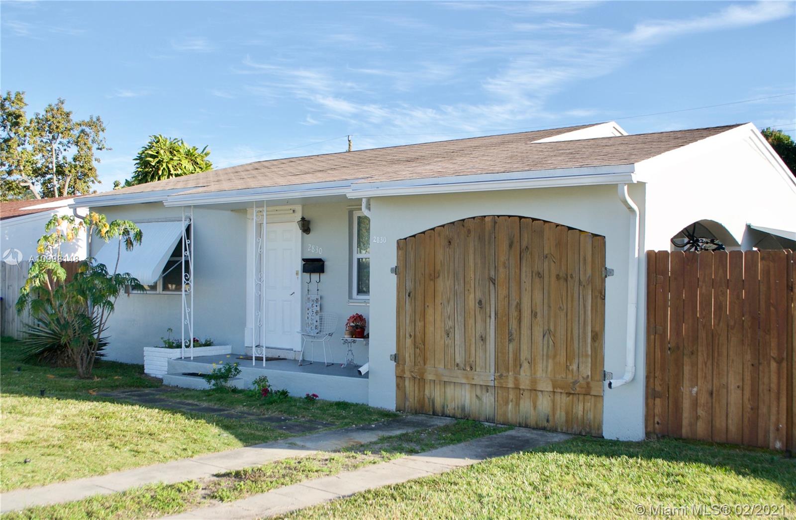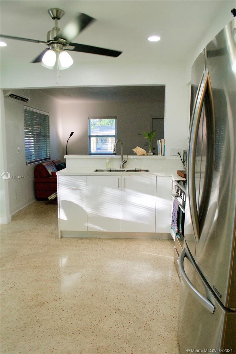 Delightful, Mid century charmer sitting on over 8000sq ft, a stones throw from downtown Hollywood! Terrazzo floors, open kitchen, high end S.S. appliances & sparkling white quartz counters, adorable, bay window bump out, eat in dinning area. Bonus florida room/den! large carport that is part of the original roof line for ez conversion to third bedroom or garage. Newer Windows and A/C, roof replaced 2007, septic system and drain field replaced 2011. New Gas stove and hot water heater, impact doors, hurricane rated shutters for all windows, hip roof (insurance discount) Super efficient mini split a/c, system with heat and dehumidifier! *LOW FPL bill* ground water fed sprinkler system with electric well pump (free water for landscaping and garden) *FLOOD ZONE X* No flood insurance needed!