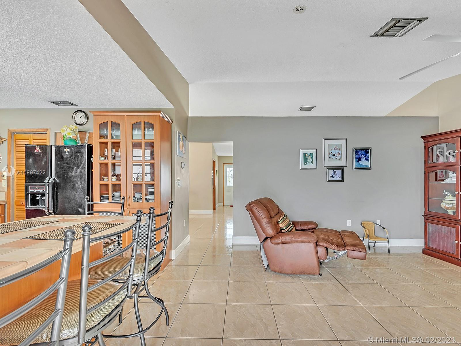 Watch sunsets from the front porch in this move-in ready home located minutes away from the Gratigny, shops & Miami Lakes. Home is located in a quite dead-end street, safe for children to play outside. Features new tile roof, freshly painted exterior, covered back patio into the yard, updated kitchen & appliances, master walk-in closet, & tile throughout the home. Large living & dining room. New Roof & AC is 4 years old. Drive-way fits 3 to 6 cars & has a one car garage. Laundry located inside garage that includes a side door to the exterior. Water/Sewer is from City of Hialeah & has new plumbing-no cast iron. Electricity is underground. Accordion shutters. Owner Occupied, showings by appointment only with 24 hour notice. Please book using ShowingTime. Buyers Realtor must accompany Buyer.