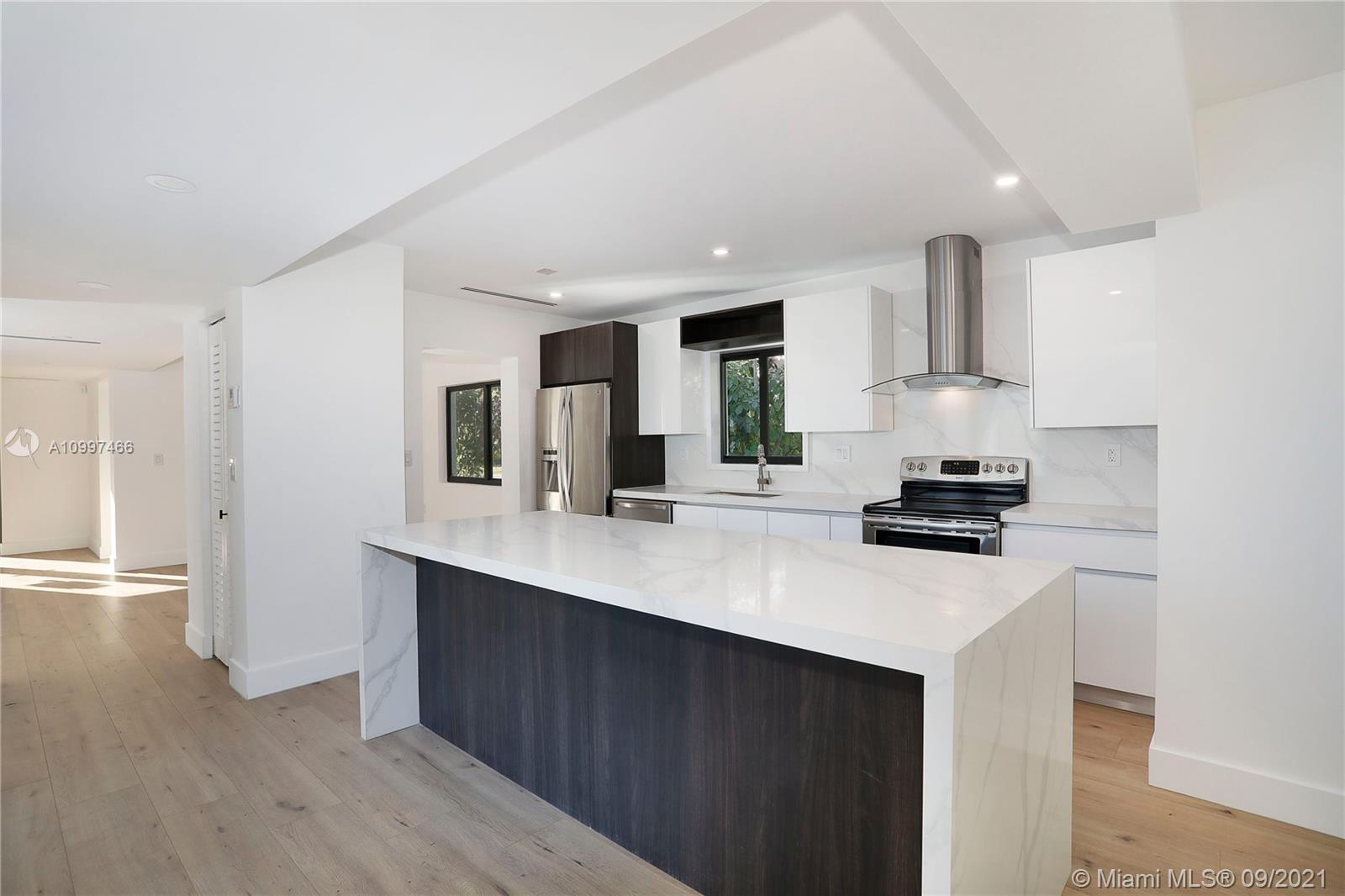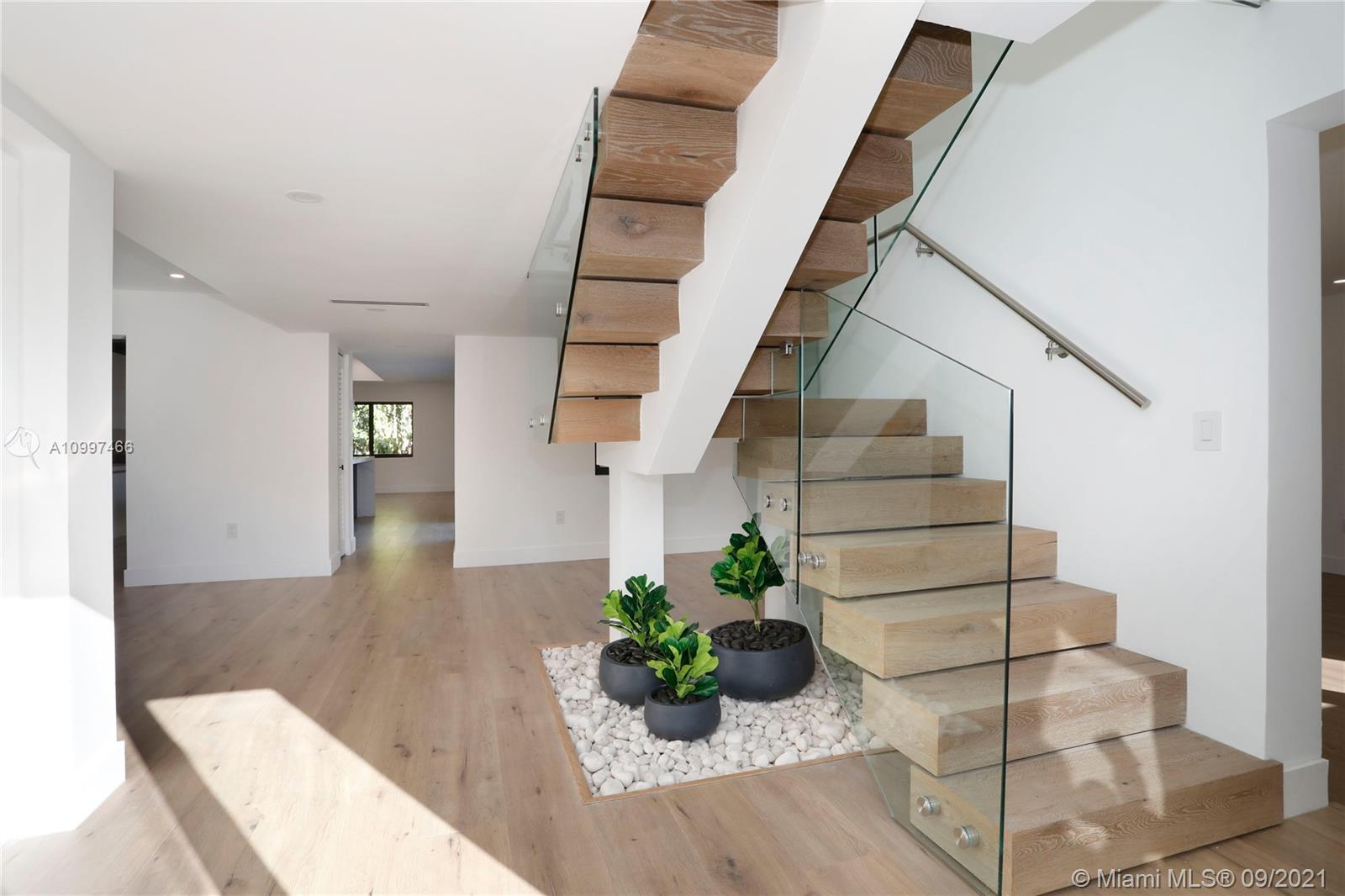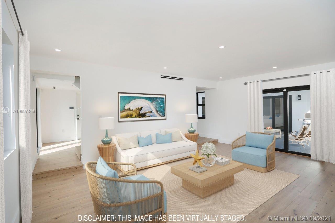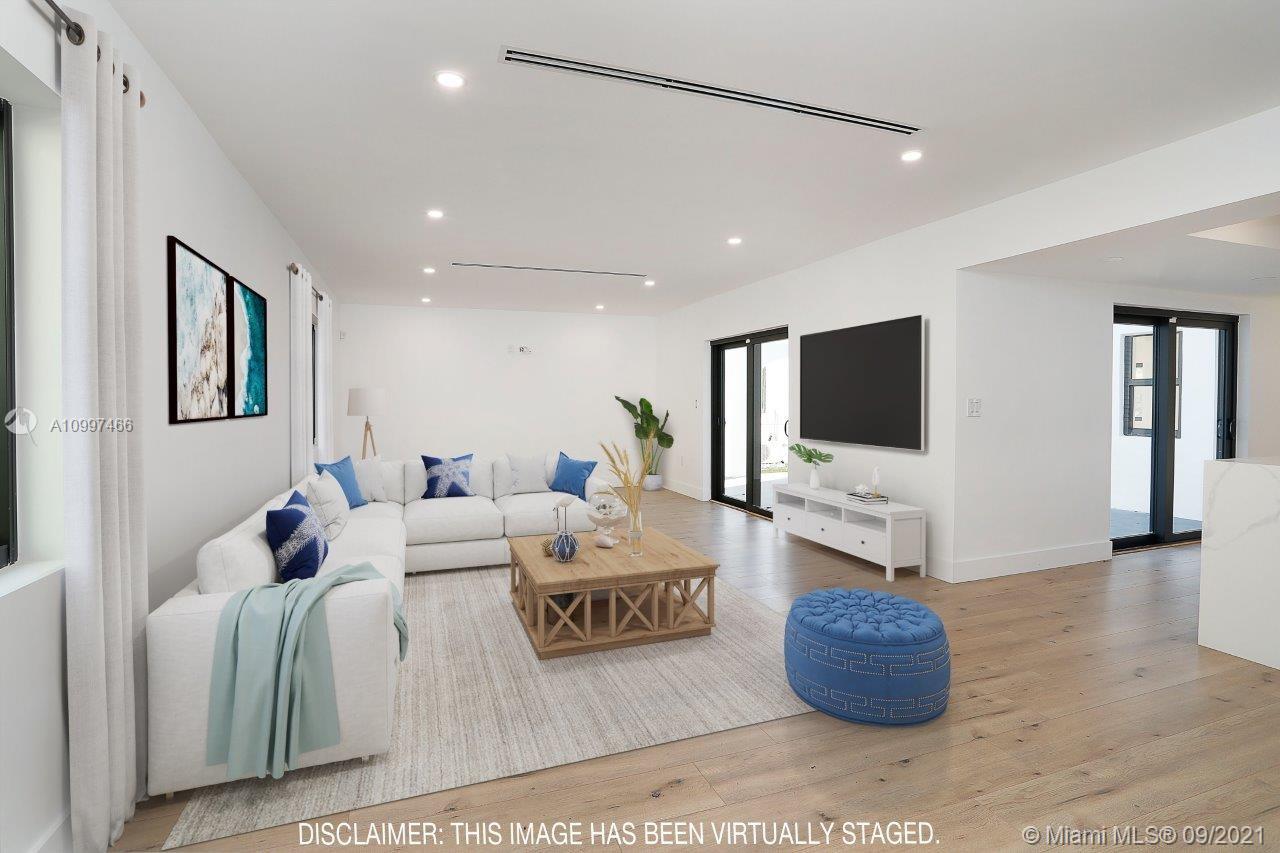 This fully renovated modern style 2-story 3 bedroom/2.5 bathroom + 1 car garage home is nestled on a quiet street in North Coral Gables with practically all new features. From a new roof to all impact doors & windows, new & unique bathroom details, new gorgeous floors throughout & a central open patio, you'll see it is ready to move-in! The foyer's focus is a glass railing staircase leading you to the 2nd level featuring a bar area & custom built-in cabinetry. The Master en-suite is airy with a custom walk-in closet & a bathroom with dual sinks. The downstairs floor plan has flowy spaces including a formal dining room & living room, redesigned island kitchen with s/s appliances & quartz countertops, an oversized family room & a half-bath. This is a great home to enjoy for years to come.