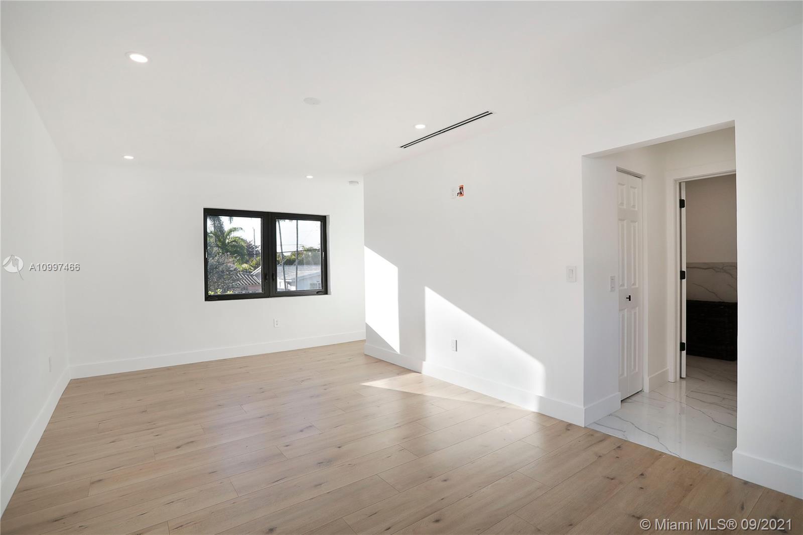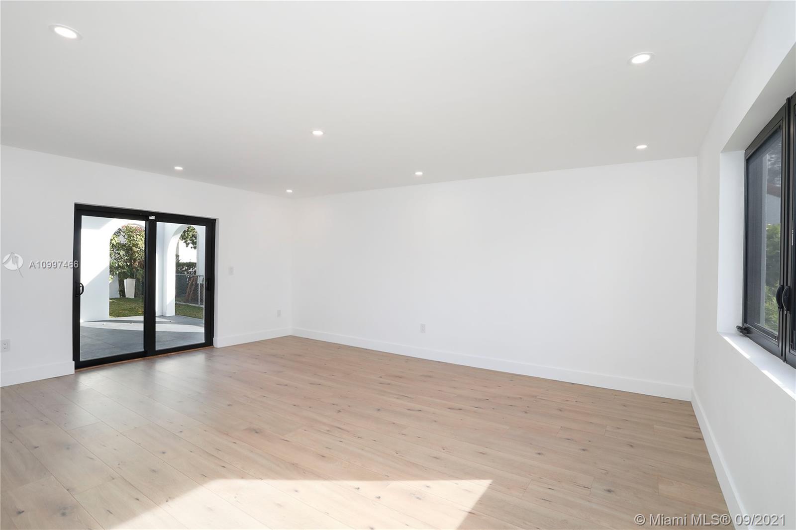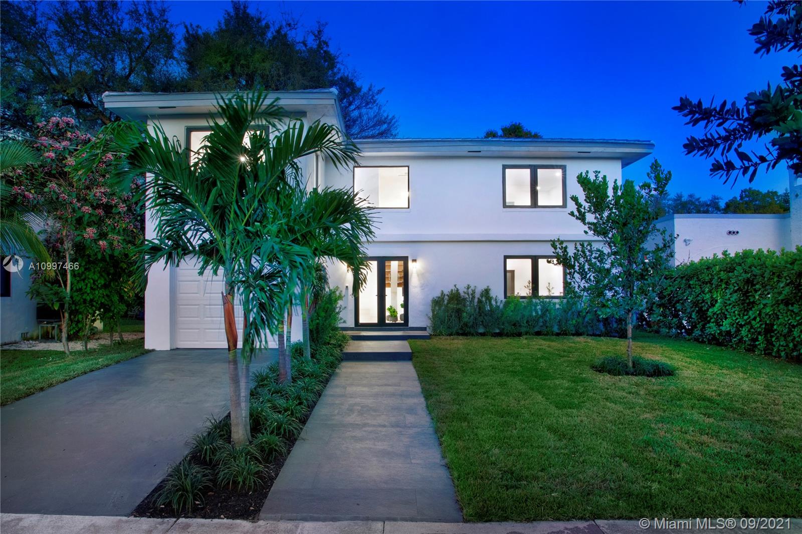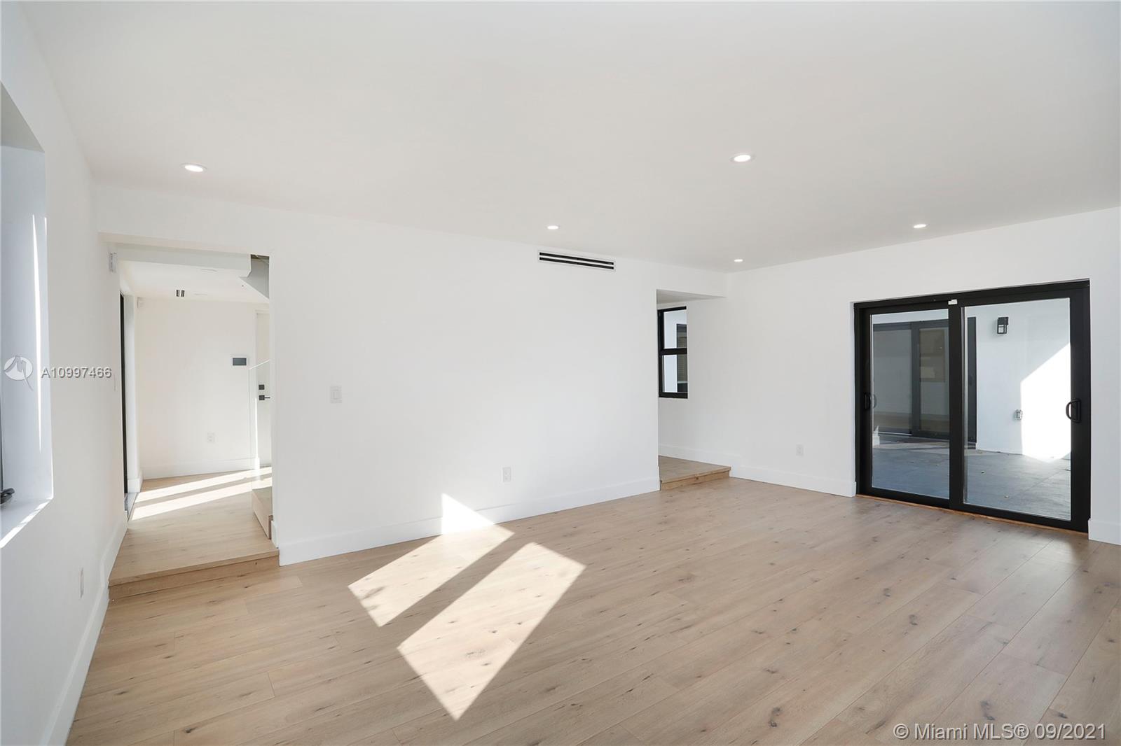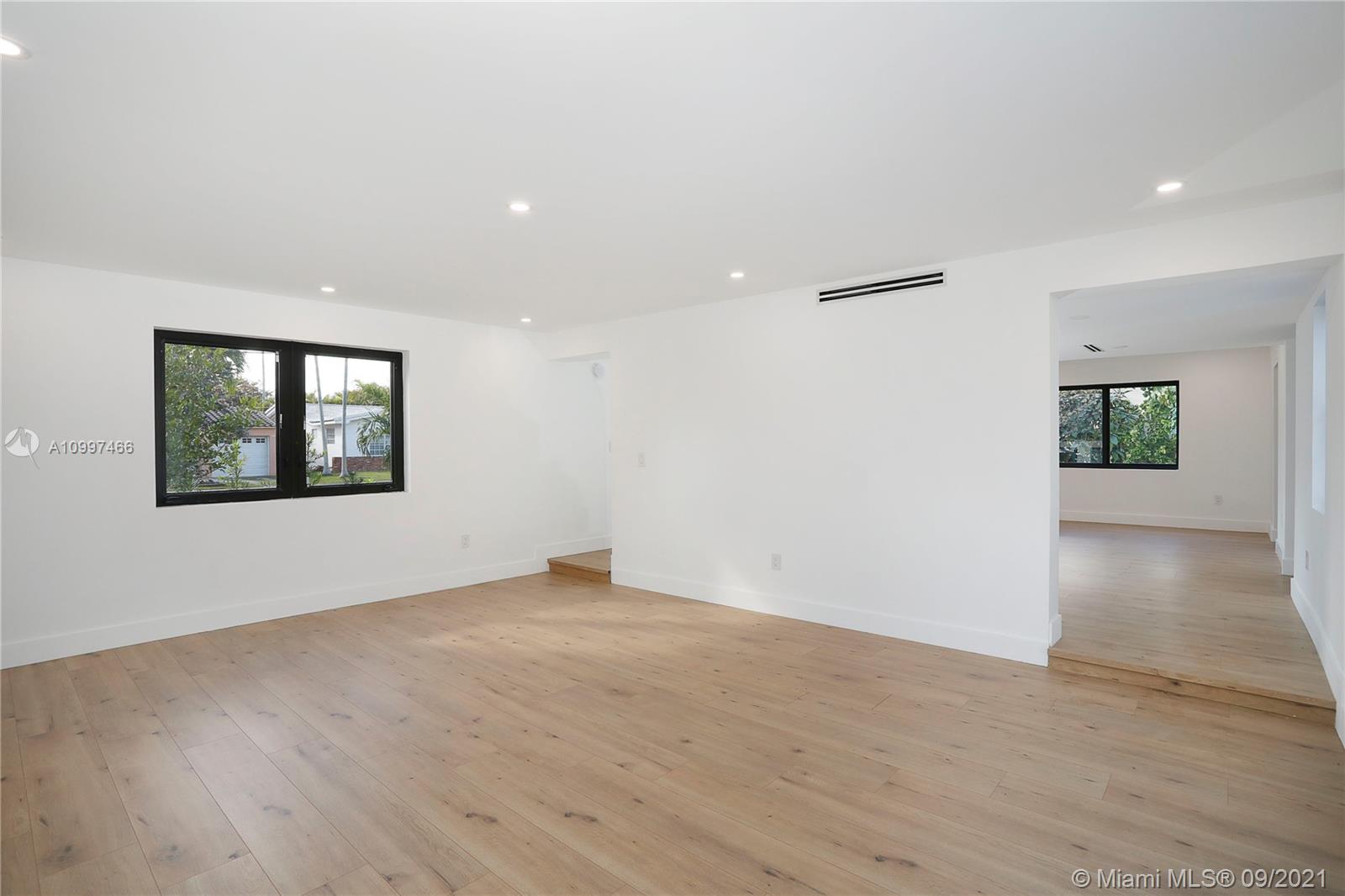 This fully renovated modern style 2-story 3 bedroom/2.5 bathroom + 1 car garage home is nestled on a quiet street in North Coral Gables with practically all new features. From a new roof to all impact doors & windows, new & unique bathroom details, new gorgeous floors throughout & a central open patio, you'll see it is ready to move-in! The foyer's focus is a glass railing staircase leading you to the 2nd level featuring a bar area & custom built-in cabinetry. The Master en-suite is airy with a custom walk-in closet & a bathroom with dual sinks. The downstairs floor plan has flowy spaces including a formal dining room & living room, redesigned island kitchen with s/s appliances & quartz countertops, an oversized family room & a half-bath. This is a great home to enjoy for years to come.