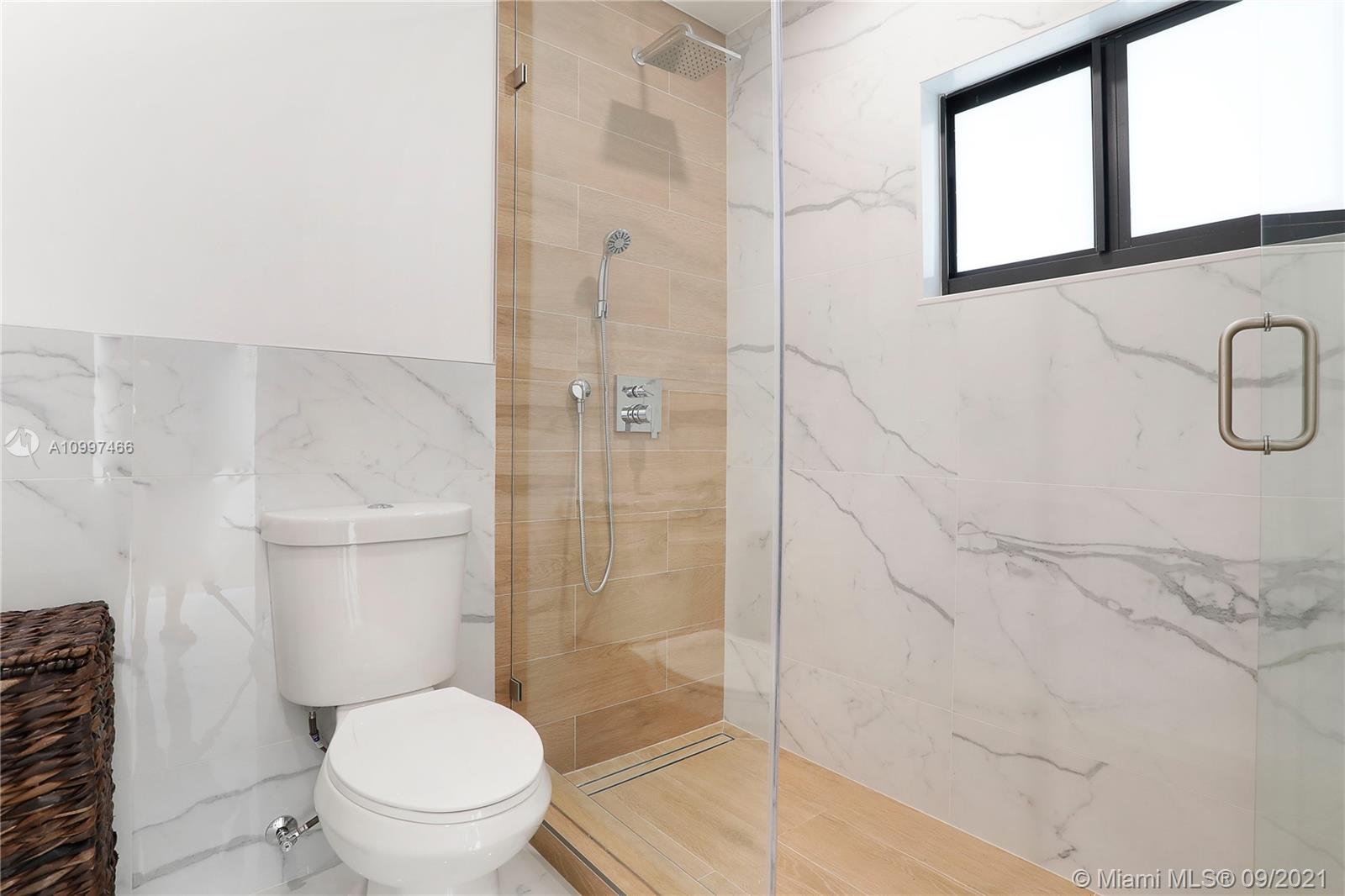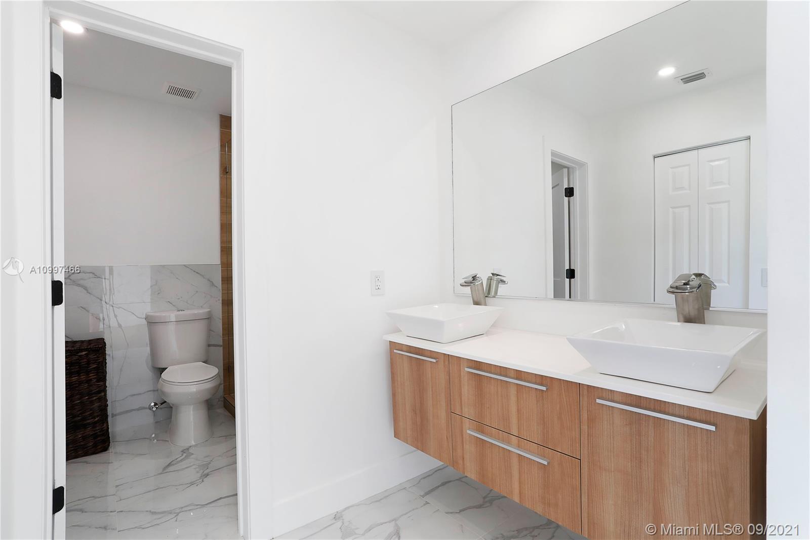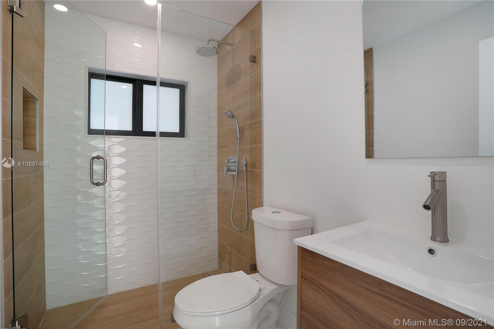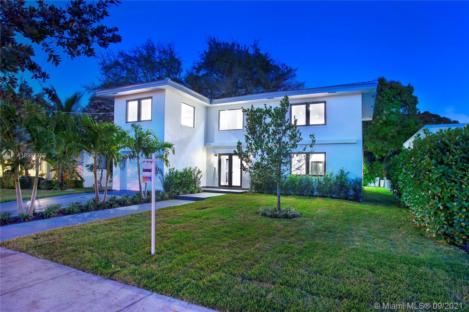 This fully renovated modern style 2-story 3 bedroom/2.5 bathroom + 1 car garage home is nestled on a quiet street in North Coral Gables with practically all new features. From a new roof to all impact doors & windows, new & unique bathroom details, new gorgeous floors throughout & a central open patio, you'll see it is ready to move-in! The foyer's focus is a glass railing staircase leading you to the 2nd level featuring a bar area & custom built-in cabinetry. The Master en-suite is airy with a custom walk-in closet & a bathroom with dual sinks. The downstairs floor plan has flowy spaces including a formal dining room & living room, redesigned island kitchen with s/s appliances & quartz countertops, an oversized family room & a half-bath. This is a great home to enjoy for years to come.