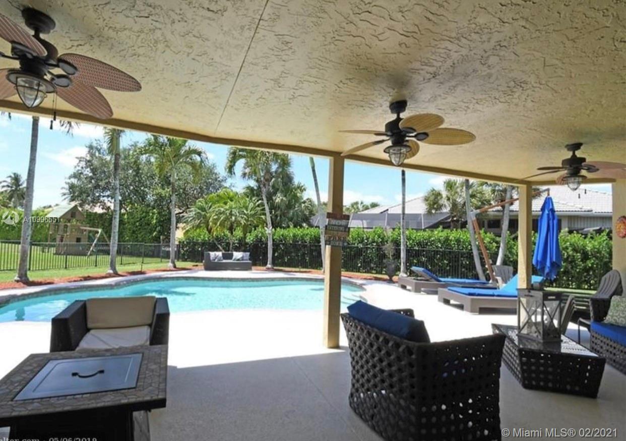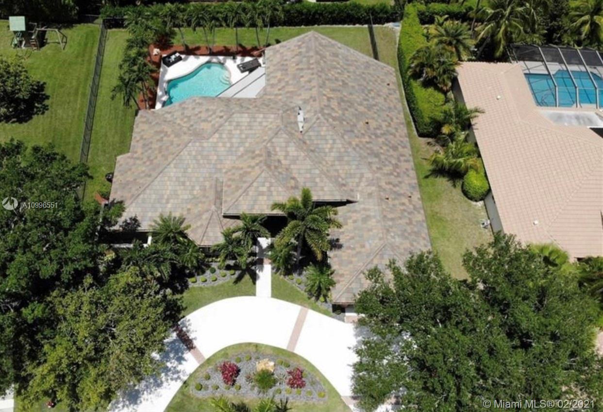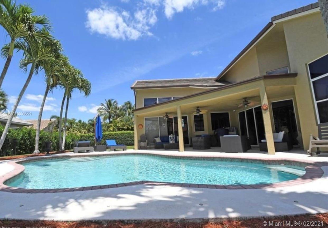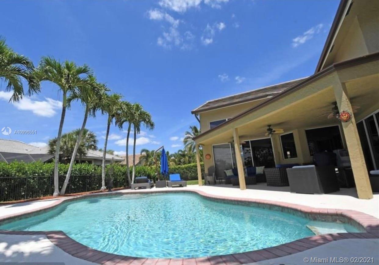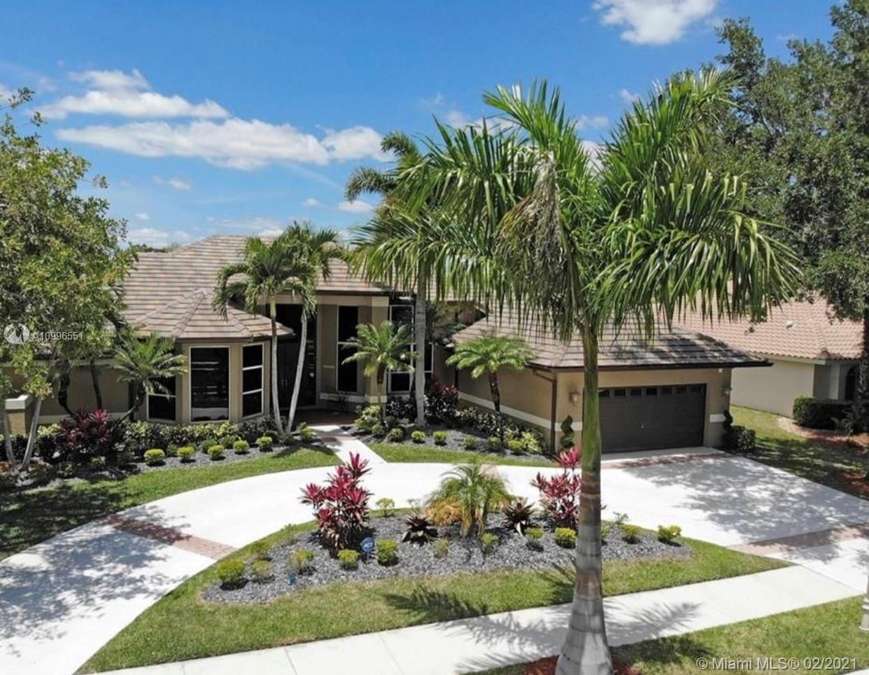 Gorgeous home in the heart of Weston's Palm Island. This spacious 4 bedroom 3 bathroom palace with 3 way split floor plan that screams pride of ownership. Large picture windows allows tons of natural light to shine in. Beautiful separate office with useful built-in cabinetry and sunken living room area with wet bar. Kitchen features wood cabinets/tile back-splash/granite/stainless appliances and useful cooking island for gourmet creations.Tremendous family room/vaulted ceilings and newer roof is only 2 yrs old young. 2 car garage. Sparkling pool area with covered patio, 3 ceiling fans and partial water view of the lake from back yard make this gem a special place to call home. Secure guard gated community with walking distance to A rated schools. Call for private screenings.