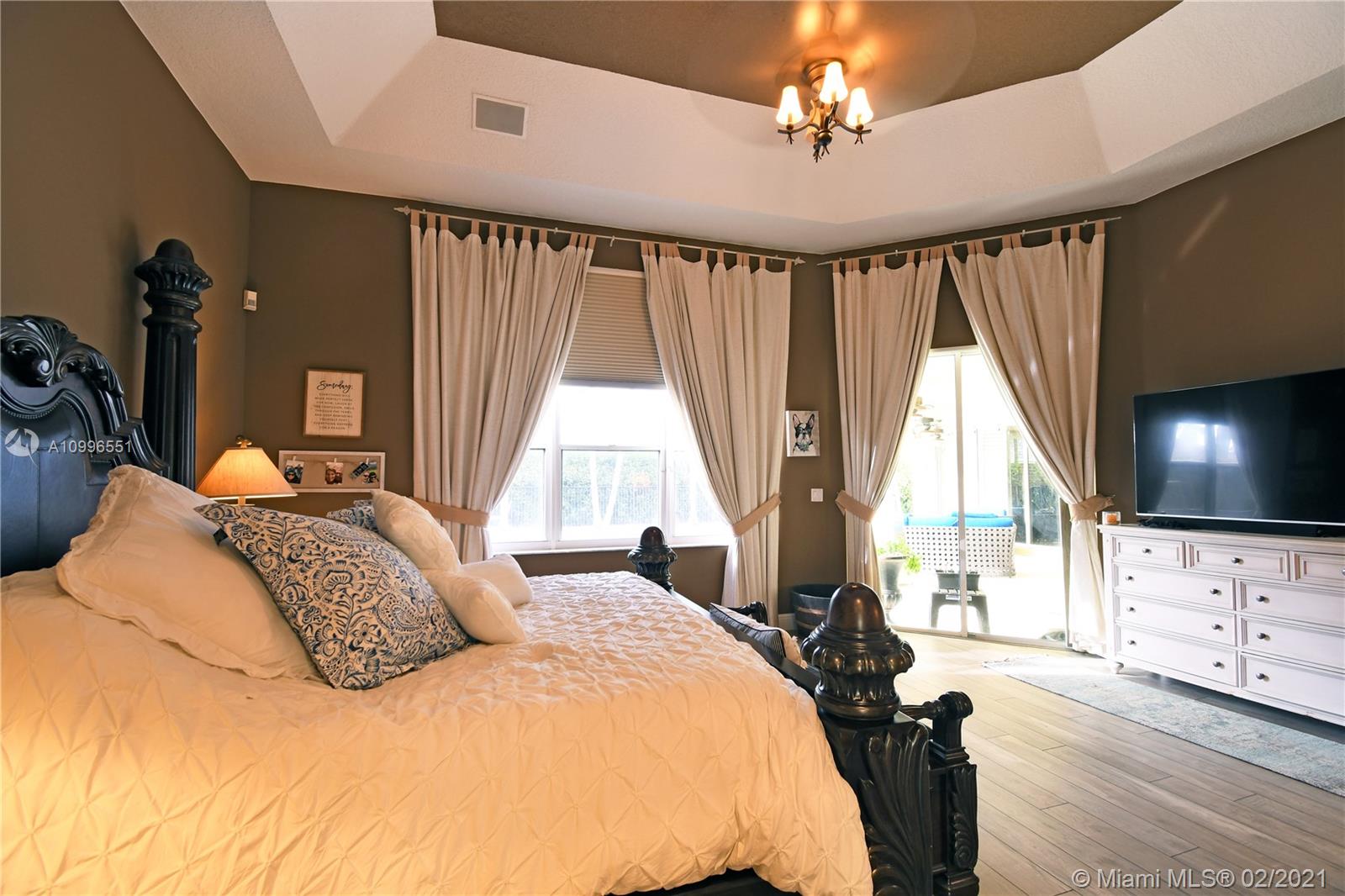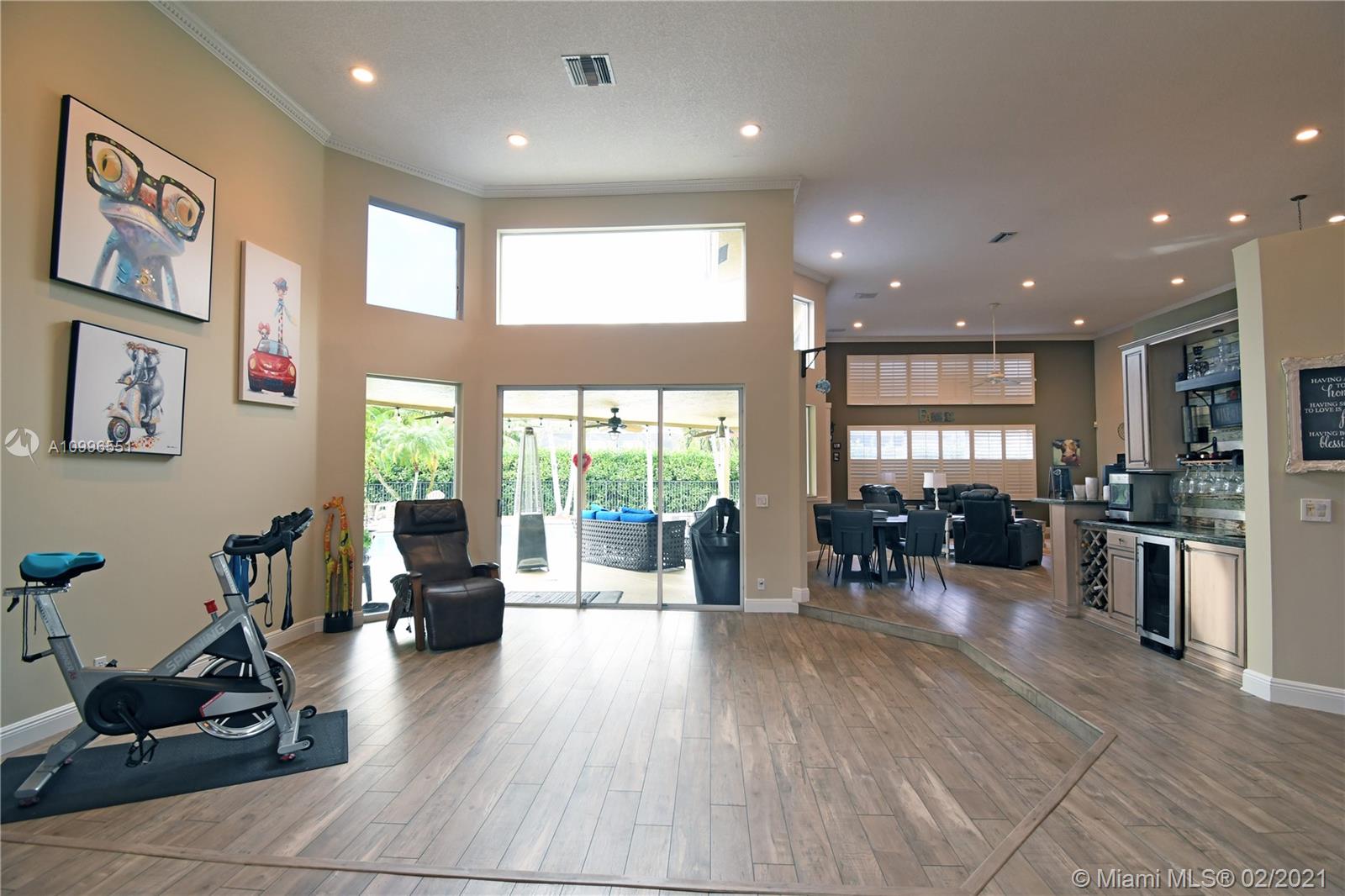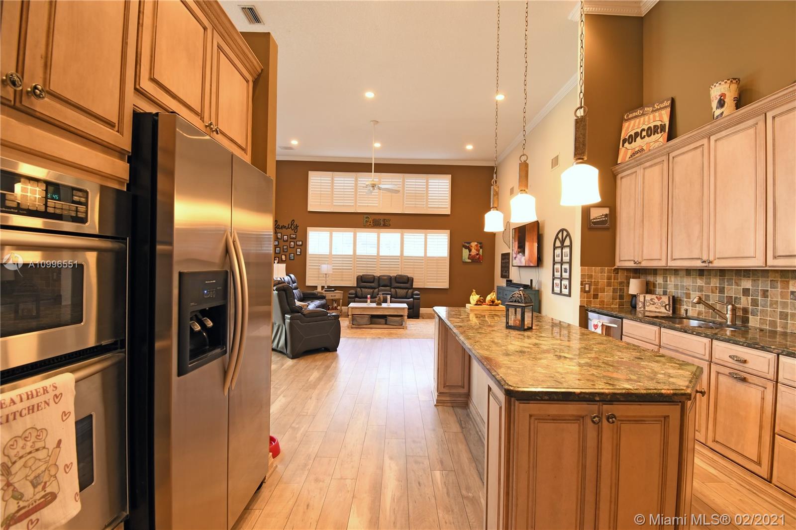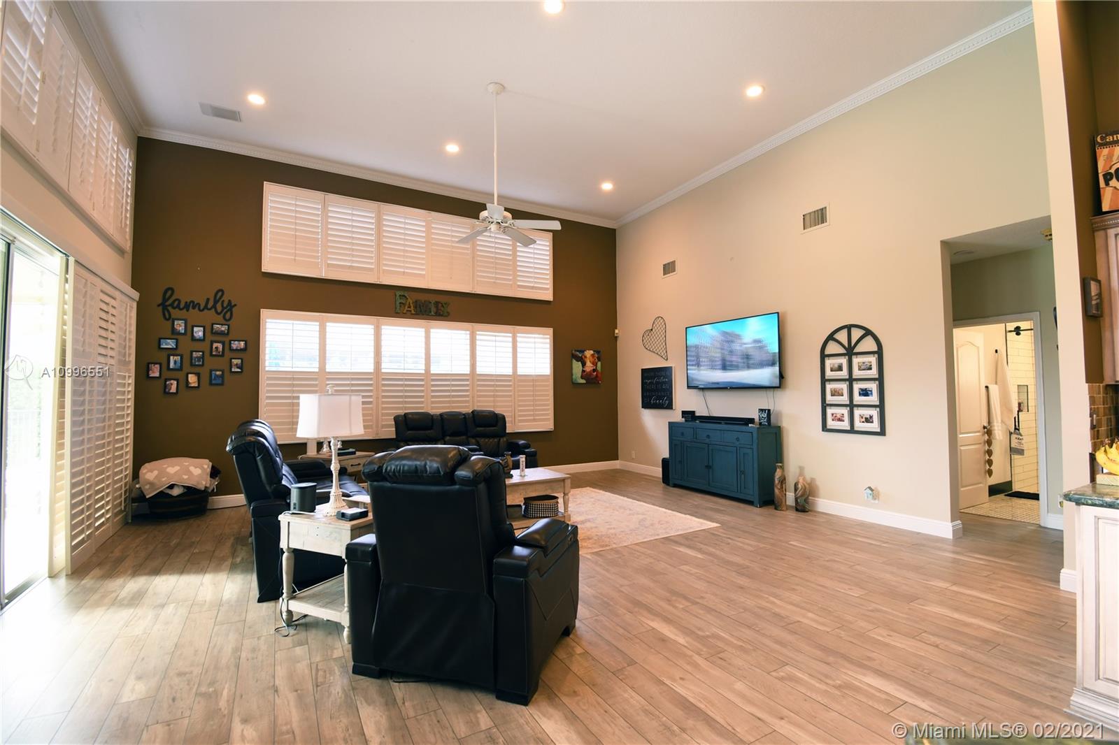 Gorgeous home in the heart of Weston's Palm Island. This spacious 4 bedroom 3 bathroom palace with 3 way split floor plan that screams pride of ownership. Large picture windows allows tons of natural light to shine in. Beautiful separate office with useful built-in cabinetry and sunken living room area with wet bar. Kitchen features wood cabinets/tile back-splash/granite/stainless appliances and useful cooking island for gourmet creations.Tremendous family room/vaulted ceilings and newer roof is only 2 yrs old young. 2 car garage. Sparkling pool area with covered patio, 3 ceiling fans and partial water view of the lake from back yard make this gem a special place to call home. Secure guard gated community with walking distance to A rated schools. Call for private screenings.