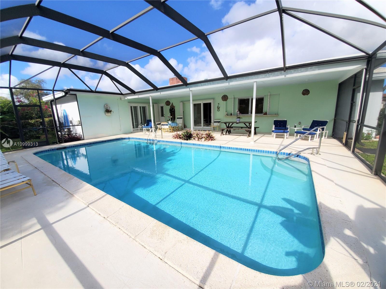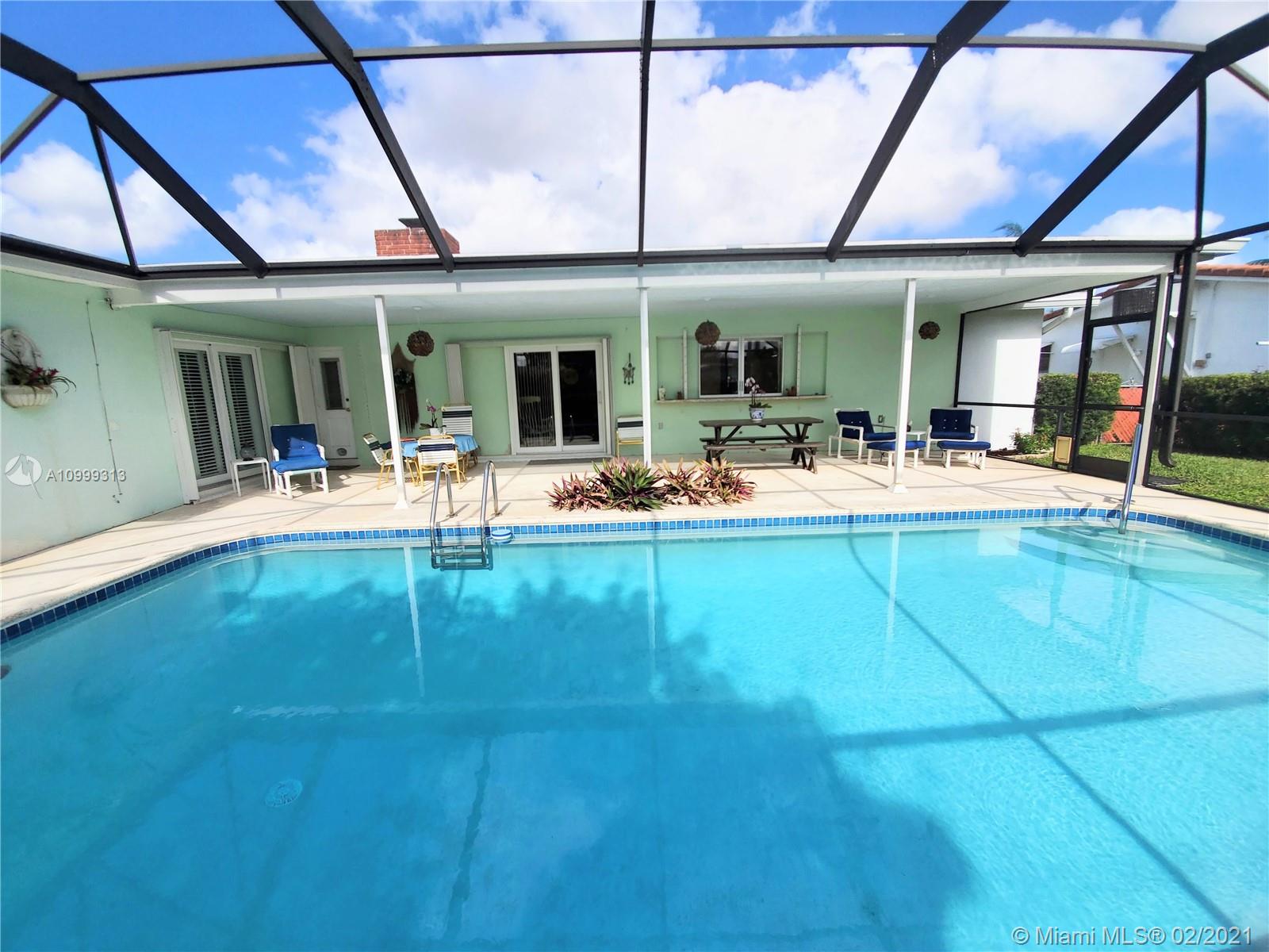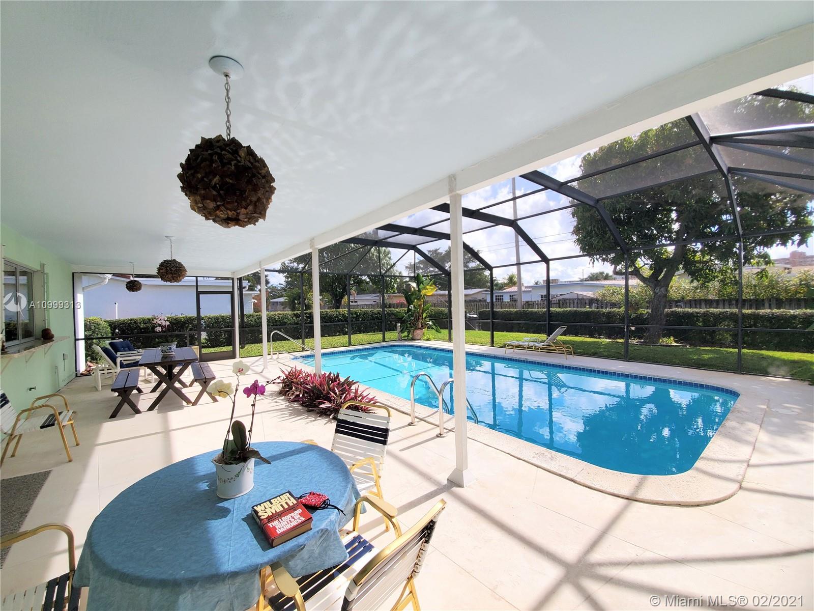 Impeccably kept home in the Hollywood Hills! Spacious 3 Bed/ 2 Bath with large pool. Impact Windows, Updated Kitchen, Tile Floors in Living Area, Carpet in 2 Bedrooms, Family Room with Fireplace, Cabana Bathroom. Master Suite has French Doors leading to the Pool Area and also Walk-in Closet, 1 Car Garage. Lots of Storage, Expansive Outdoor Covered Living Area with Screen for Outdoor Enjoyment for everyone! Delicious Mango Tree located in the corner of the large green backyard, great play area for kids or dogs!