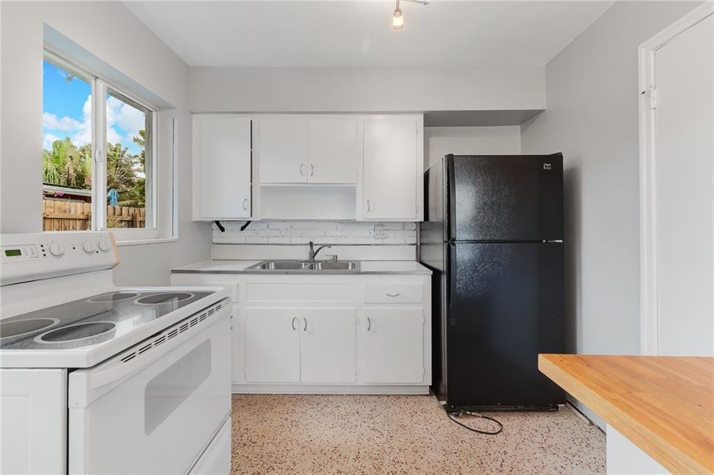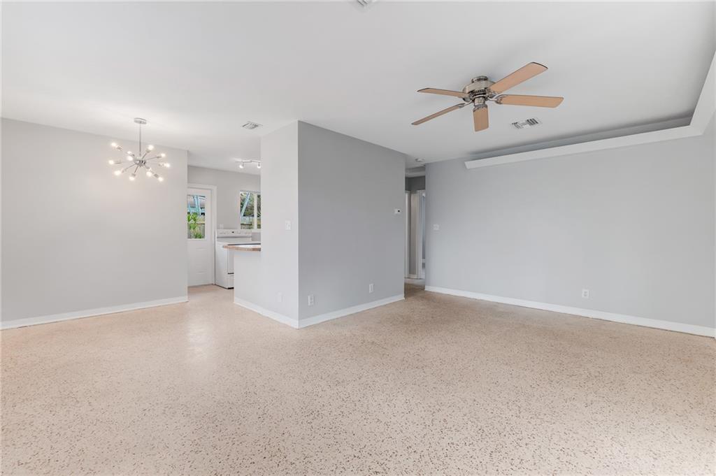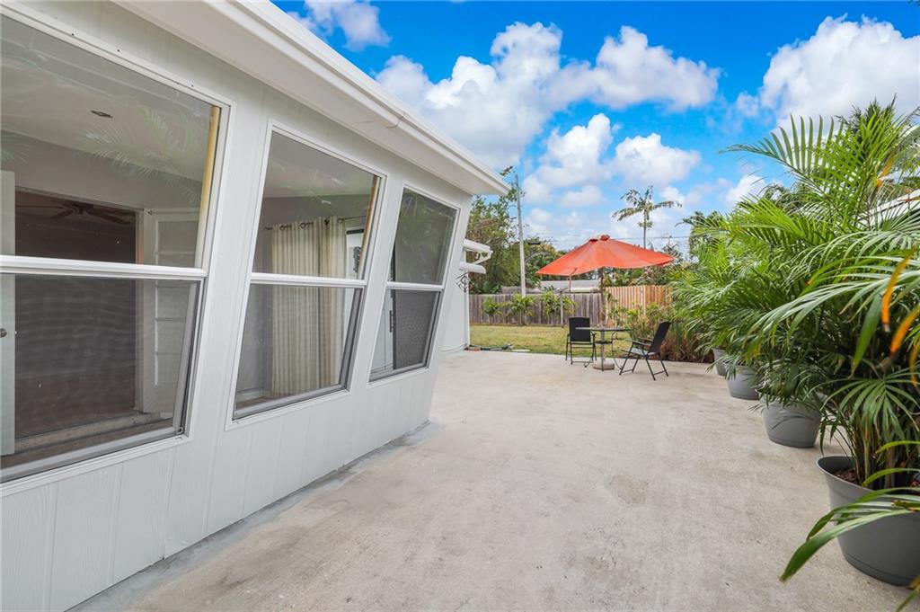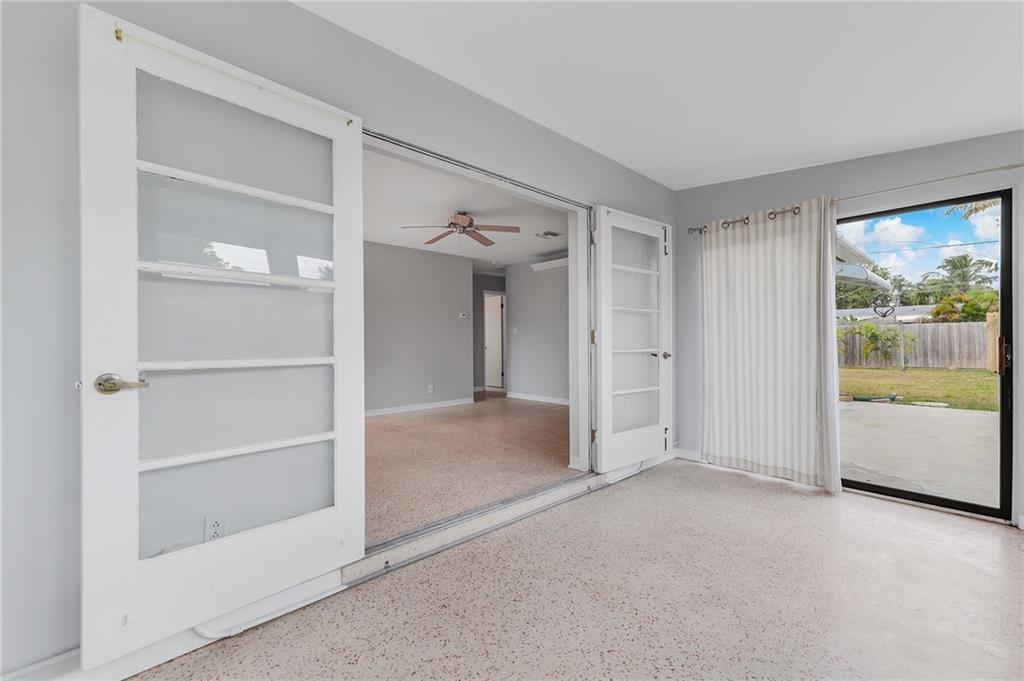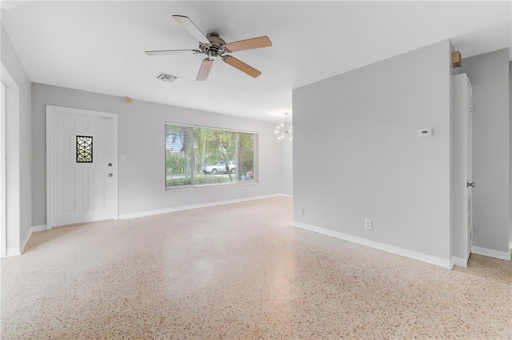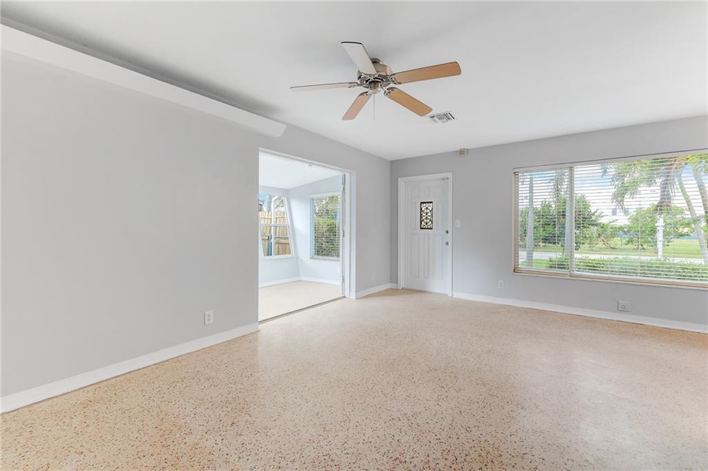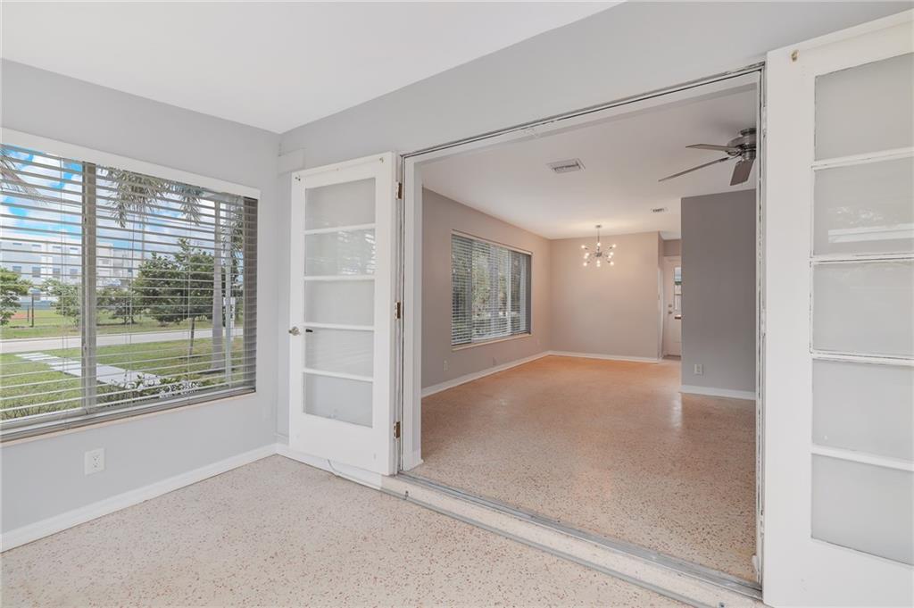 Classic mid century modern two bedroom, one bath home featuring terrazzo floors throughout and a side den/office with sliding doors to an oversized backyard and patio with more than enough size for a pool. This home has just been painted on the inside and out in light grey colors that compliment the terrazzo floors. Lots of sun and located on a quiet street. Roof was replaced in 2013, air conditioning in 2017. Original kitchen waiting for your personal touch. Move right in and make this home your own. Walking distance to the Drive, and equally close to the establishments on the 13th Street corridor.