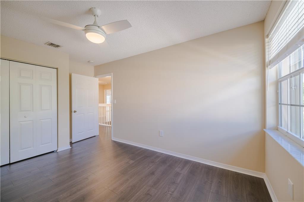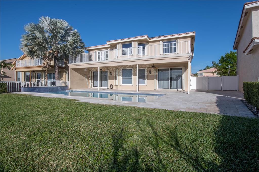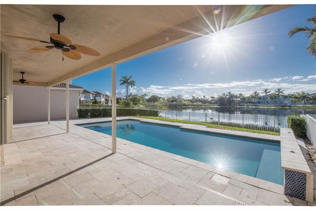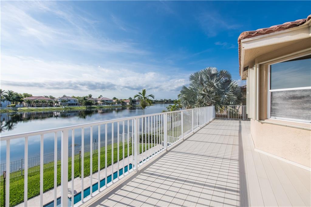 Magnificent floor plan. Upgraded kitchen with granite countertops and SS appliances overlooking a great view of the amazing new oversized pool and lake. Big master bedroom with sitting area and big balcony. New laminate wood floors, fenced backyard, accordion shutters, solar water heater, new A/C units. Association fee includes basic cable,internet and gated community.