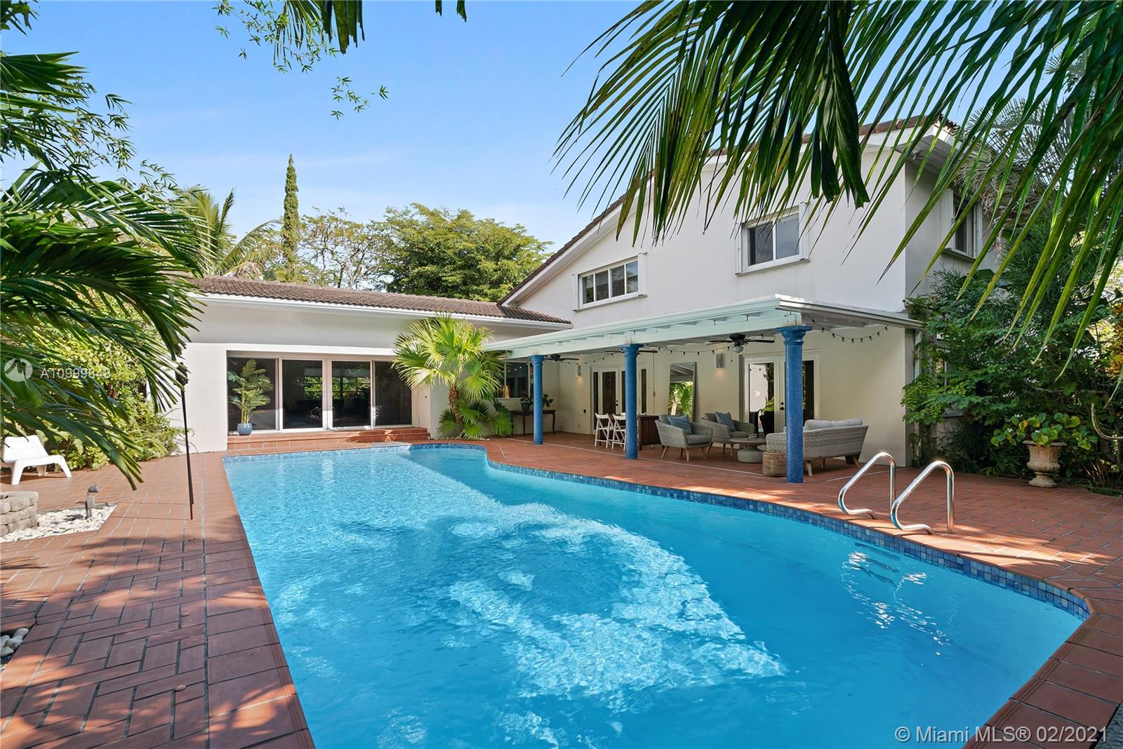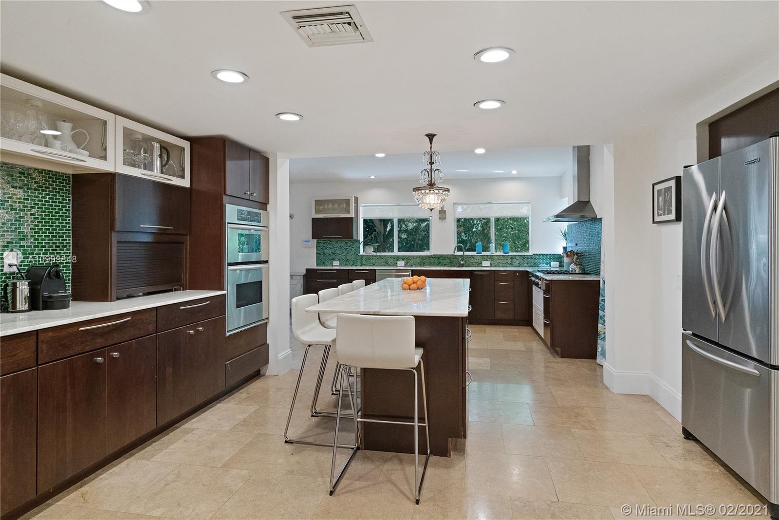 This one-of-a-kind Pinecrest home sits on a private, corner lot and exudes the South Florida lifestyle. Features include: high ceilings & lots of natural light, refinished limestone & hardwood floors and a stunning Gourmet Chef’s Kitchen w/ Calacatta marble, gas range & eat-in island. Beautiful family room w/ vaulted ceiling overlooking sparkling pool. Impact windows & doors. Walk out of the master suite to your private pool terrace. Upstairs you will find 3 additional bdrms plus an office/den. 2-car garage. Large covered patio, perfect for entertaining. Lush landscaping & mature mango trees. Enjoy life in your very own Tropical Oasis!