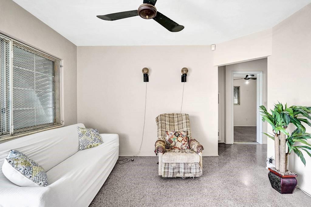 2 bedroom 1 bathroom home with a 1 car garage and enclosed Florida room. Huge fenced 6,000 square foot lot with plenty of room for a pool. The home is in original condition with terrazzo flooring, eat-in kitchen and bathroom ready for you to update to your personal taste. Water heater and washer/dryer are leased. Buyer can assume lease or these items will be removed prior to closing. Roof 1999. Age of AC not known but appears to be R22 refrigerant. Tons of potential for the right buyer. **Realtors please read all of the broker remarks**. Potential rental opportunity $1600-$1800 per month after updates.