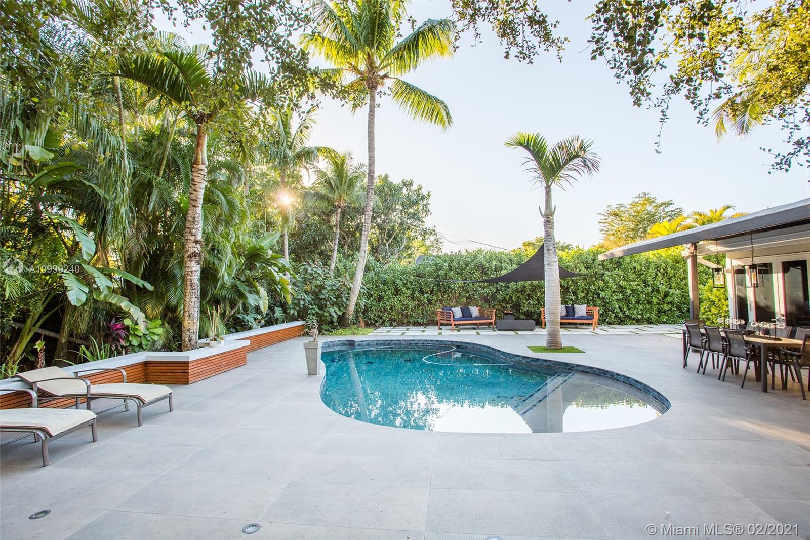 PINECREST CHIC OASIS. BEAUTIFULLY RENOVATED. FENCED LUSH LANDSCAPED YARD FOR COMPLETE PRIVACY. CONCRETE PAVERS, COVERED TERRACE, PLUS ADDITIONAL AWNING, SALT WATER POOL, WITH CUSTOM FINISHES AND UPGRADES OFFERING A TRANQUIL AMBIANCE IDEAL FOR ENTERTAINING, GOURMET KITCHEN WITH HIGH END APPLIANCES, WOLF HOOD, NEW COOK TOP, WINE COOLER, CERAMIC SINK, QUARTZ COUNTER TOPS ANDLIGHTED GLASS BACK SPLASH. MASTER SUITE HAS JACUZZI TUB, SHOWER & HIS/HERS SINK. HOME OFFERS ALARM SYSTEM, IMPACT WINDOWS, BOSE SURROUND SOUND IN FAMILY ROOM. GENEROUS CLOSETS AND BUILT-INS. PAVED CIRCULAR DRIVEWAY FOR 8+ CARS. POOL REFINISHED & SALT WATER SYSTEM LESS THAN 2 YRS. IDEAL LOCATION & "A+ SCHOOLS" A TRUE FAMILY HOME WITH ALMOST 200K WORTH OF IMPROVEMENTS. HURRY BEFORE IT'S GONE!