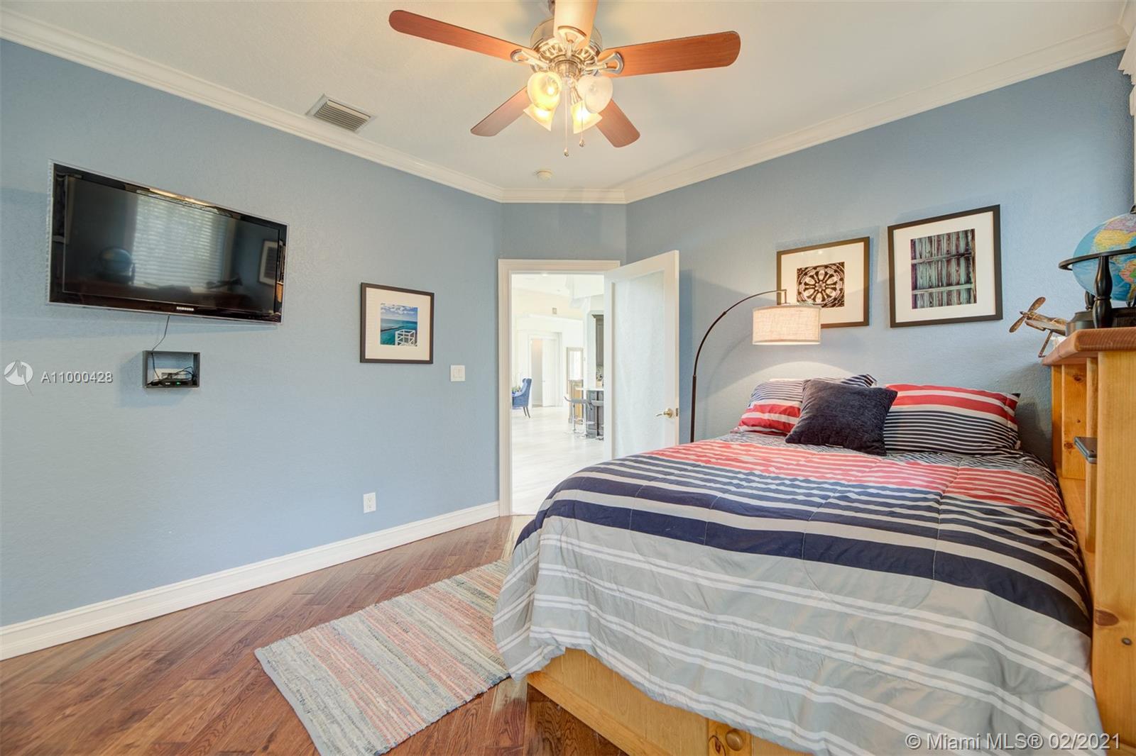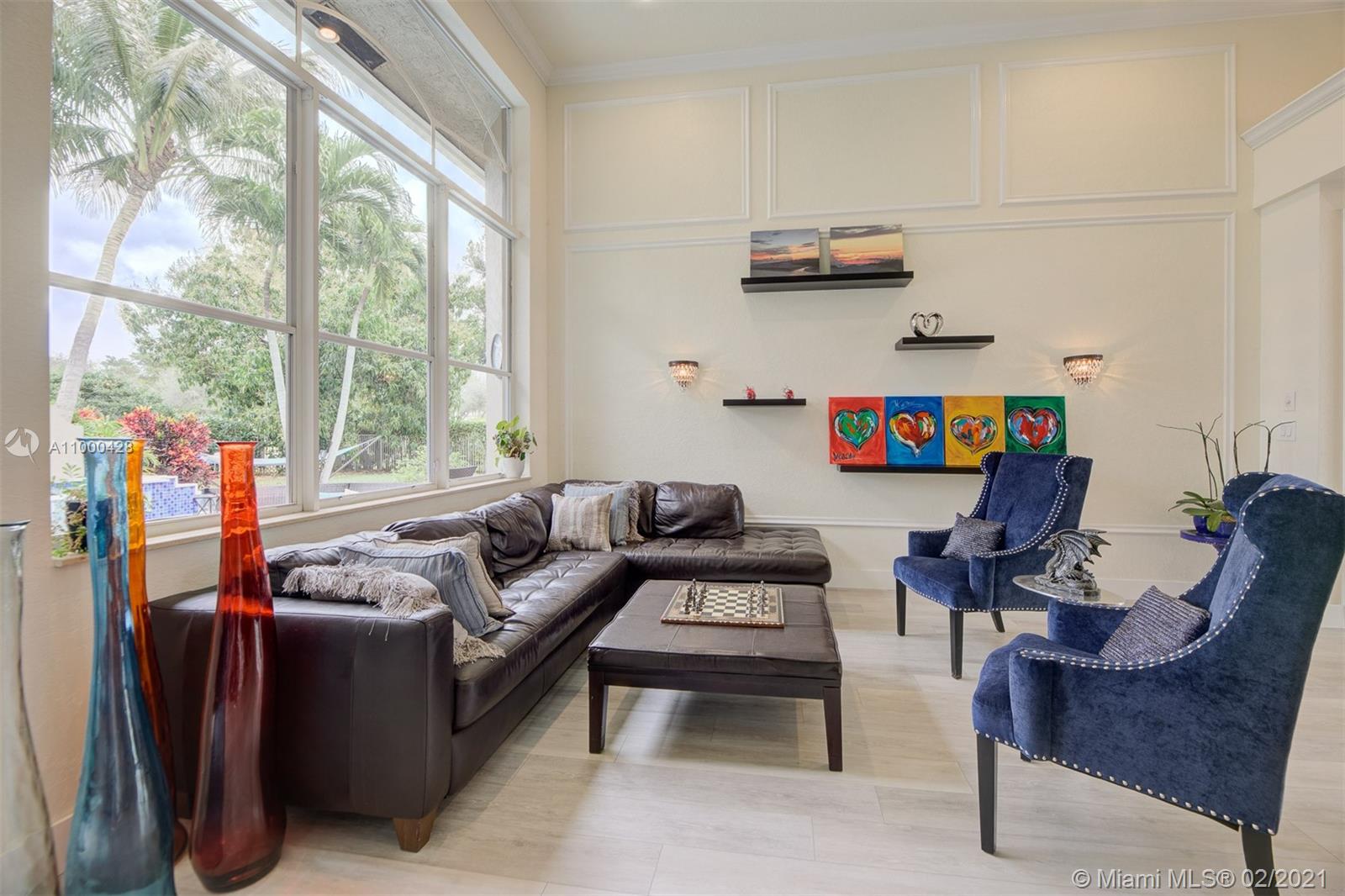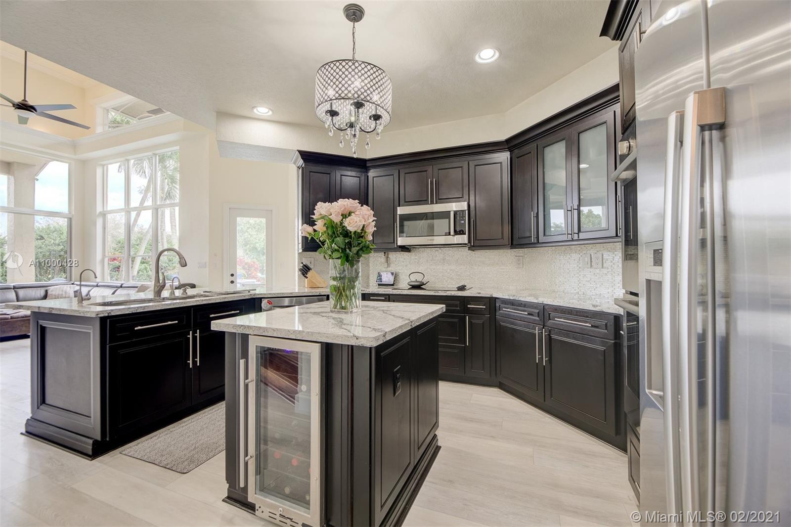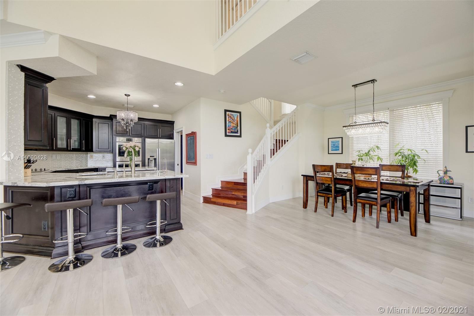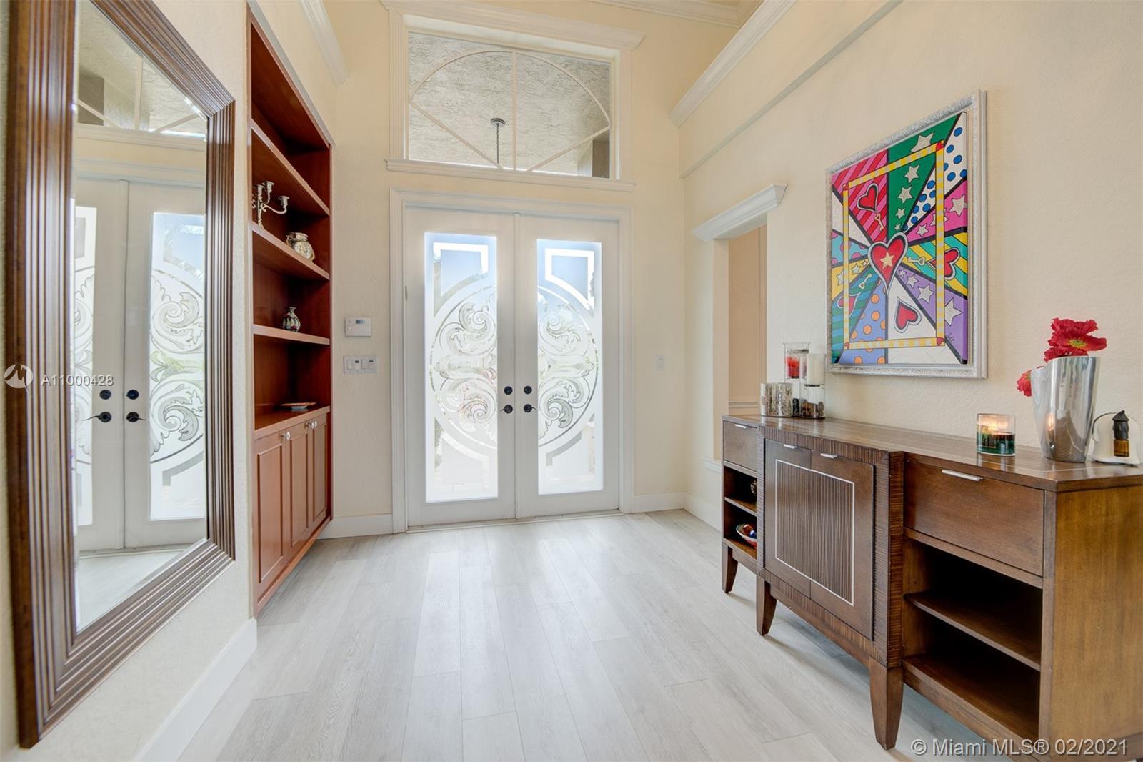 Step into this breathtaking, sophisticated designer 5 bedroom plus office 4 bath picture perfect estate home. Shows like a model, new luxury vinyl flooring, gourmet chefs kitchen with dark rich cabinetry, gorgeous quartz counter tops, brand new stainless appliances & custom backsplash. Freshly painted interior/exterior, elegant modern crown moulding & baseboards. Gorgeous new landscaping, tropical backyard oasis with newly surfaced pool & travertine patio, fruit trees plus a vegetable & herb garden. Master bedroom plus guest bedroom/bath on main level. 3 bedrooms & loft upstairs (one with ensuite bathroom) 2 other bedrooms share Jack & Jill bathroom. Guard Gated Lake Estates at Rolling Hills. A-Rated Davie Schools, close to airports, parks, beach, shops, restaurants & HardRock Hotel/Casino