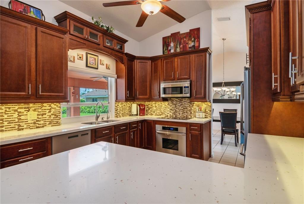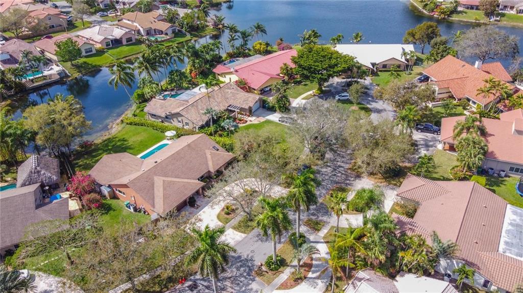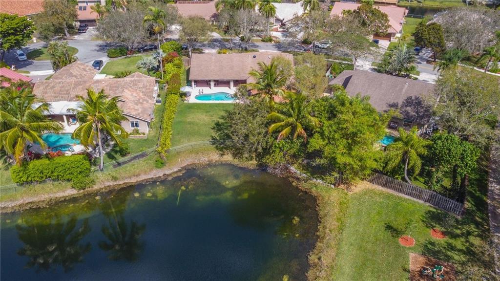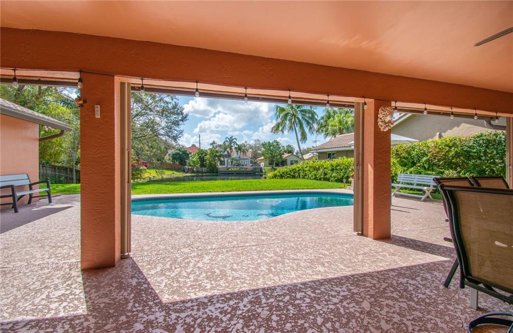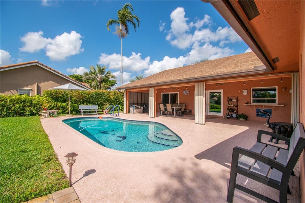 Spectacular Ranch House in the sought after neighborhood of Rock Creek with a private cul-de-sac location, large patio, pool and beautiful lake views! This lovely red brick 4 bedrooms, 3 baths and 2 car garage with circular driveway features over 14,000 SF Lot, offering plenty of space for entertaining outdoors and spacious covered patio which you can conveniently access from the master bedroom, family room or dining room, also offers a pass through window from the kitchen. Beautiful updated kitchen with wood cabinets, nice counters tops, tile backsplash & s/s appliances. Hurricane double glass entry doors. All windows & doors upgraded to HIGH IMPACT. Newer TRANE AC. Central vacuum, Laundry room , 3 zone sprinkler. Water softener system. Fully fenced yard. Low HOA and A+ rated schools!