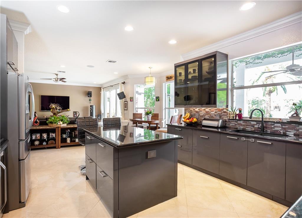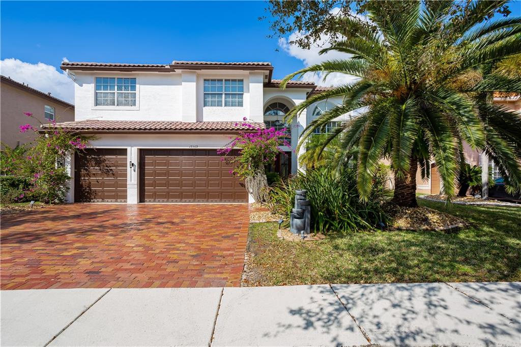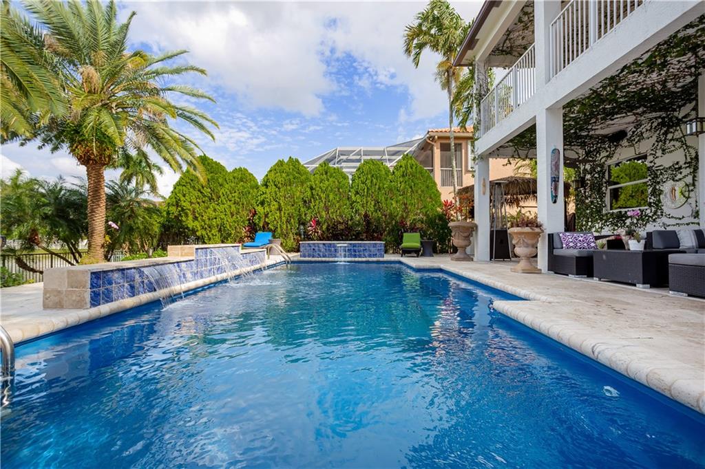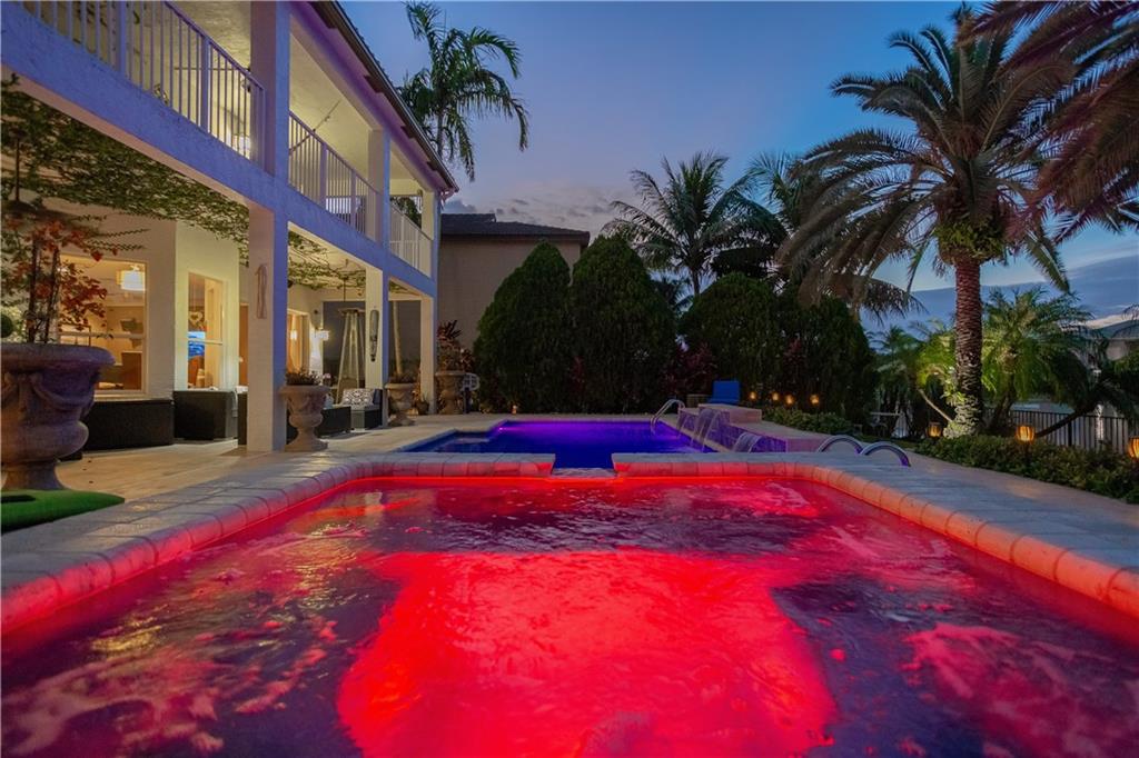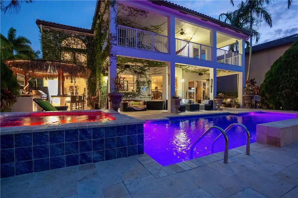 COMPLETELY UPGRADED 5/3 IN THE RESORT STYLE COMMUNITY OF SUNSET LAKES! THIS HOME HAS A SPECTACULAR BACKYARD WITH AN OVERSIZED MODERN SALTWATER POOL & SPA, TIKI HUT, COVERED SITTING AREA, OVERLOOKING THE LAKE. WHEN YOU WALK INSIDE THIS HOME YOU WILL NOTICE THE STUNNING FRONT DOORS, AND VOLUME CEILINGS. KITCHEN HAS BEEN UPGRADED WITH GRANITE COUNTERTOPS, MODERN CABINETRY, STAINLESS STEEL APPLIANCES & CENTER ISLAND. PRISTINE MARBLE FLOORING ON THE LOWER LEVEL AND WOOD LAMINATE FLOORING ON THE STAIRS & UPPER LEVEL. ONE FULL BEDROOM AND FULL BATH ON THE LOWER LEVEL, THIS BATH IS UPGRADED WITH BEAUTIFUL ONYX STONE THROUGHOUT. UPSTAIRS YOU HAVE FOUR ADDITIONAL BEDROOMS & A LOFT. THE SECOND BATH UPSTAIRS WAS RECENTLY UPGRADED MODERN STYLE. OVERSIZED MASTER W/ CUSTOM CLOSET & HUGE BALCONY!