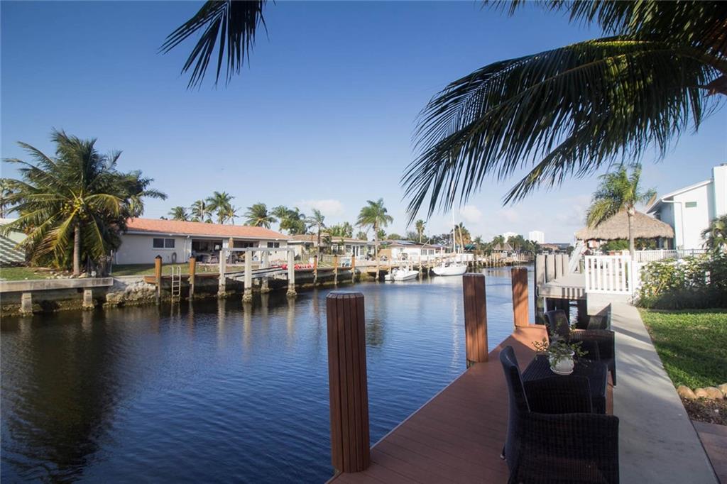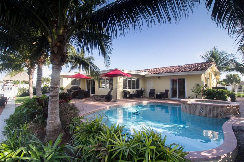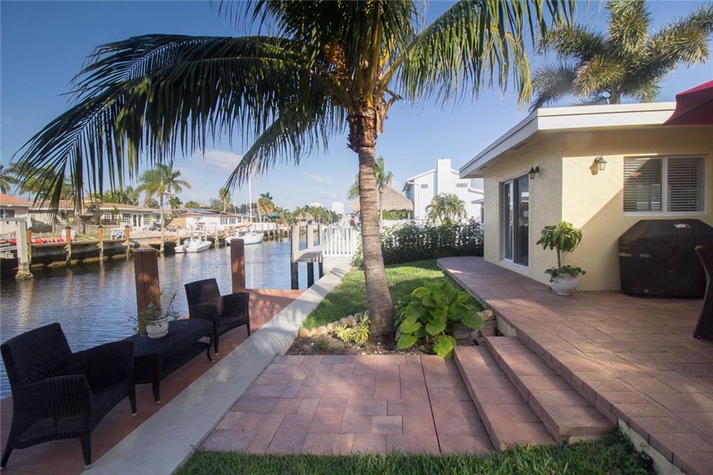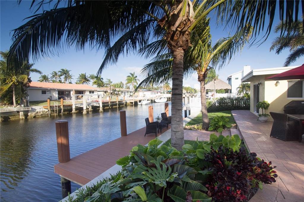 Private 75 ft waterfront home with 4 beds / 3 baths. Split Layout. Heated pool/spa. New seawall cap, pilings, and dock. No fixed bridges. Just Minutes to Hillsboro inlet. Impact windows and doors. Spacious floor plan. Large bedrooms. Master bedroom features: walk-in closets, ensuite bath with shower and separate tub. Tile floors throughout common areas, carpet in bedrooms. Home also has a great guest bedroom with private bath (currently setup as home office). Back yard is a wonderful oasis with large patio and spa featuring a waterfall to a free-form pool. Lush landscaping. Spacious family room and separate dining area. Wonderful natural light. Home has been properly maintained and cared for by current owners. Convenient location. Only minutes to beach, dining or downtown Fort Lauderdale.