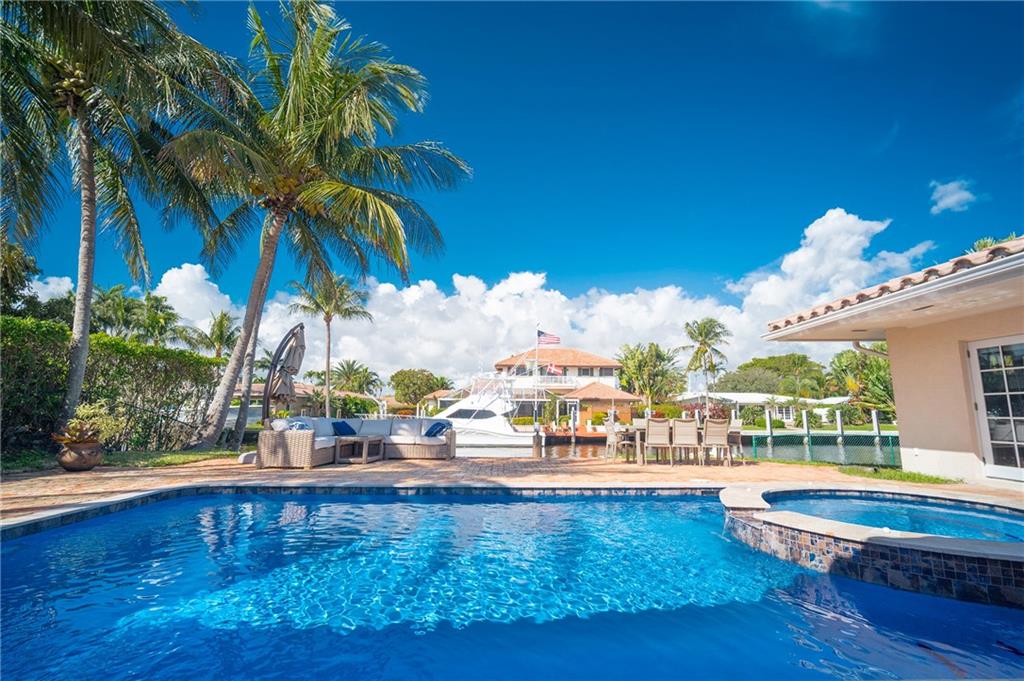 Wonderful opportunity to buy a waterfront 3BD/3BA home in The Landings situated on a quiet street with no fixed bridges. Features include beautiful oak floors in bedrooms, saturnia marble in living areas. French doors open to the pool and patio. The kitchen includes a Viking gas stove and newer appliances. Enjoy beautiful sunsets in your backyard with a saltwater pool and heated jacuzzi. The wide canal is protected from wakes and perfect for the avid boater, minutes from the Intracoastal.