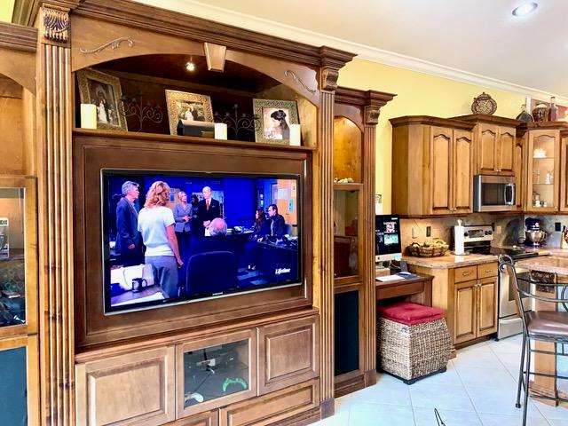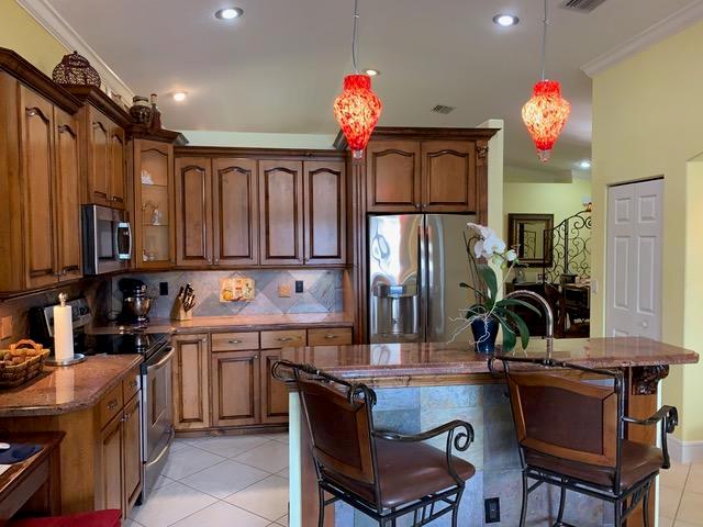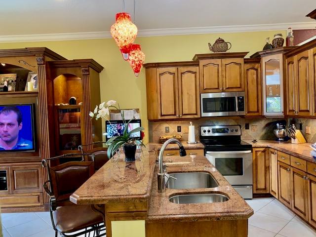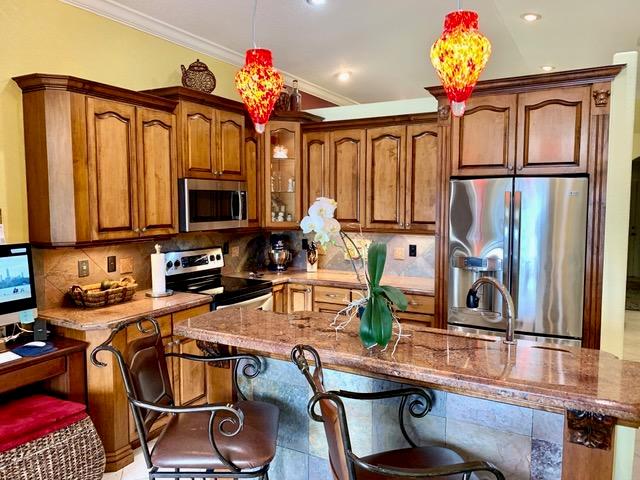 Recessed LED Lighting, Custom Oversized 36'' Solid Maple Wooden Cabinetry with Molding, Under cabinet lighting, Island kitchen lighting, Generator Hook Up at meter, Surround sound wiring in Family Room, Maple workstation, Maple Entertainment Center, GE Profile updated stainless steel appliances with GE Profile 29'' Counter depth French 3 Door Refrigerator, 2'' Granite countertops with Ogee edge, low maintenance slate backsplash and slate 1/2 wall at island, slow close cabinets, hammered pulls and knobs, Bianco Kitchen sink and Bianco Kitchen pullout faucet , marble bathrooms with custom vanities, updated faucet hardware, updated lighting fixtures in bathrooms, solid glass 5/8'' custom shower door, sit in area in shower with niche, crown molding, 4.5'' wooden baseboards. wood trim casings a