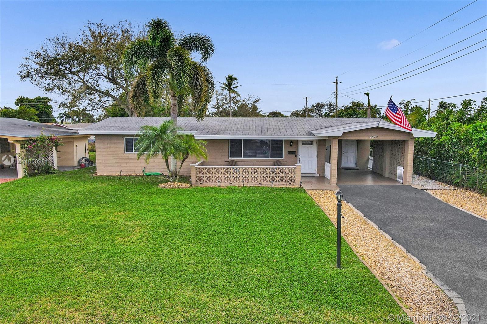 One of the most well kept and remodeled homes in the area. Foyer entrance, formal living room, dining room plus a huge family room, inside laundry room with added cabinets and countertops for extra storage, remodeled bath, beautifully remodeled eat in kitchen with granite countertops, snack bar, new built in microwave, stainless steel refrigerator, sink and garbage disposal, 2019 new front entrance door, back door and carport door all impact hurricane doors. 2019 exterior painted including shed, 2020 new exterior lighting, fenced yard, covered patio with ceiling fan, well manicured front and back yards, driveway extended for 4 car parking, plus carport. Automatic sprinkler system. A/C new in 2012. Hot water tank new in 2013. Roof replaced in 2008. hurricane shutters and new impact doors.
