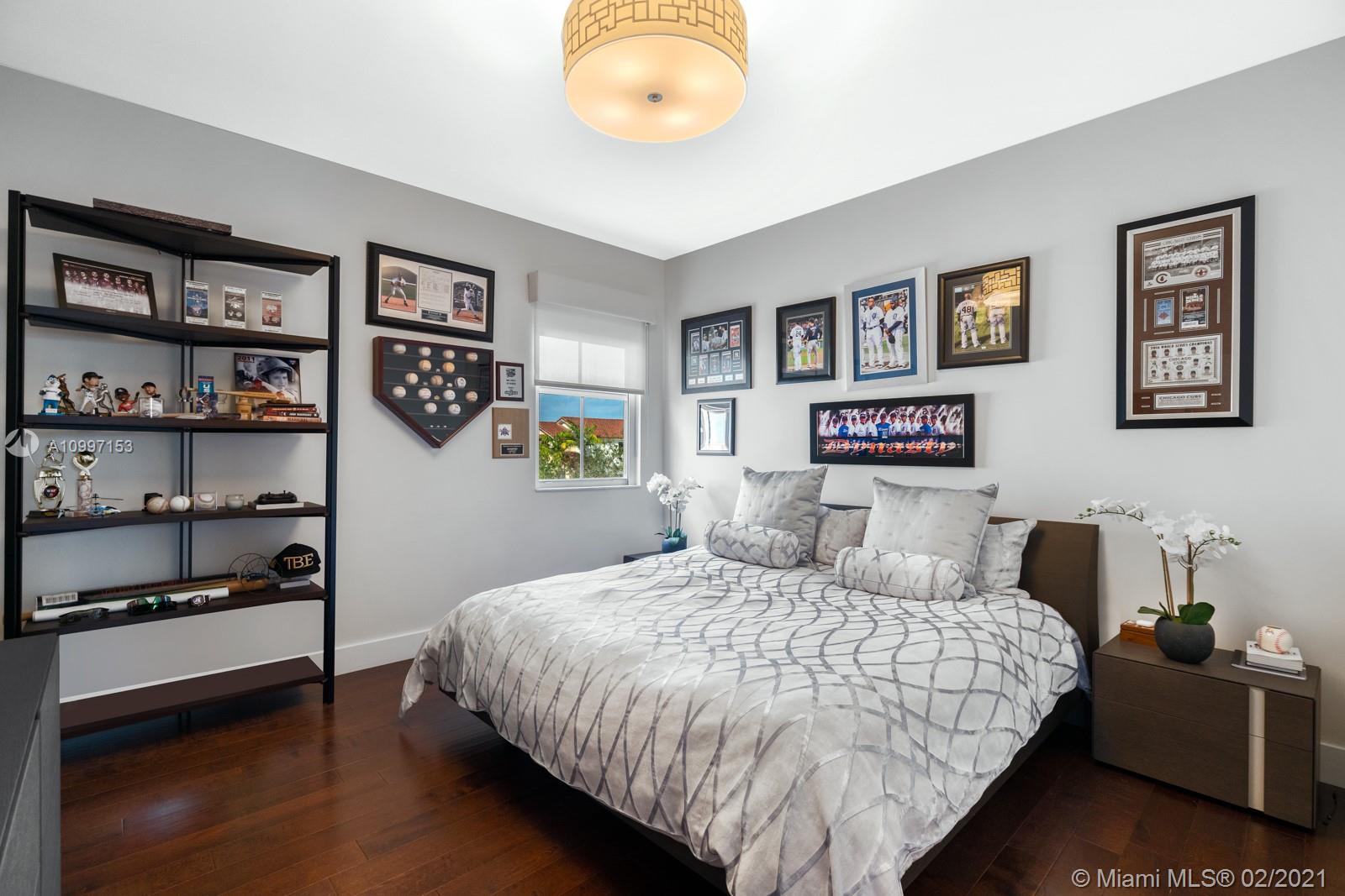 This luxurious contemporary waterfront Single-family home has been fully upgraded to create the wow factor. Built in 2014, this 5 bed/5 bath floor plan features double height entrance, high ceilings, large format porcelain tile floors in living areas, wood flooring in the second floors; modern floating stairs, exposed wine cellar, and fully upgraded 2 car garage.This spectacular backyard features an extended pergola with electrical shades, and an amazing bbq center island with teppanyaki grill & refrigerator built by LuxaPatio. This community offers a children's play area, fully equipped fitness center, clubhouse overlooking the community pool, saunas and the lake. Next to A+ School, in the desirable gated community Vintage Estates. At the city of Doral/Miami-Dade