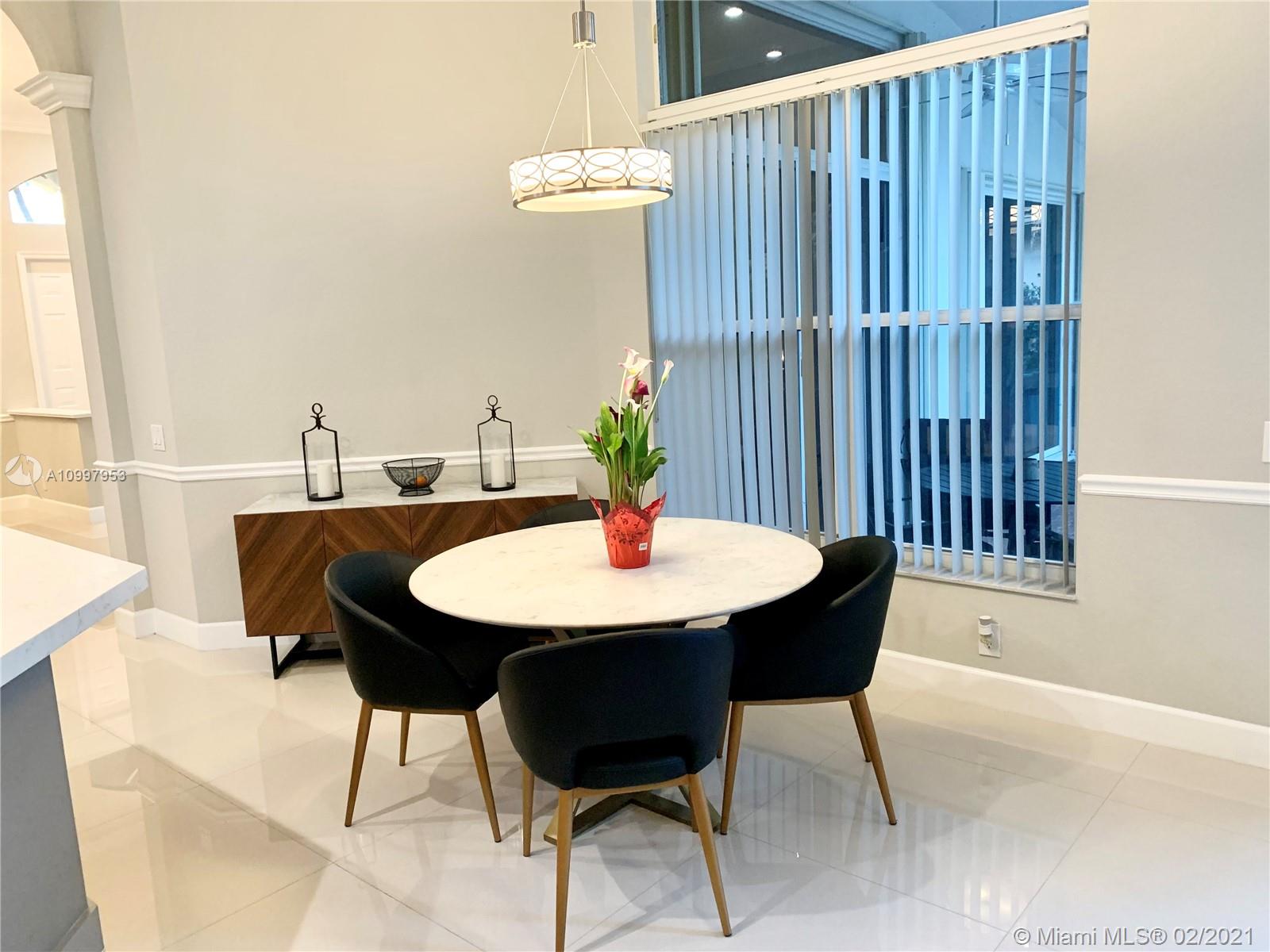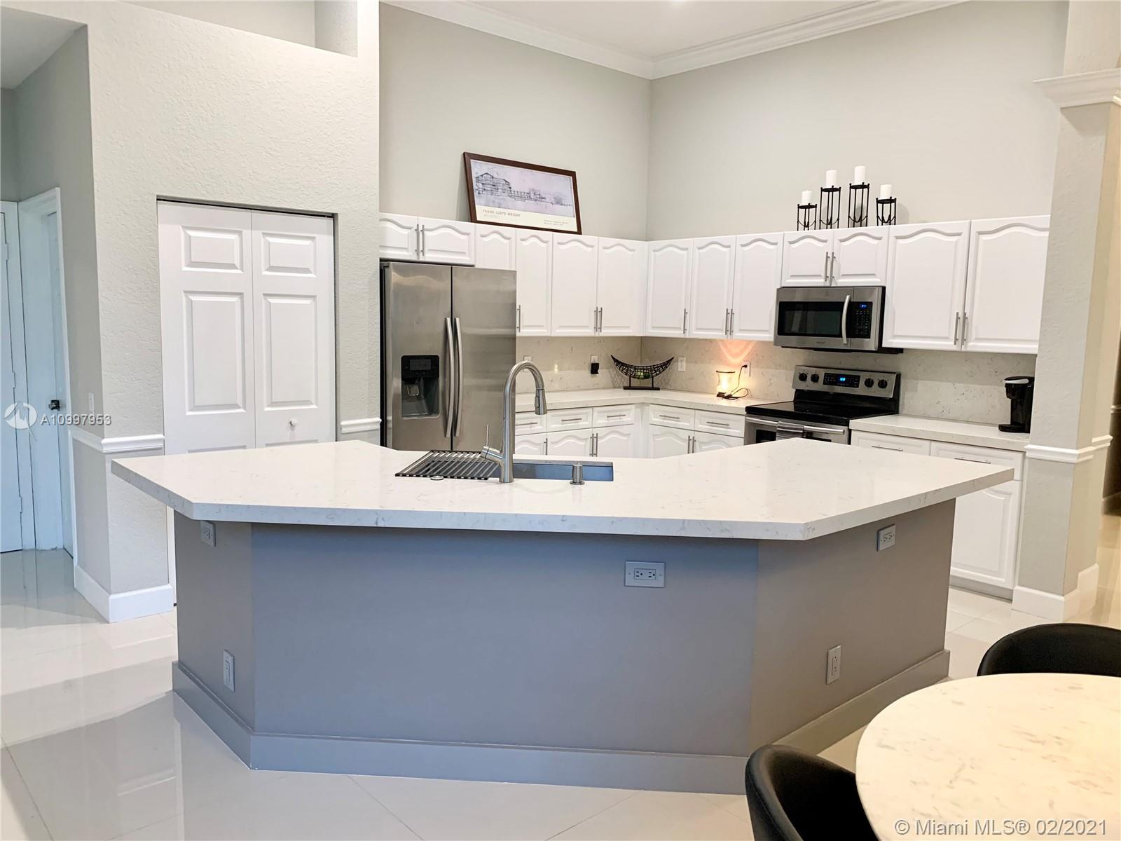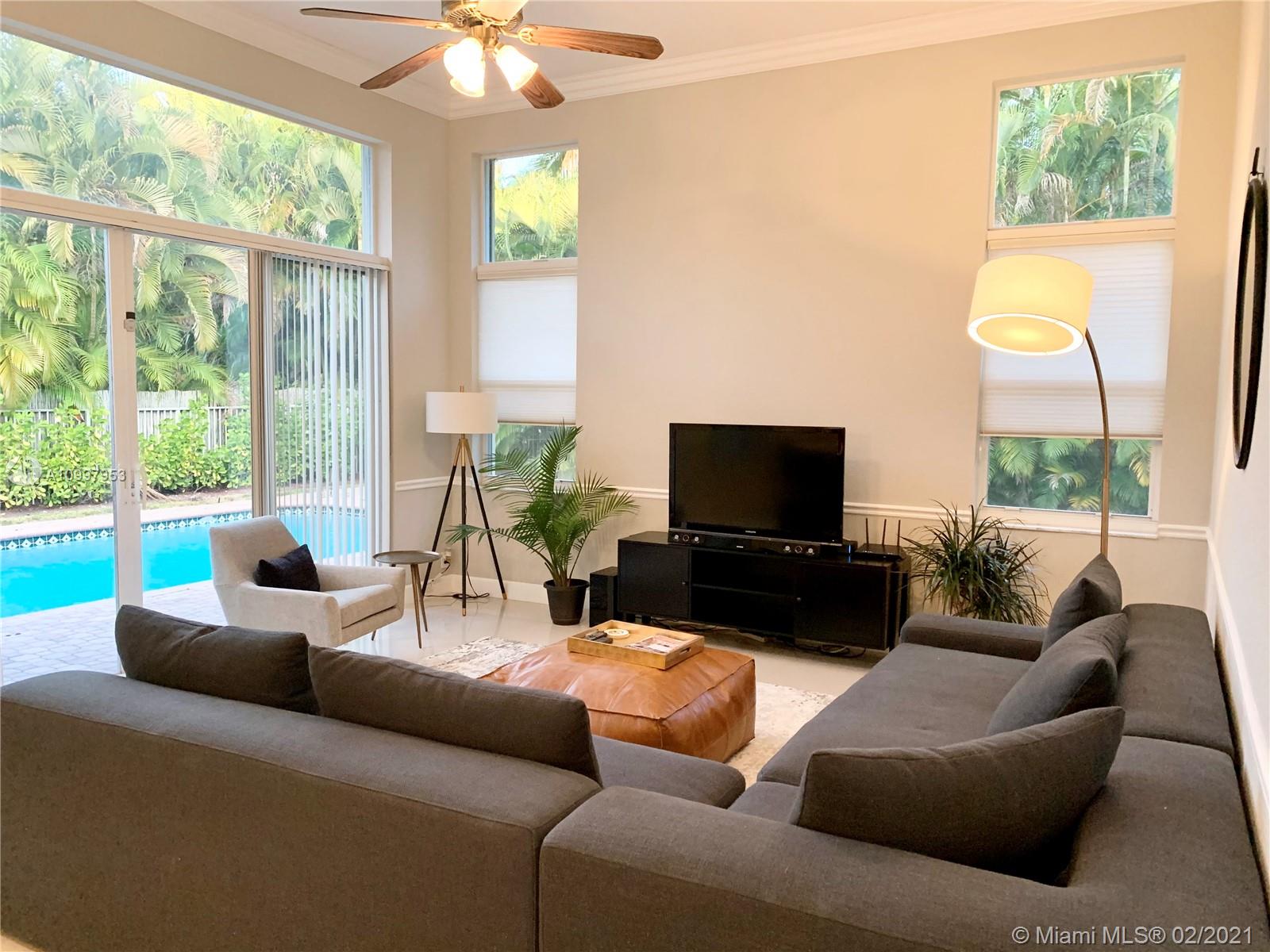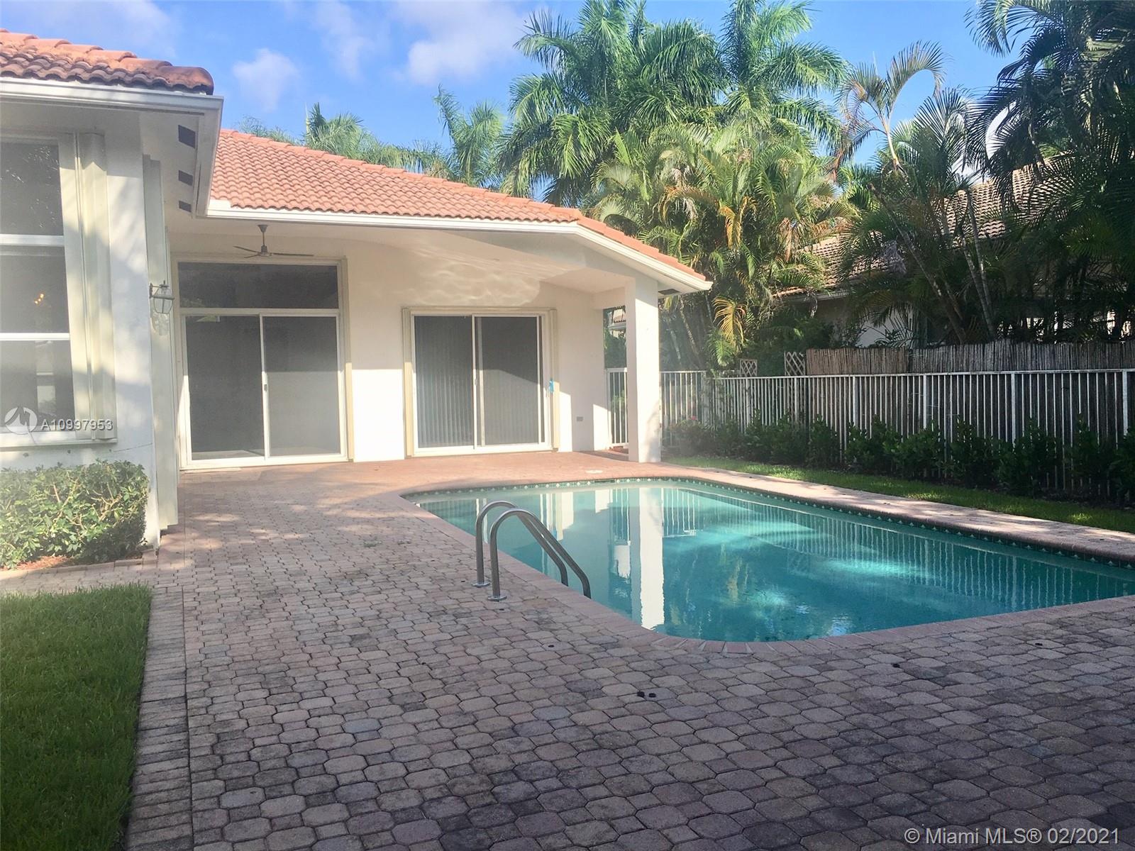 Beautiful home in Weston Hills, with spacious 1 story living, great pool in ample and very private backyard, tri-split bedroom design, 5th room is a den by the front door and next to the master bedroom, 2 big walk-in closets in the master bedroom. New porcelain floors throughout the whole house, new quartz counter top, completely remodeled cabana bathroom and guest bathroom, new shower in master bathroom, new toilets, tall ceilings, new LED ceiling lights, laundry room with sink; two year old stainless steel appliances. New diamondbrite in pool. Freshly painted. New accordion hurricane shutters. A must see!
