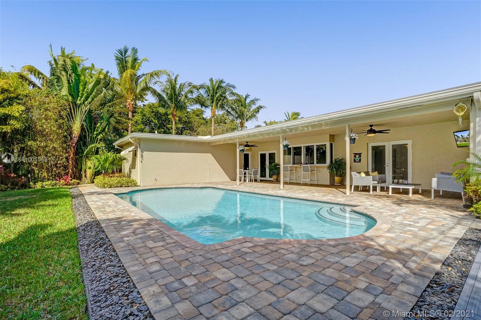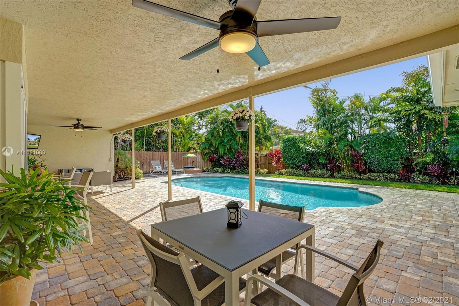 Move Right In! This fully renovated 3 bed, 2 bath home, sits on a large corner lot, that is beautifully landscaped. All windows and doors are impact. Spacious kitchen with real wood cabinetry, granite countertops and SS appliances. Kitchen features a large pass-through window, perfect for entertaining on the expansive, paver lanai. Enjoy the recently resurfaced, temperature-controlled pool all year around as you are surrounded by lush tropical foliage. All bedrooms feature newly installed floors, bathrooms are completely remodeled and closets in all bedrooms have custom shelving and ample storage, with the primary having a walk-in closet. The 2 car garage has Flow Wall storage system with additional roof racks, and a new HE washer and dryer. Live in Hollywood Hills! Wont last!