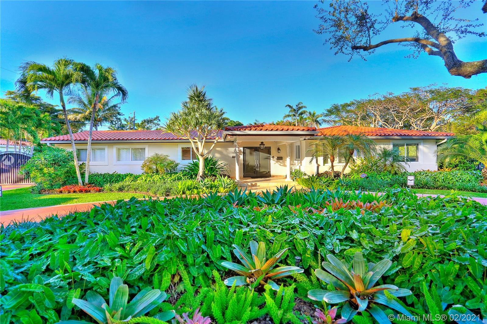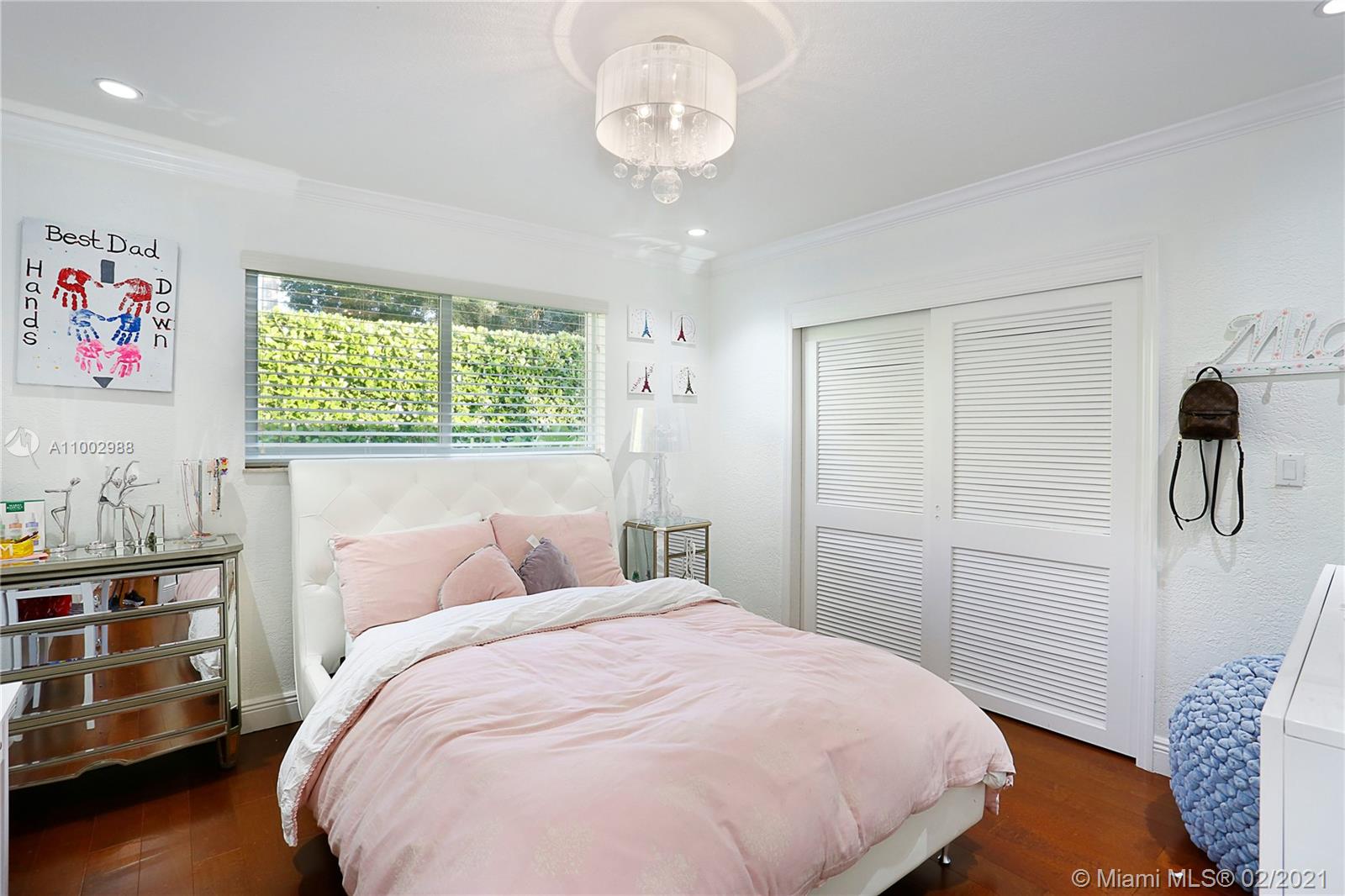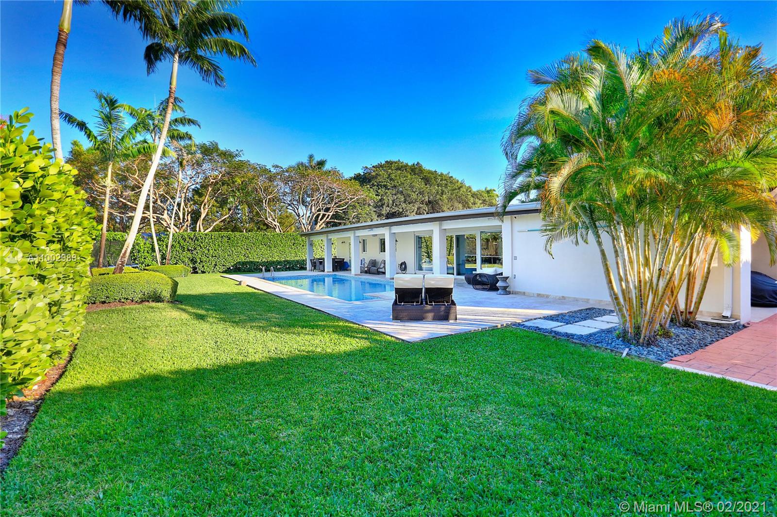Chic, modern and spacious ranch style house ready to move-in on a stunning lush 16,988 sq ft corner lot in splendid Pinecrest. An oversized driveway with oak trees welcomes you to an updated 5 bedroom/4 full bath + den in a flowy split floorplan. Attractive features: great energy and natural light flows throughout the house with warm hardwood floors, impact windows and doors, a gourmet kitchen with s/s appliances incl double oven, separate laundry room and two-car port. The Master suite and bath designed with privacy in mind. The bedroom and full bath quarters all great sizes. Den opens to living room and connects to a bathroom. The family room feels it's part of the gorgeous patio overlooking the pool thanks to its wall-to-wall sliding glass doors perfect for relaxing and entertaining.