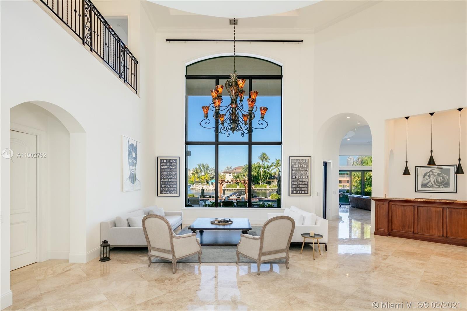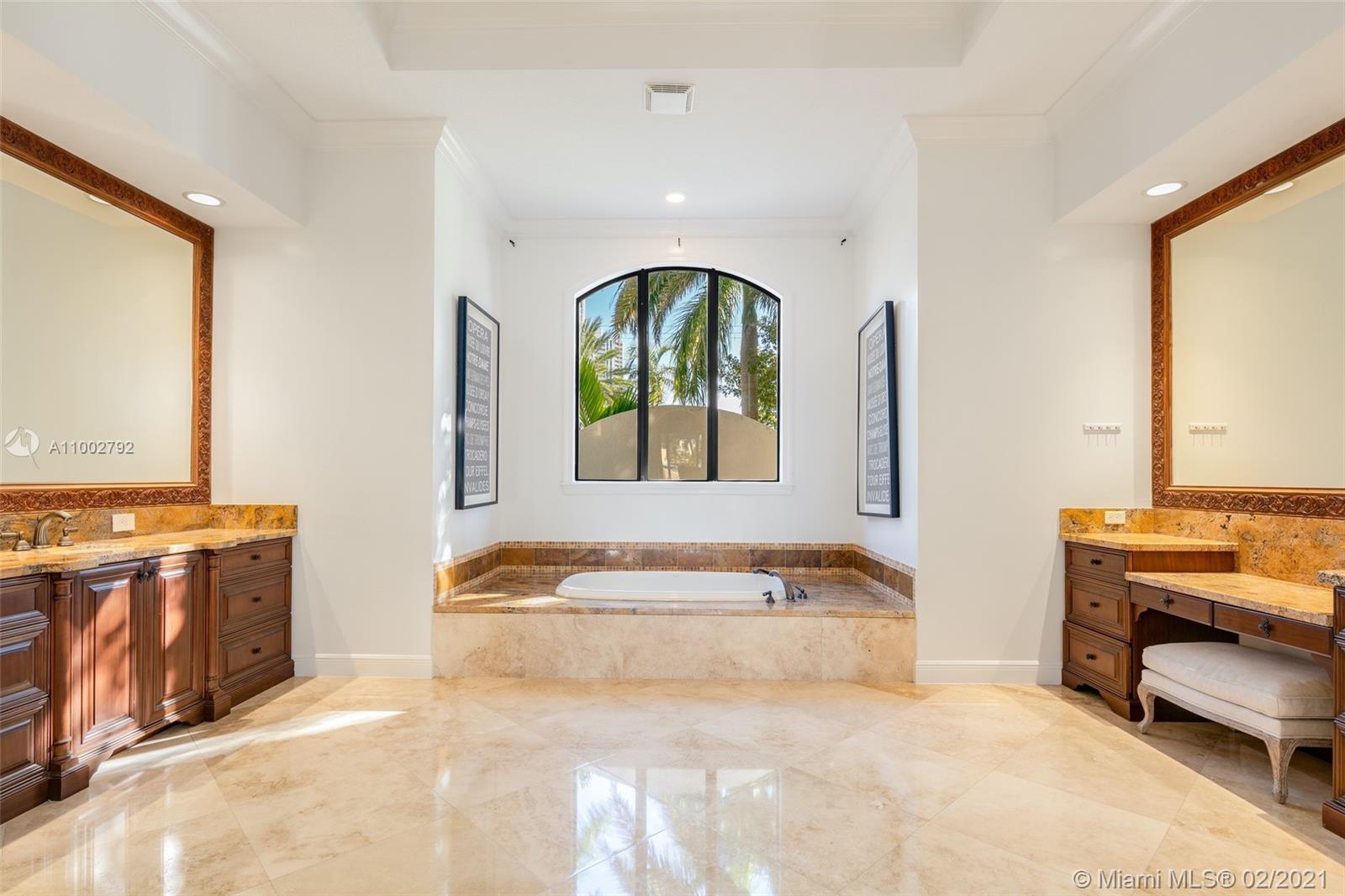 Two story waterfront residence with 90 ft. of deep water frontage. This home boasts 6 bedrooms, 6.5 bathrooms of the finest quality finishes throughout all 7,000+ sq. ft. With two master suites, soaring ceilings, Saturnia marble and wood flooring, extensive landscaping, large terrace overlooking the water, heated pool and spa and deeded boat dockage, you will be proud to call this your home. Gourmet kitchen with Brazilian granite countertops and handmade wood cabinetry, top-of-the-line Wolf and Sub-Zero appliances. First floor master features a water closet, his/hers walk-in closets, and more.