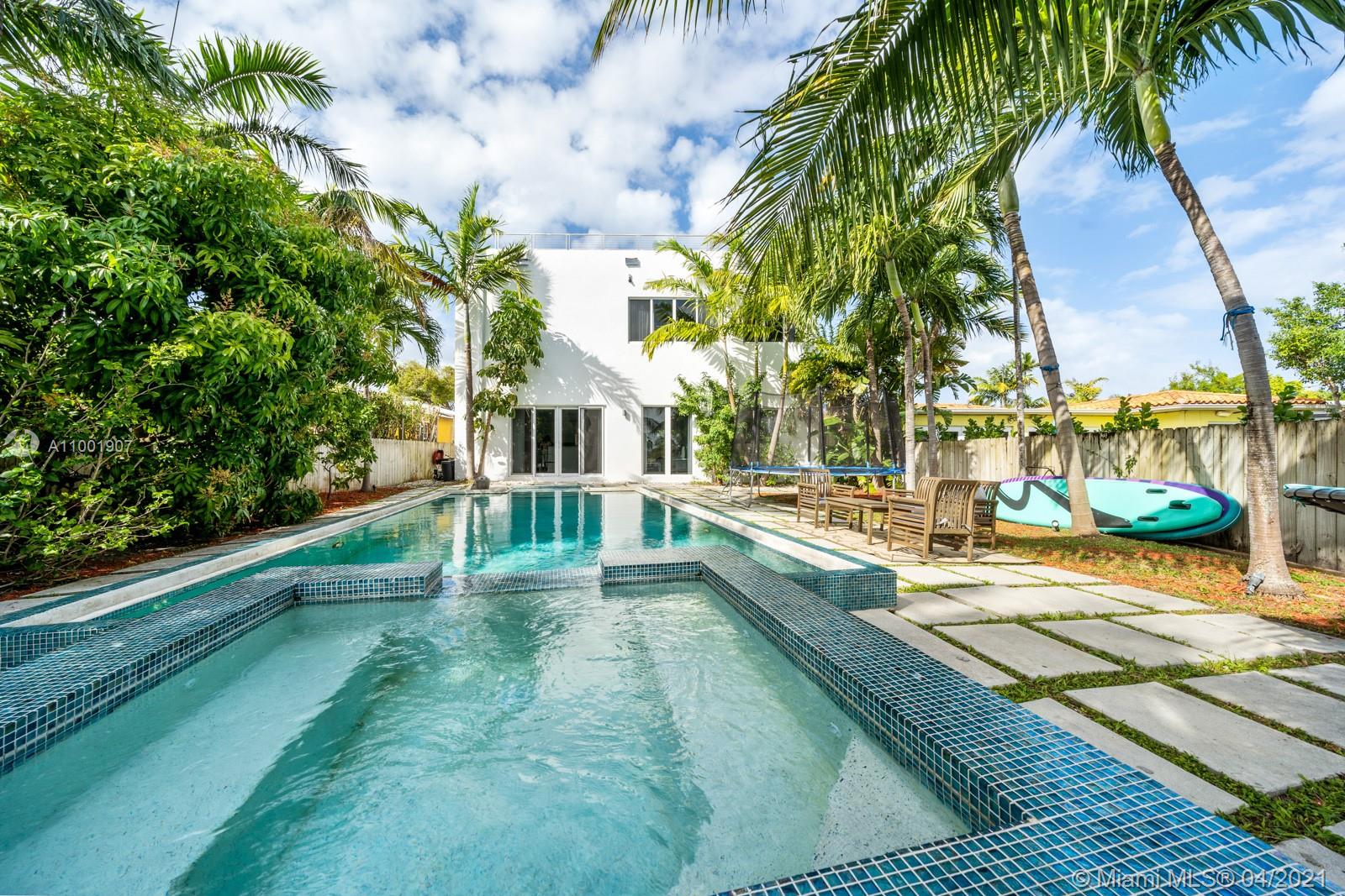 Extraordinary two story waterfront home built in 2015 with the largest rooftop terrace on the Island. Enjoy sunrises and sunsets on this 360 breathtaking panoramic views of Miami waters and Skyline. This 4 bed/2.5 bath home, features high ceilings and endless natural light upon entry, high-impact windows and doors, modern kitchen w/ Quartz counter tops and porcelain floors throughout. MASSIVE LOFT STYLE master suite w/ 1,600sf+ located on the entire 2nd floor, water views on both sides, walk in closet and private terrace. Backyard surrounded by Palm trees, pool, hot tub and a beach play area. The boaters paradise on open waters w/ 50 ft of water frontage, new seawall, dock, boat lift and room for jet skies. Minutes to the beach, 5 star restaurants and shopping. Total area 5,154 sf.