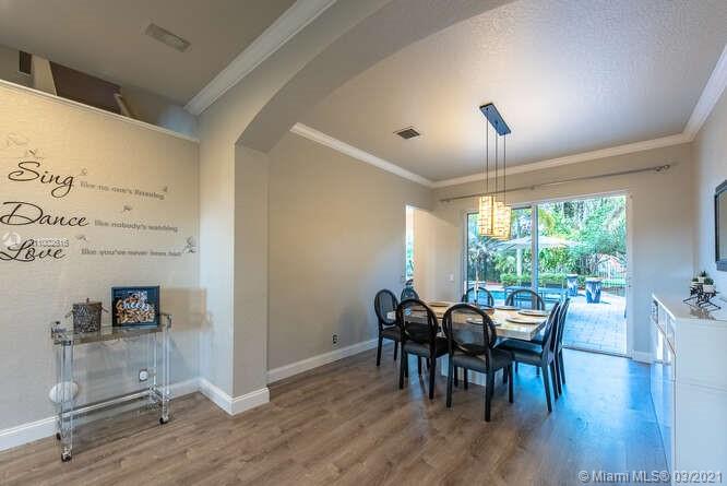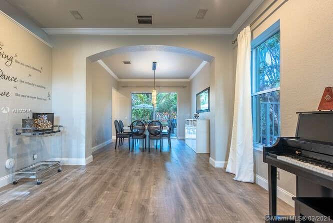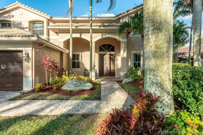 Outstanding Weston Pool Home! Move-in ready with new wood floors throughout. Open floor plan features formal living, dining, and family room. The kitchen is a chef's delight with an island and eat-in area. Super light and bright. The backyard is a tropical paradise with a spa pool and fountains flowing giving a Zen experience in your own home. Upstairs landing has an open area for work or play space. The expansive master bedroom has a separate room to create a yoga room, office or nursery. Double walk-in closets with custom built-in storage. This home is perfect for a work at home environment or a growing family. Great Savanna Community with two gated entries. Resort-style community pool and club house. Enjoy the Florida lifestyle!
