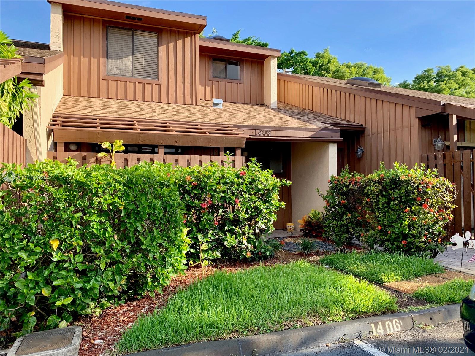 Priced to sell !This Exclusive 2 Bed 1 1/2 Bath Tropical Oasis!! 2 private terraces, 2 parking spaces in front. Gated community.Beautiful high ceilings adorned with a skylight, filling it with sunlight and happiness. The dining/ living room with a sliding door leading out to an ample front patio. The kitchen is very spacious with a breakfast area and sliding glass doors lead out to an open back patio. LOW Association fees, common area maintenance and pest control included. Easy to show. Association approval required (2-3 weeks) 1 Year Rental Restriction. 1 pet allowed under 30 lbs. Near Hollywood cafes, entertainment, Hollywood Beach, shops, golf courses, marina & Ft. Lauderdale Airport.