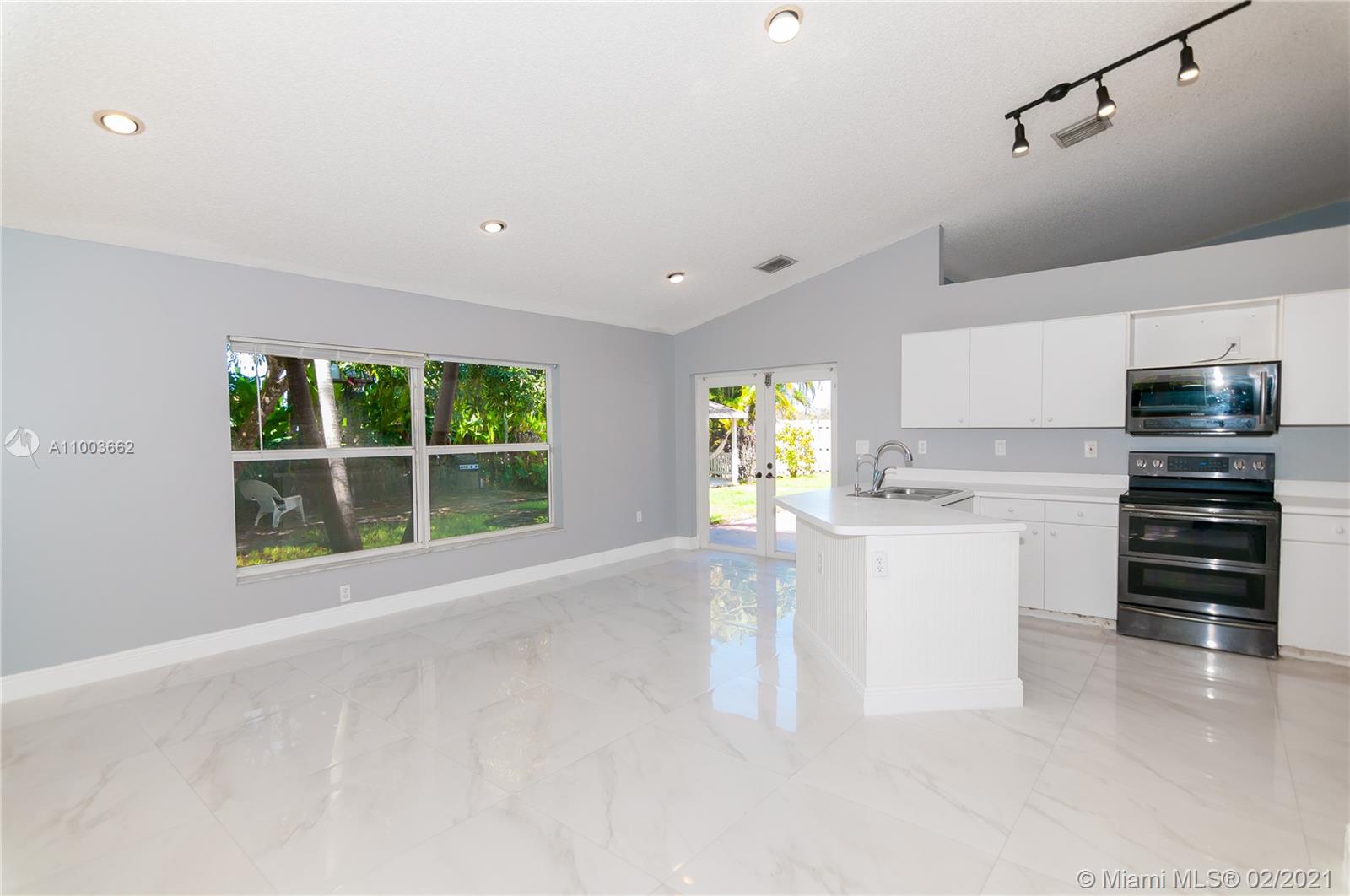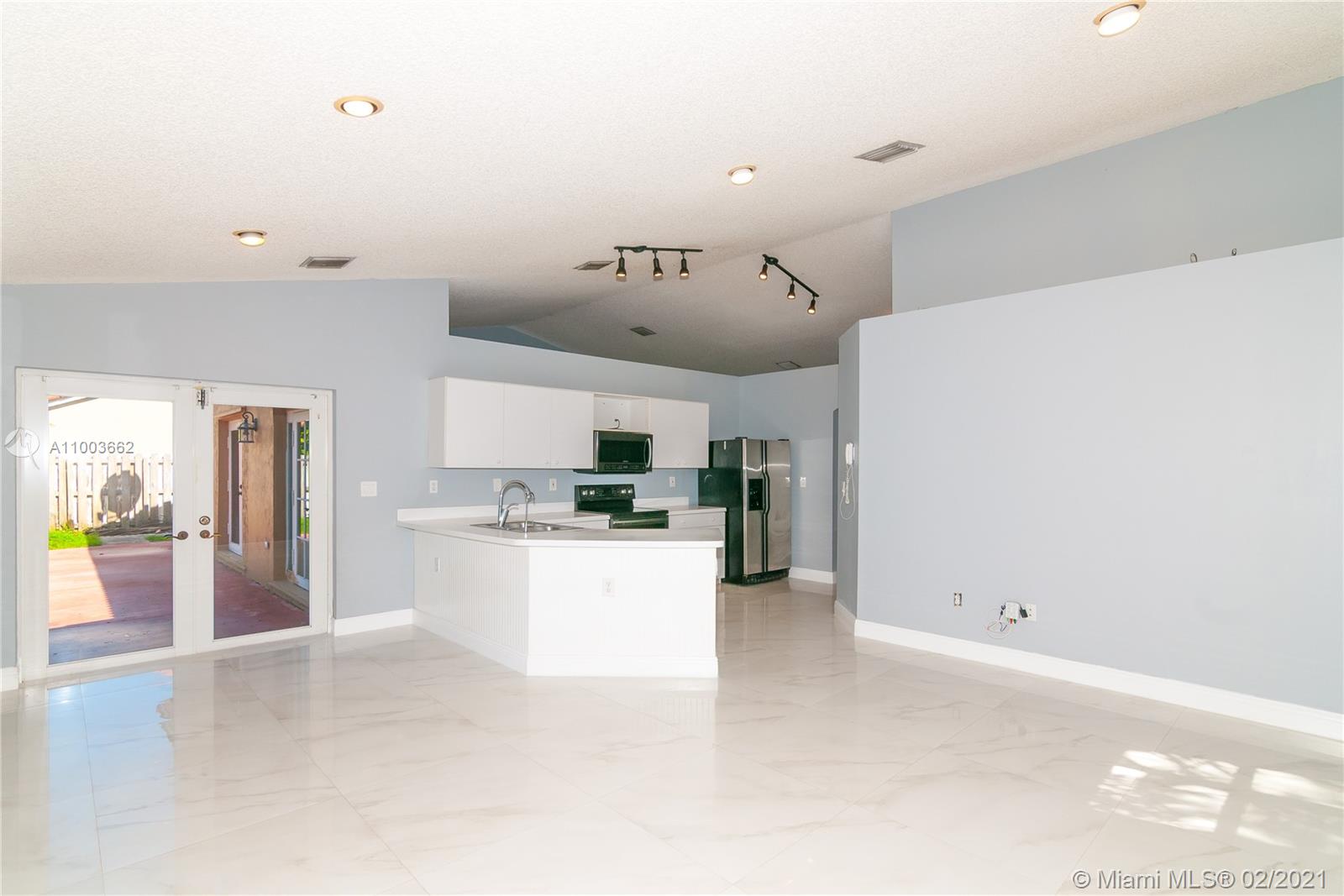 Lovely and spacious 3 bedroom, 2 bathroom lakefront home on oversized lot in highly sought after Flamingo Estates Trilogy in Miramar. Light and bright open floor plan featuring porcelain floors throughout, stainless steel appliances, remodeled bathrooms, french doors that open to breathtaking lakefront views. Oversized lot with gazebo, perfect for entertaining. Located next to a park with playground, baseball, basketball, tennis and vollyball courts. Very low HOA - only $62/month.