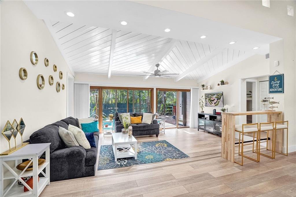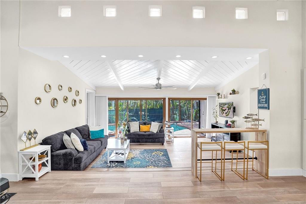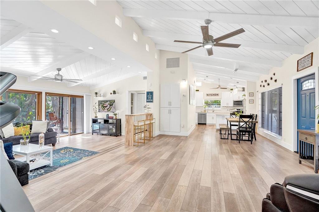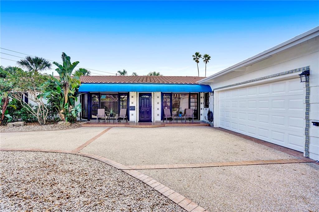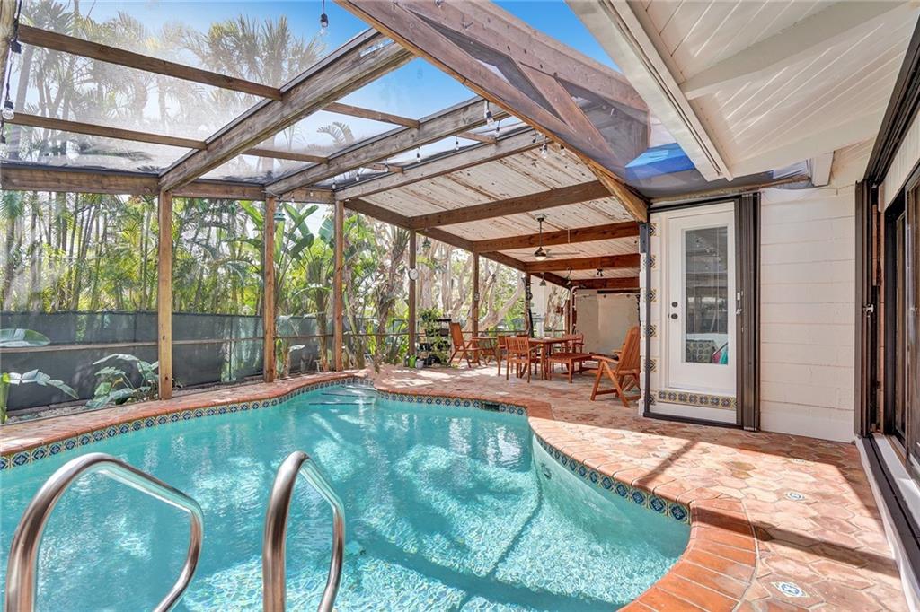 Tranquil Oasis in Sought after Rio Vista. Completely updated and renovated in 2020. Gorgeous open floor plan with high exposed wood beamed ceilings, cabana bath, private outdoor courtyard cafe with brick patio. A resort like feel is evident with the breezy landscaping and outdoor saltwater pool system equipped with solar heater and electric heat pump system that you can enjoy on the spacious patio area with an outdoor kitchen. Unique to the neighborhood ranch-style home with 3 bedrooms, 3 baths and a 2 car garage, Located on a rarely available corner double lot! All underground sewer piping replaced in 2019. Tented for termites in 2020 with transferable warranty. This is a beauty!!! Bring all offers.