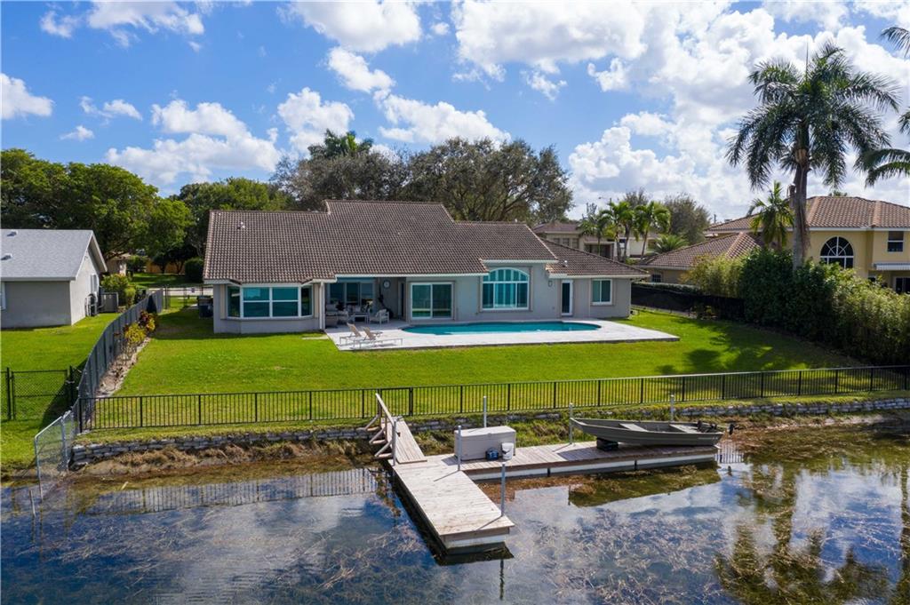 A truly remarkable home with one of the best waterfront lake views in Davie- This completely renovated pool home is located in the Ridgeview Lake Estates community, just south of 595 off of Nob Hill. The home has 3 bedrooms/ den, and 2 and 1/2 baths. The extensive waterfront view can be seen from the entire home, the property is completely fenced in, has recently added a dock, and features an open oversized pool. The house boasts a newer roof, impact windows, bathrooms, lighting fixtures, just to name a few. This home is truly a property you can move right in to with nothing to do.