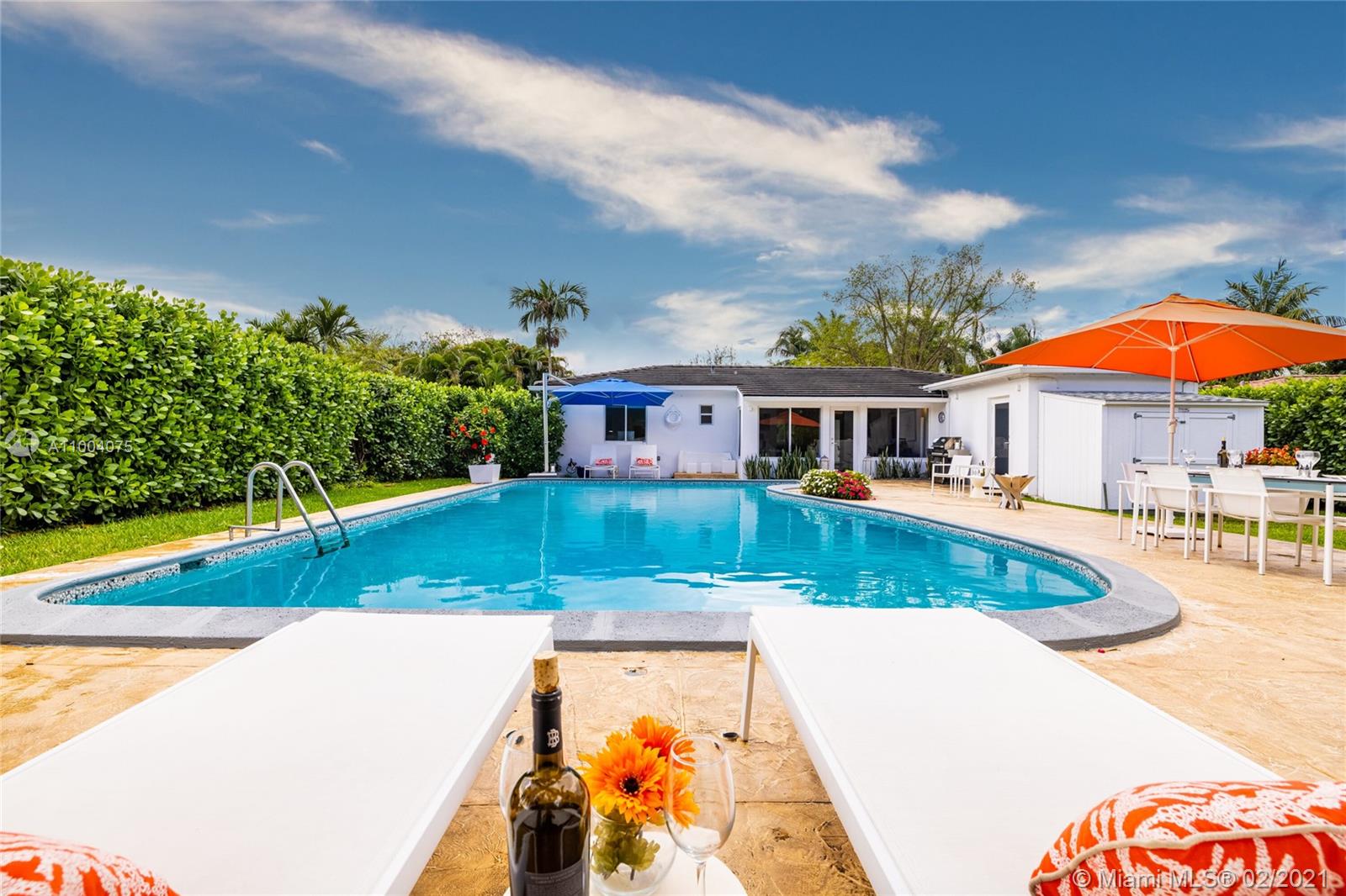 Welcome to Villa Sunset! Spectacular living in this completely updated, bright, light, lushly-landscaped mid-century modern pool home with such a resort-like feel, you’ll never want to leave. Chic and modern with formal living flowing to the spacious, vaulted media room overlooking a grand entertainment plaza with glistening ultra-deep 40’x25’ heated pool. Jump in and make a splash! Great space to entertain, grill or chill. Inside, enjoy formal dining and updated kitchen with beautiful marble countertops. Extra privacy in the west wing master suite retreat with doors to the rear gardens, plus two en-suite guest rooms in the east wing. Timeless luxe finishes and updates galore: newer roof, impact windows-doors, electric, plumbing, AC. Oh, did we mention the magical Instagram-ready sunsets?
