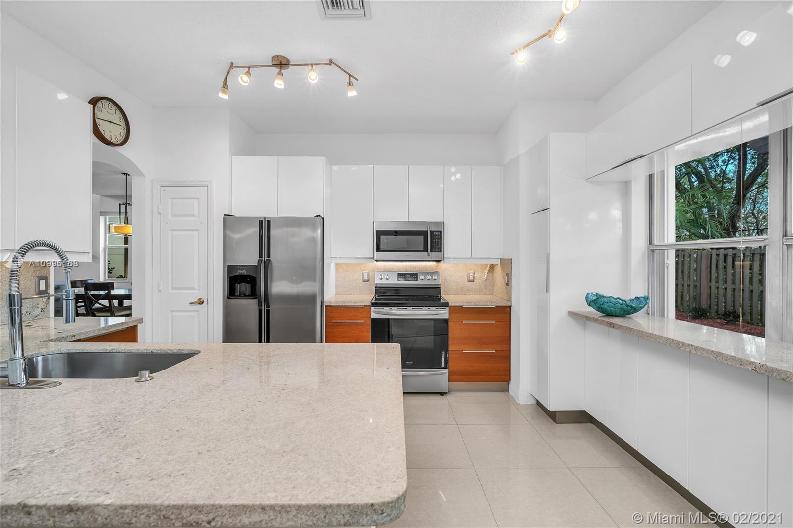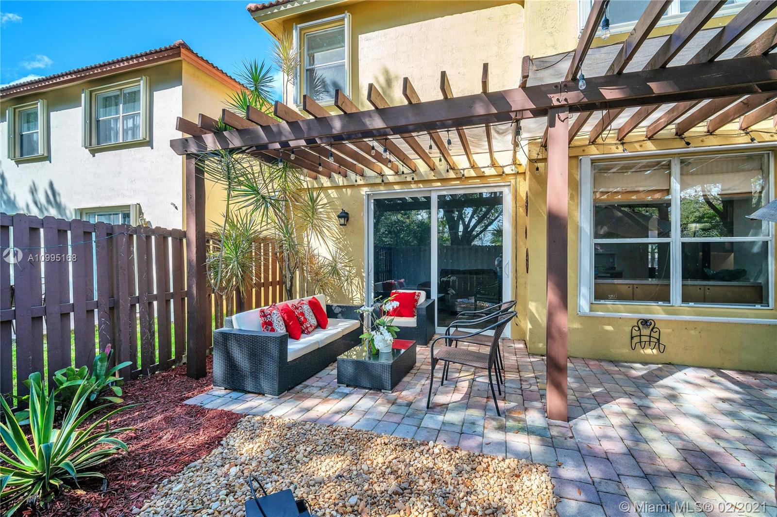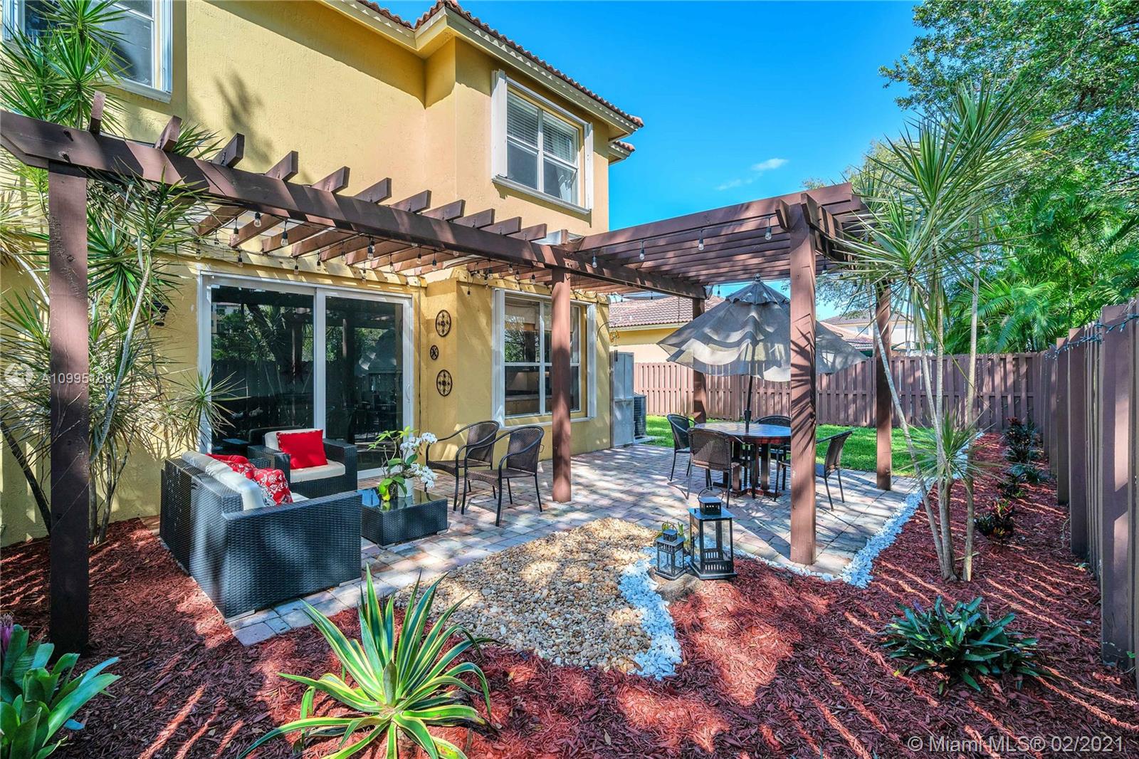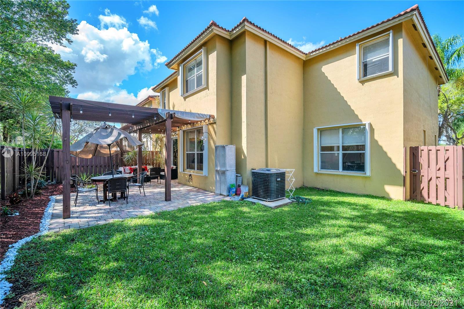 Beautiful Single Home, 4 bedrooms, 2 and half Bathrooms. Neutral Painting throughout the home. Beautiful remodelled Kitchen with Stainless Steel Appliances. Completely renovated baths w/ Marble floors, walls & granite/onyx countertops with wood vanities. Great Patio for entertainment with wood Pergola attached to the house. Renovated garage with lots of storage. Close to Shopping Plazas, restaurants and highways. Gated community & Security patrol. Great location, easy access to highways and Schools. School bus enters the community to pick up and drop off.