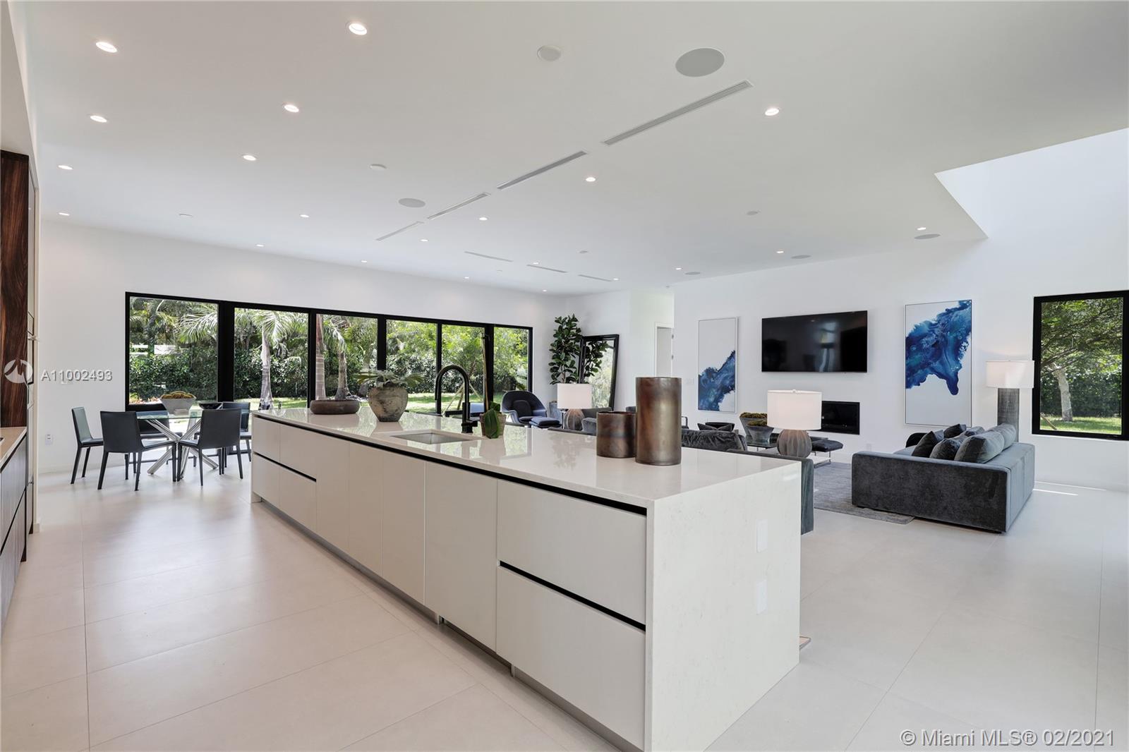 Stunning! This modern masterpiece is crafted with European-style finishes. Featuring an architectural glass facade on both the North and Southside of the home; Uniquely designed with a focus on an open concept. Custom entertainment style kitchen includes Wolf & SubZero appliances, oversized pantry, and family room with access to the pool/spa. Six of the seven bedrooms are ensuite with closets. The corner master suite includes a royal shower, his/her closets, dual vanities, a balcony, and a private outdoor staircase. Additional particulars- Contemporary glass wine room, summer kitchen, and 2 car garage. Flood zone X. Porcelain floors throughout. Just under 9000 total sqft. Located on a private quiet street close to Pinecrest's award-winning schools just 25 minutes to the MIA airport!