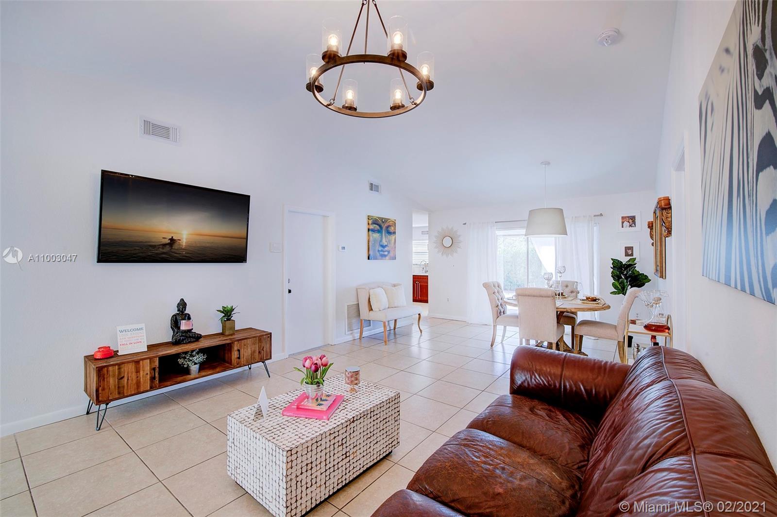 Nestled between the Dade and Broward County line, this 3/2 home with garage. This newly painted exterior and interior. Paved Driveway and backyard. Six-foot hedges for privacy. The obscured double doors welcome you to the popcorn-free vaulted ceilings. The open concept lends itself to holding conversations from the living room to the dining room area. White quartz countertops and backsplash that draw the light from the sliding glass doors and new windows. Updated kitchen cabinets and stainless-steel appliances. Porcelain tiles throughout the house and newly painted white walls. laminate floors in the bedrooms. The backyard is ready for hosting barbecues under the shade of the patio porch. Quick access to major highways, minutes from The Shops at Pembroke. This home is move-in ready!