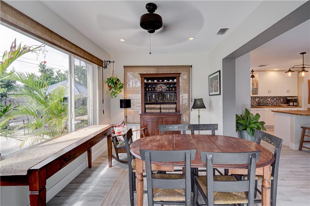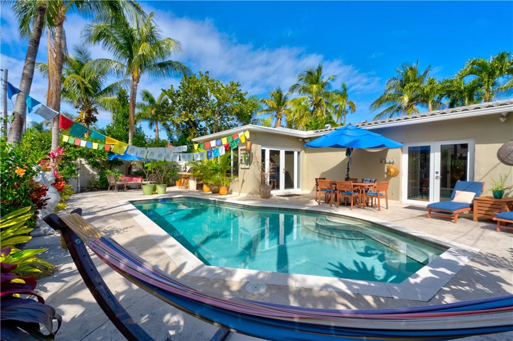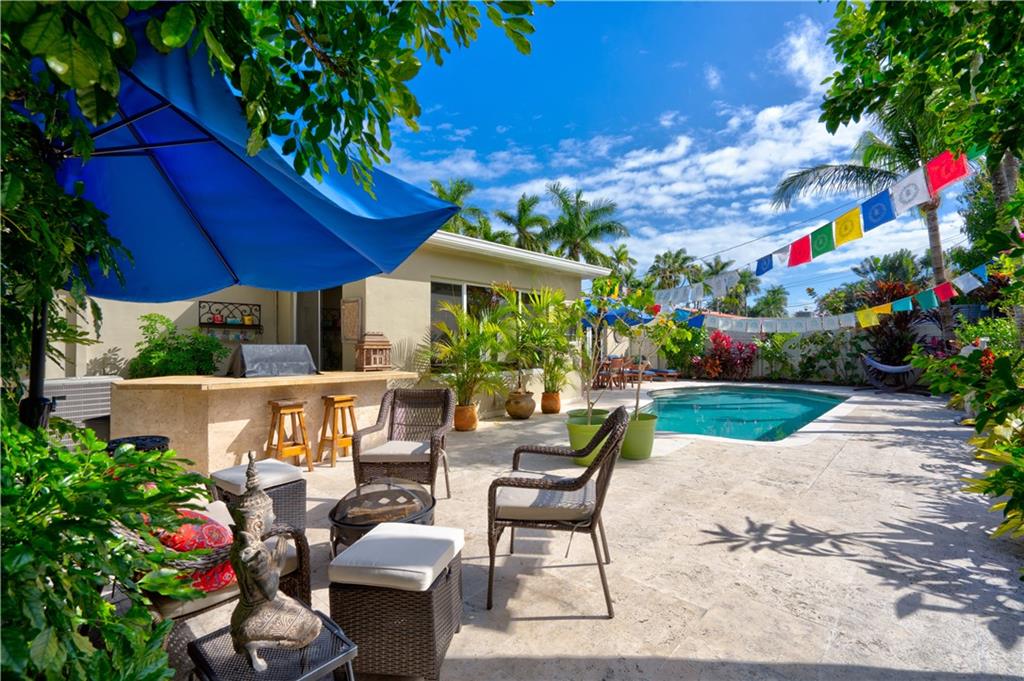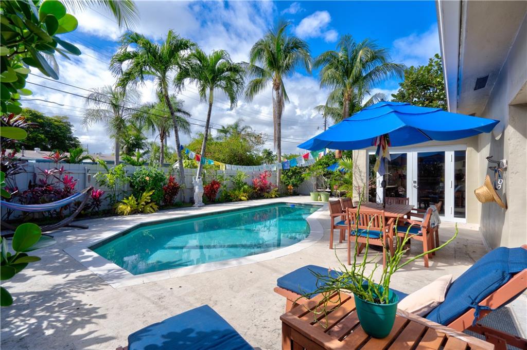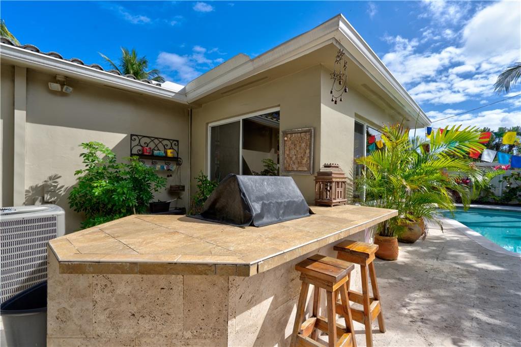 Ultimate indoor/outdoor living with South Florida vibe! Lovely upgraded 3bedroom/2bath home minutes from Hollywood beach but still in a cozy quiet neighborhood. Ceramic tile floors throughout an open concept living rm/dining area w/large kitchen w/loads of cabinets, pull out drawers + butcher block countertops. Recessed lights w/dimmers, ceiling fans throughout + impact windows all create that bright open feel. Bedrooms have black out shades and bathrooms have been newly retiled. One bedroom presently is perfect home/school work space. Indoor laundry room w/extra closet hosting tankless gas water heater + extra storage. Tropical paradise yard affords heated pool w/colored lights. Outdoor Kitchen w/mini fridge + gas bbq, all enhance this friendly gathering spot 4 family + friends to enjoy