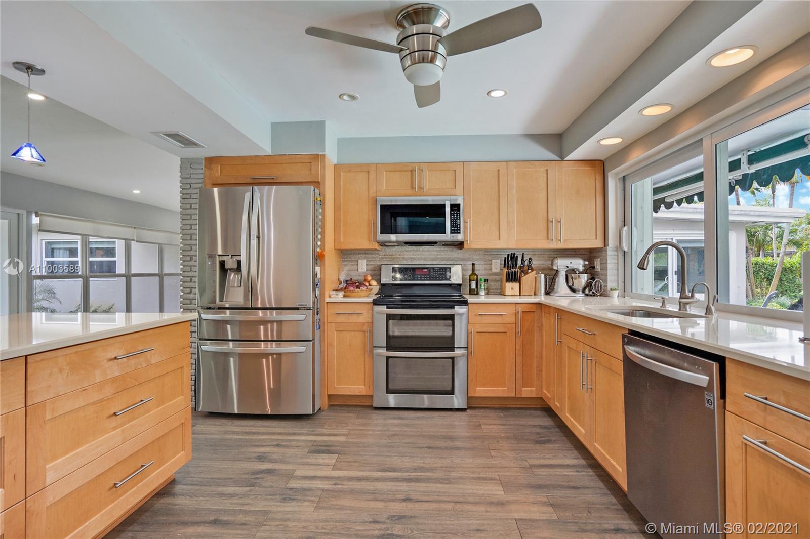 Mid century modern charmer on Million Dollars Street!!! Sky Lakes best opportunity!!! This immaculate home sits on a lushly landscape 1500Sq.Ft lot. It has been lovingly cared for and updated with all impact windows and doors, new roof, 2 new AC systems, renovated kitchen and baths and more. Sparking Hollywood pool enjoys the huge backyard. The open floor plan creates a light and bright welcome as you enter this beautiful home!!!