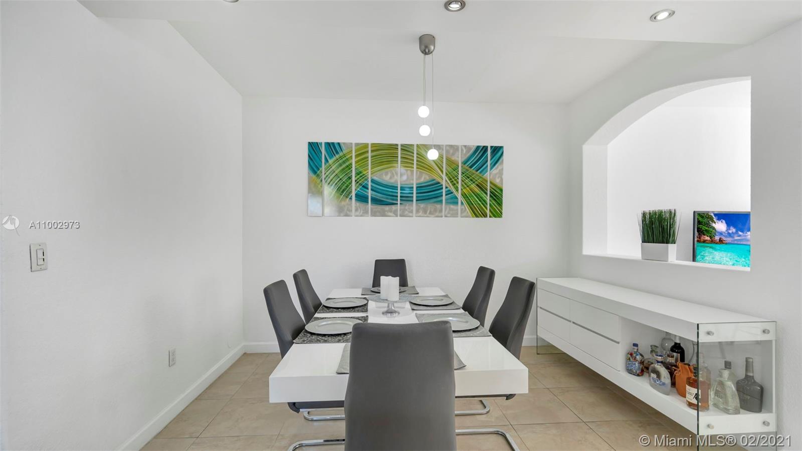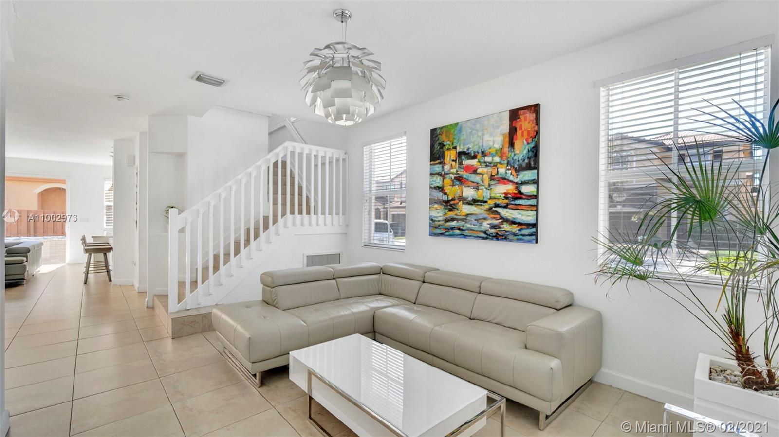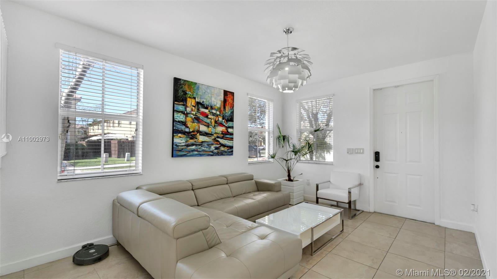 Great corner townhome in a wonderful Doral Community. It is move-in ready and home features 1 car garage with 4 bedrooms and 2.5 bathrooms, with tile throughout, including second story. Home has a nice flow, lots of natural light, with high ceilings. Kitchen is completely and tastefully remodeled and has an open concept with stainless steel appliances including farmhouse sink. Garage has been converted to a gym with AC, with enough space for storage. Garage door is still operational and can be easily converted back. It has a fenced patio, 24 hour security patrol. Easy access to highways, shopping and great schools.***Open House this Saturday February 27th from 1pm - 3pm. Showings will only be held during open house. Call or text listing agent