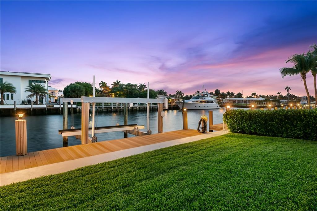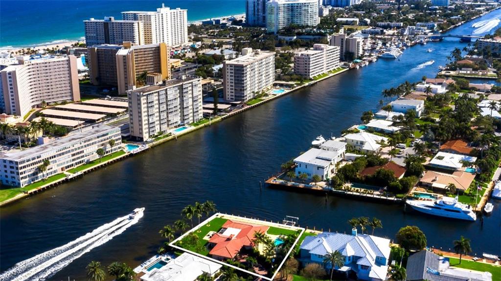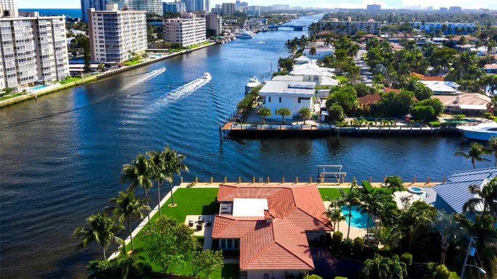 STUNNING DIRECT INTRACOASTAL OVERSIZED POINT LOT (15,690 SQ FT) WITH THE MOST DESIRABLE SE LOCATION, 230 FT TOTAL WATERFRONT, WITH 123 FT ON EXTRA WIDE SIDE CANAL TO DOCK 100+ FT MEGA YACHT, WITH CLOSE PROXIMITY TO OCEAN INLET. TREX COMPOSITE DOCK WITH SHORE POWER & 20,000+ LB BOAT LIFT. THIS HOME HAS A NEWER S-TILE ROOF,ALL IMPACT WINDOWS & DOORS,NATURAL GAS,NEWER AC UNIT. THE PERFECT HOME FOR ENTERTAINING, WITH 2 LARGE PATIOS,ONE OVERLOOKING THE POOL & CANAL; THE OTHER WITH A COVERED VERANDA OVERLOOKING THE INTRACOASTAL TO ENJOY THE DAILY PARADE OF STUNNING BOATS! A GOURMETS DELIGHT KITCHEN WITH GAS COOKING ,S/S APPLIANCES & GRANITE COUNTER TOPS, MASTER BEDROOM HAS MARBLE FLOORS, WALKIN CLOSET, SPA TUB & GLASS SHOWER, NEWER POOL EQP. & GAS POOL HEATER. TANKLESS GAS HOT WATER HEATER