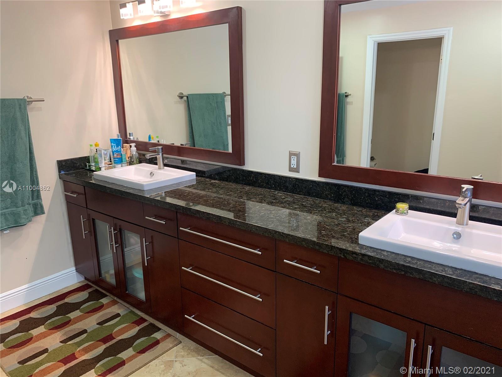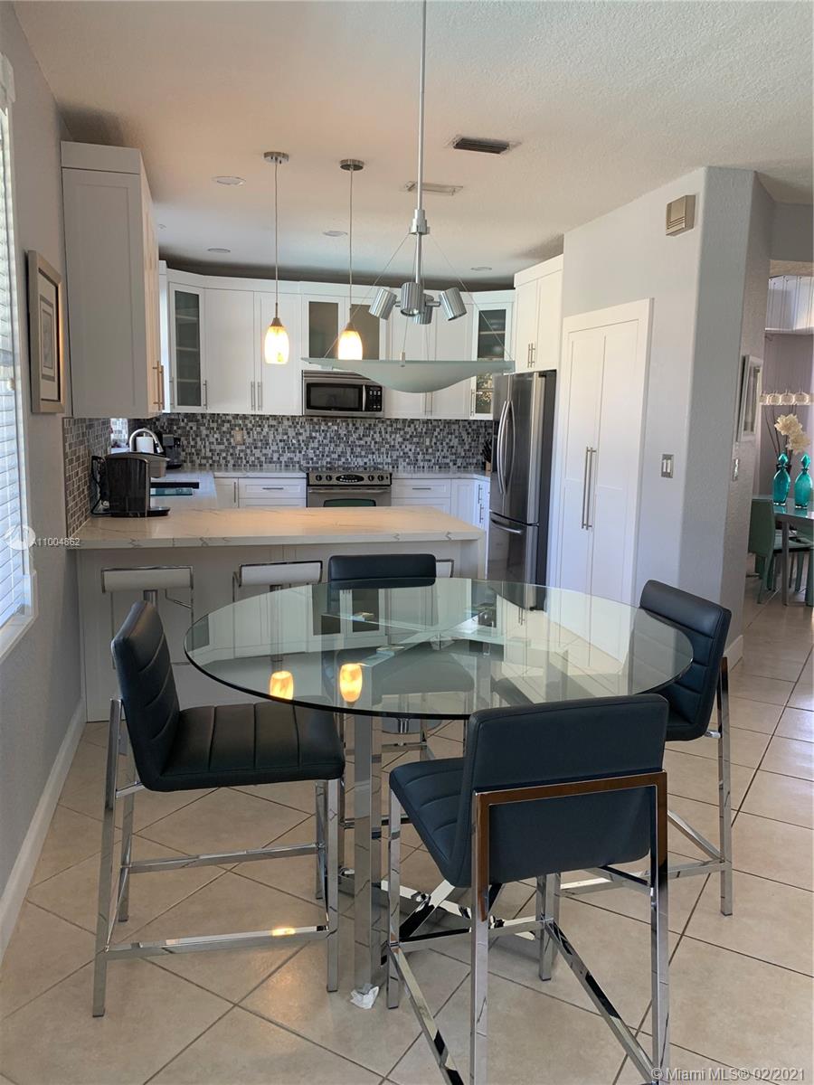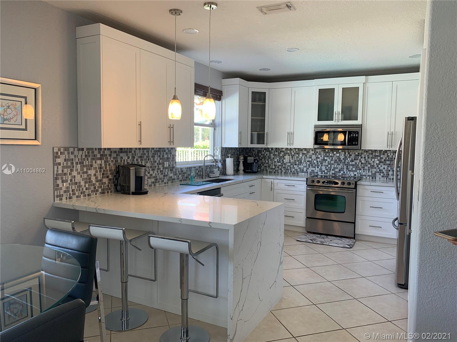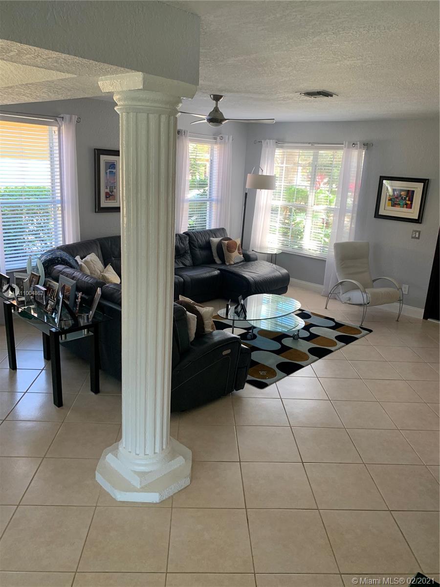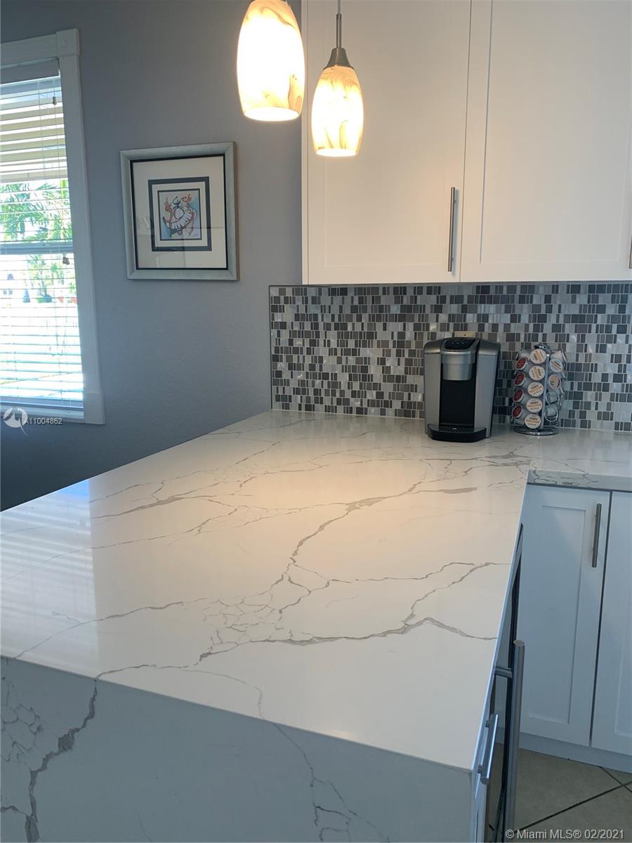 Spectacular two story home on desired Emerald Estates!! 5 bedroom and 3 full bathrooms. Enjoy amazing lake views, and beautiful sunsets in your private backyard. Pool with lush tropical garden, perfect for entertain, and featuring convenient Cabana Bath and retractable awning. Open layout with dining room, living room, family room and breakfast area. Ceramic tiles on first floor, hardwood, laminate floors, and accordion shutters on second floor. Just upgraded, beautiful modern kitchen with new kitchen appliances, and quartz countertops. Upgraded full bathrooms. Emerald Estates has 2 Guarded gates, sidewalk trails, playground, gym, and community pool. Maintenance includes ADP alarm, cable, and lawn mowing.