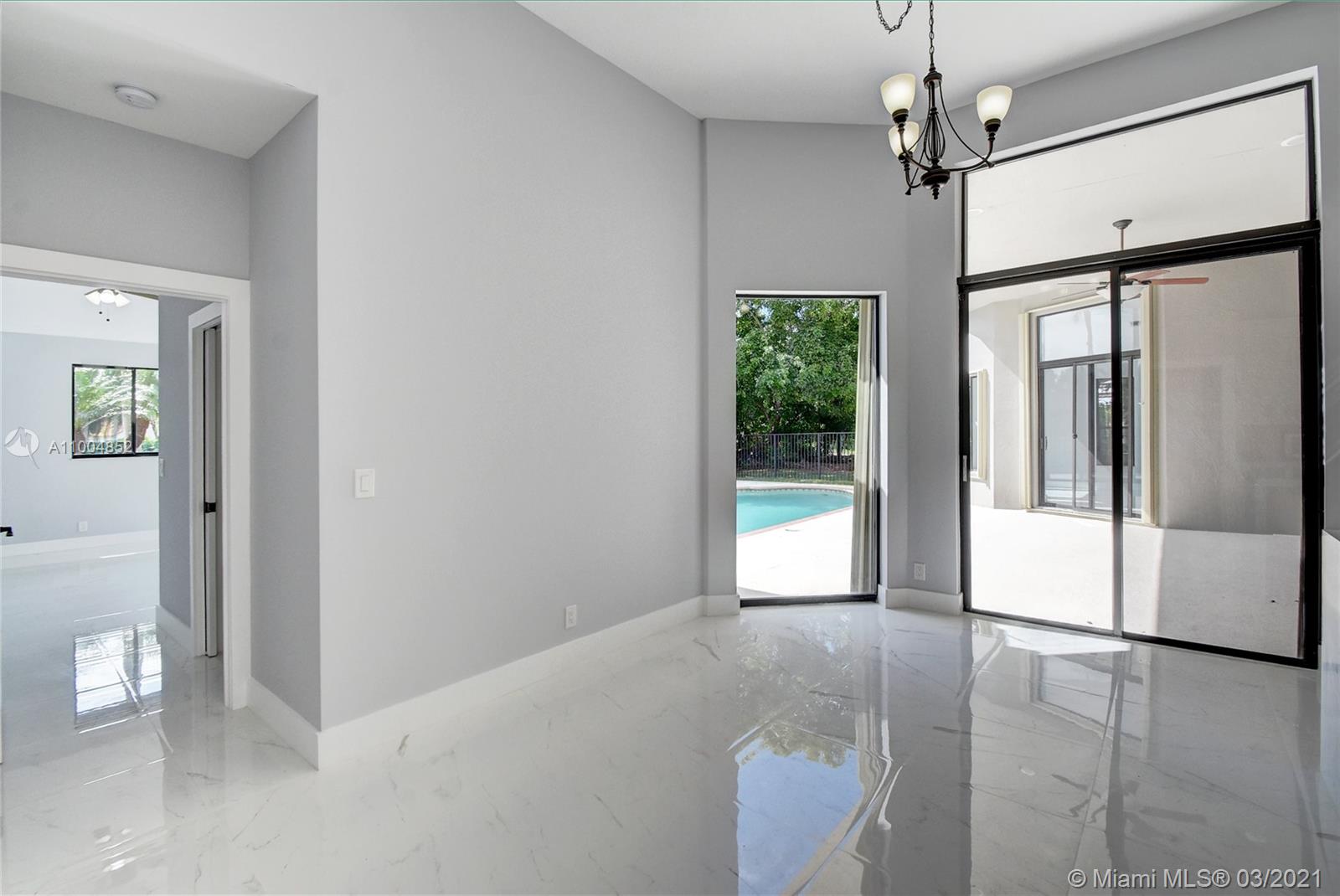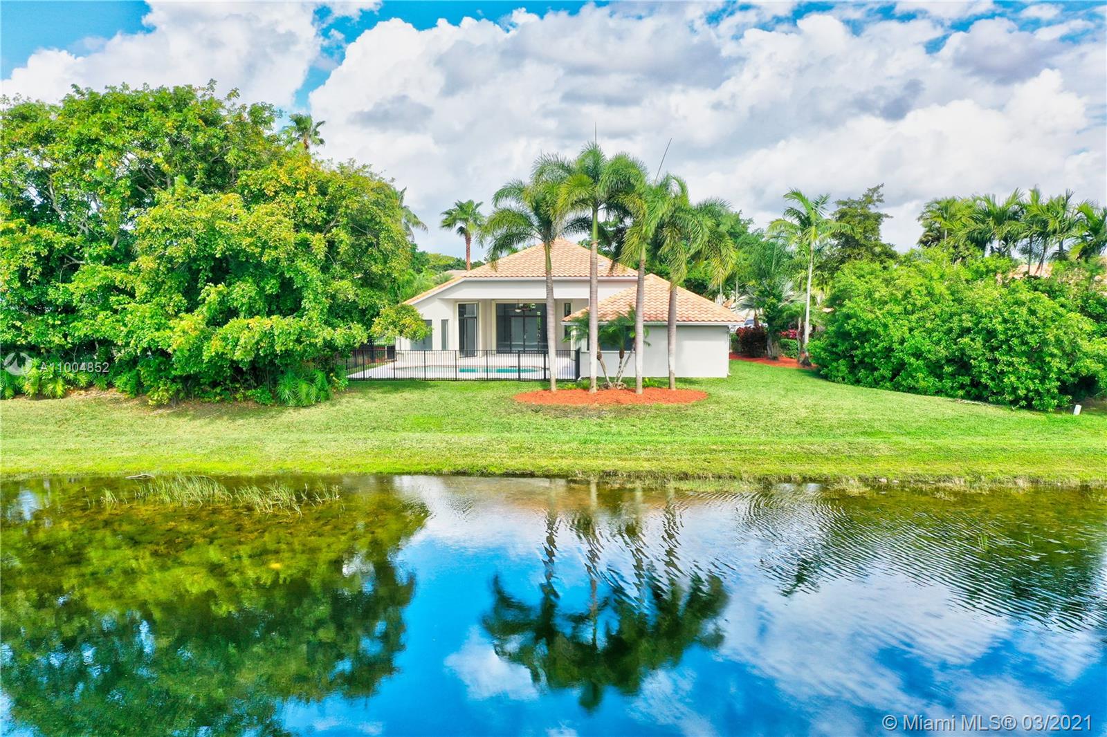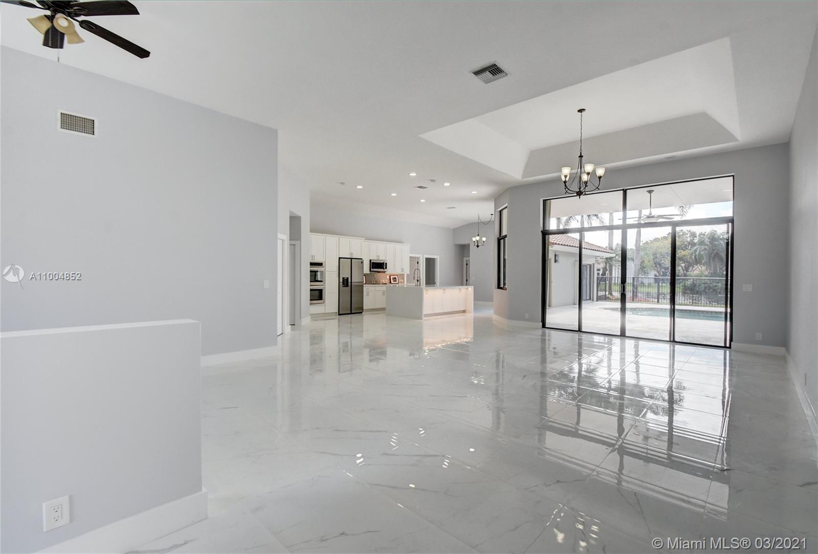 This move-in ready 5 bed/5.5 bath/3 Car Garage is in an Exclusive Community which is double gated. This 1 story Pool home is completely renovated. This home sits on an oversized corner lot (22,093 sq ft). Features include: High ceilings throughout this model looking home, formal dining room, Porcelain tile flooring, living room that flows to an open kitchen layout, coffered ceilings, expanded Quartz kitchen Counters, soft-close kitchen cabinet drawers, double wall ovens, new SS Appliances, glass stove top, big pantry & cabana bath. All bedrooms w/en-suite bathrooms. Master has 2 walk in closets, floating tub & all baths have new vanities w/quartz. Other features include built in closets, New AC, Accordion shutters, fenced pool. "A schools for this area!"