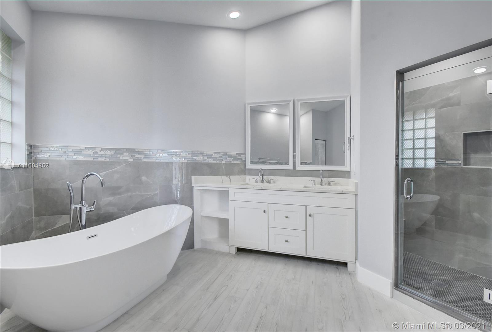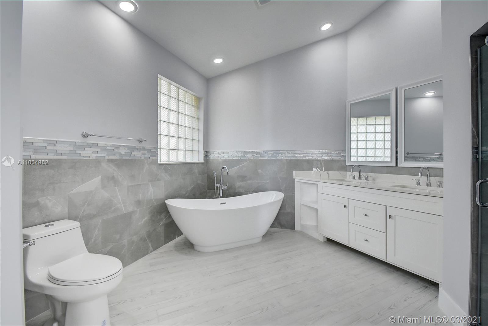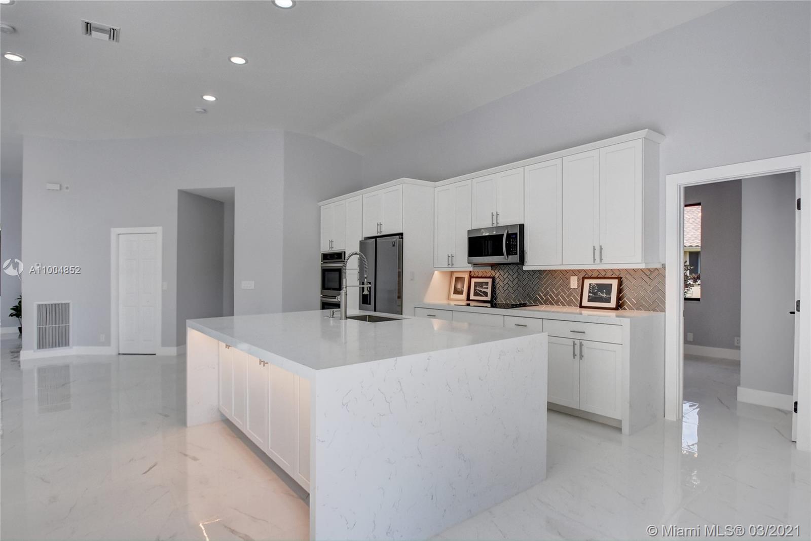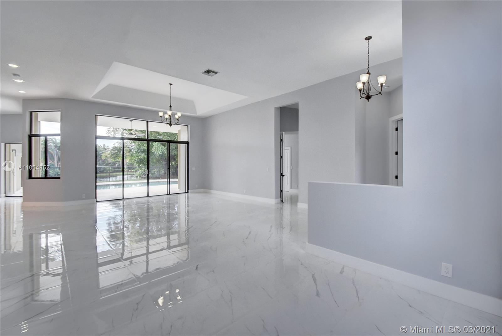 This move-in ready 5 bed/5.5 bath/3 Car Garage is in an Exclusive Community which is double gated. This 1 story Pool home is completely renovated. This home sits on an oversized corner lot (22,093 sq ft). Features include: High ceilings throughout this model looking home, formal dining room, Porcelain tile flooring, living room that flows to an open kitchen layout, coffered ceilings, expanded Quartz kitchen Counters, soft-close kitchen cabinet drawers, double wall ovens, new SS Appliances, glass stove top, big pantry & cabana bath. All bedrooms w/en-suite bathrooms. Master has 2 walk in closets, floating tub & all baths have new vanities w/quartz. Other features include built in closets, New AC, Accordion shutters, fenced pool. "A schools for this area!"