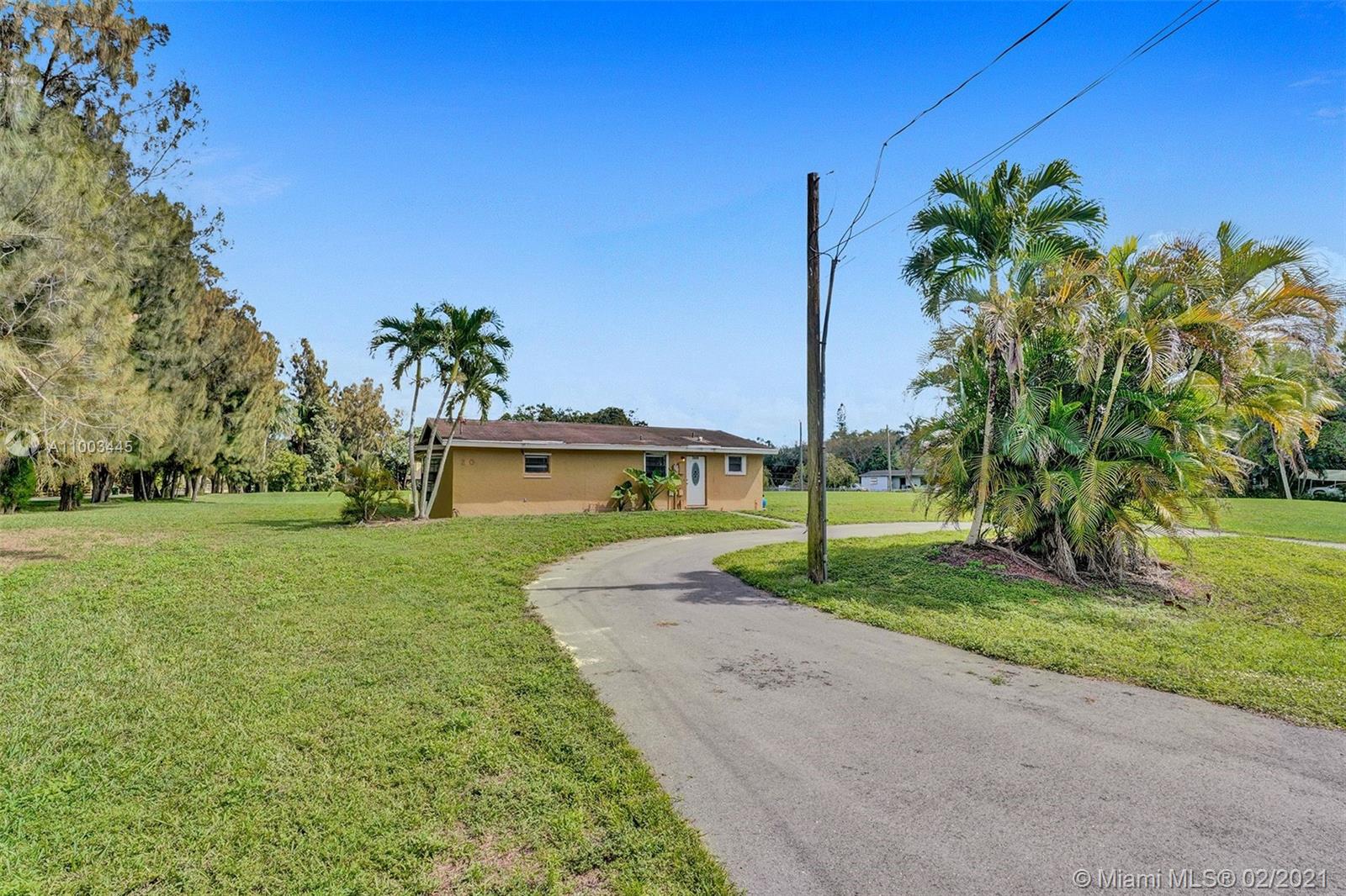 Davie! West of Flamingo Road! South of 84! Beautiful, prime corner lot! 2-acres filled & ready to build! Bring your CASH offer! Folio #5040-22-01-0070 (1.95 acres) and 5040-22-01-0080 (.05 acres) sold together. Per owner, no low-lying areas. 200 ft. well. Update and expand on existing home or tear down. Many possibilities! No restrictions! No HOA! Horses/cows permitted. RV’s/Boats O.K.! See Town of Davie website for further information as to agricultural use & subdividing (BROKER REMARKS). The .05 acre strip of land runs along the south side of the property line approximately 5 ft. wide. ALL OFFERS TO BE SUBMITTED ON "AS -IS" CONTRACT. Property is being sold “AS-IS” WITHOUT REPAIRS OR WARRANTIES.