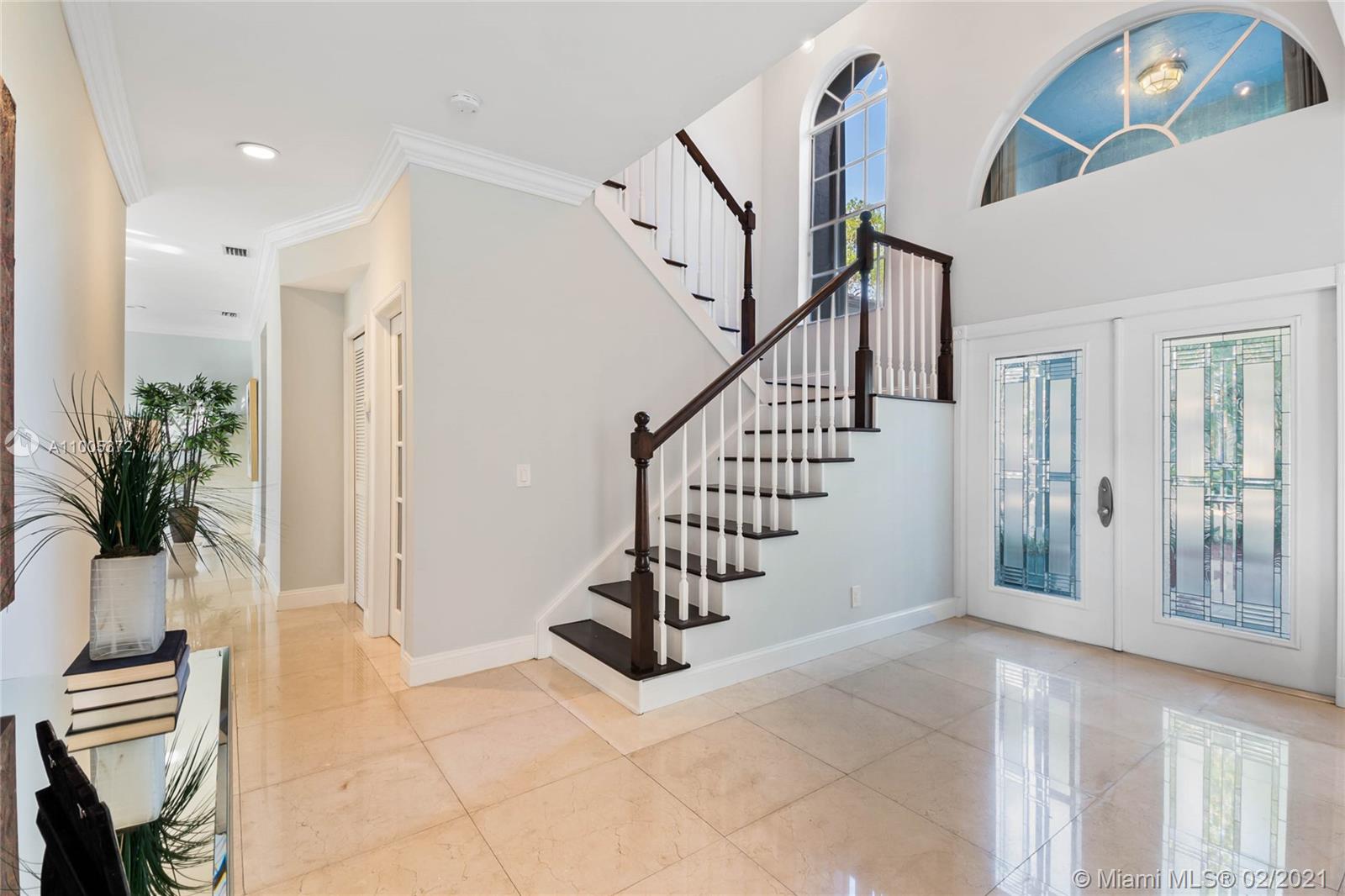 Situated in Weston Hills, one of the most prestigious communities in Weston, this home has been entirely and gorgeously renovated, top to bottom! You will be greeted by volume ceilings & marble floors. Home offers Italian kitchen cabinetry in the kitchen & gorgeous quartz island with a breakfast nook that overlooks your swimming pool. All bedrooms are upstairs, with a split plan. Owner's suite is a oversized bedroom with two sitting areas and offers a bathroom with glass shower doors and a modern tub. Home sits on one of the largest lots Oakbrook. Screened in swimming pool. Full accordion hurricane protection. Drive your golf cart to the pristine golf courses within Weston Hills. A rated schools. Tot park, volleyball and b-ball court within walking distance. Click on 3-D Tour!